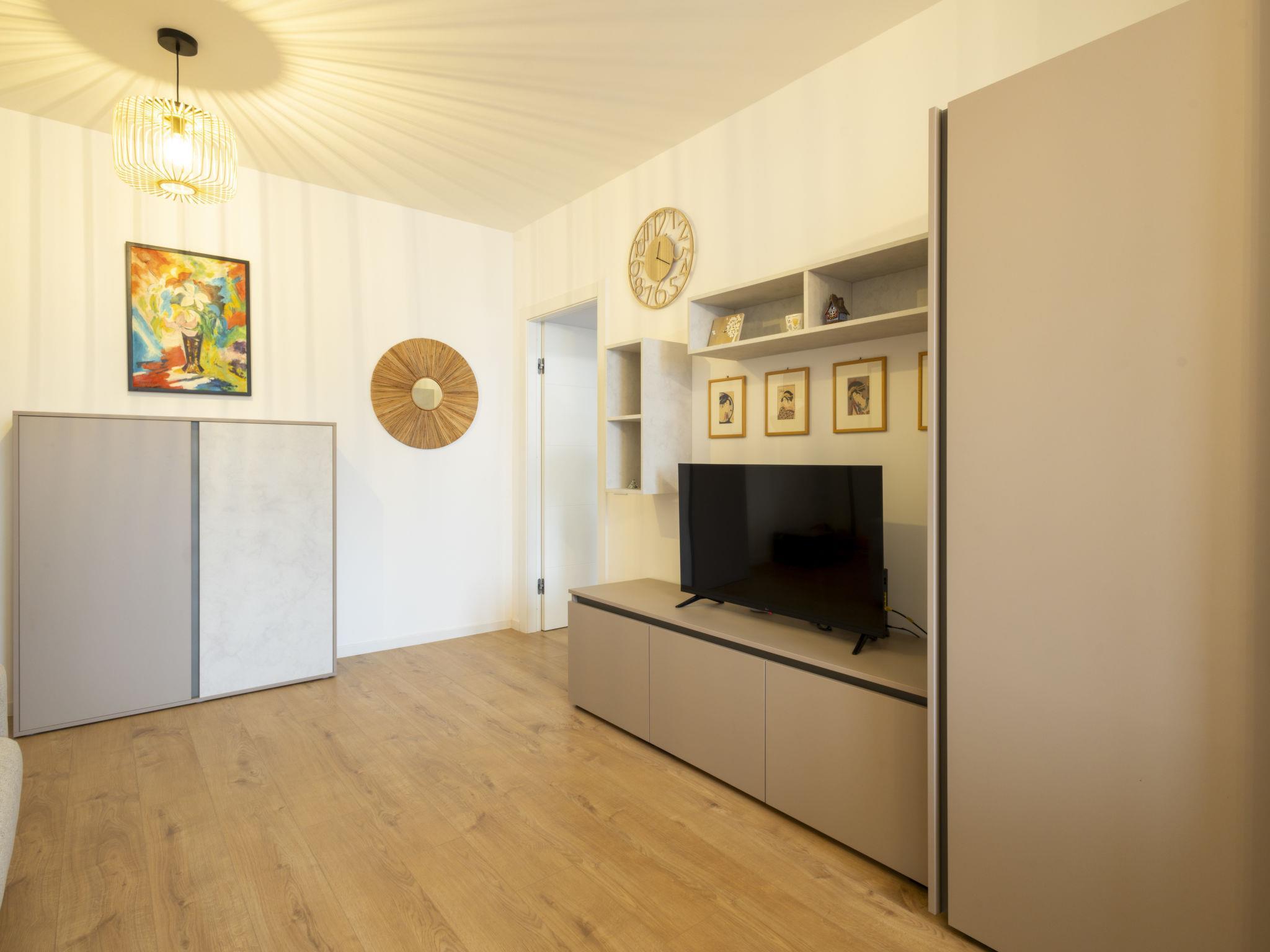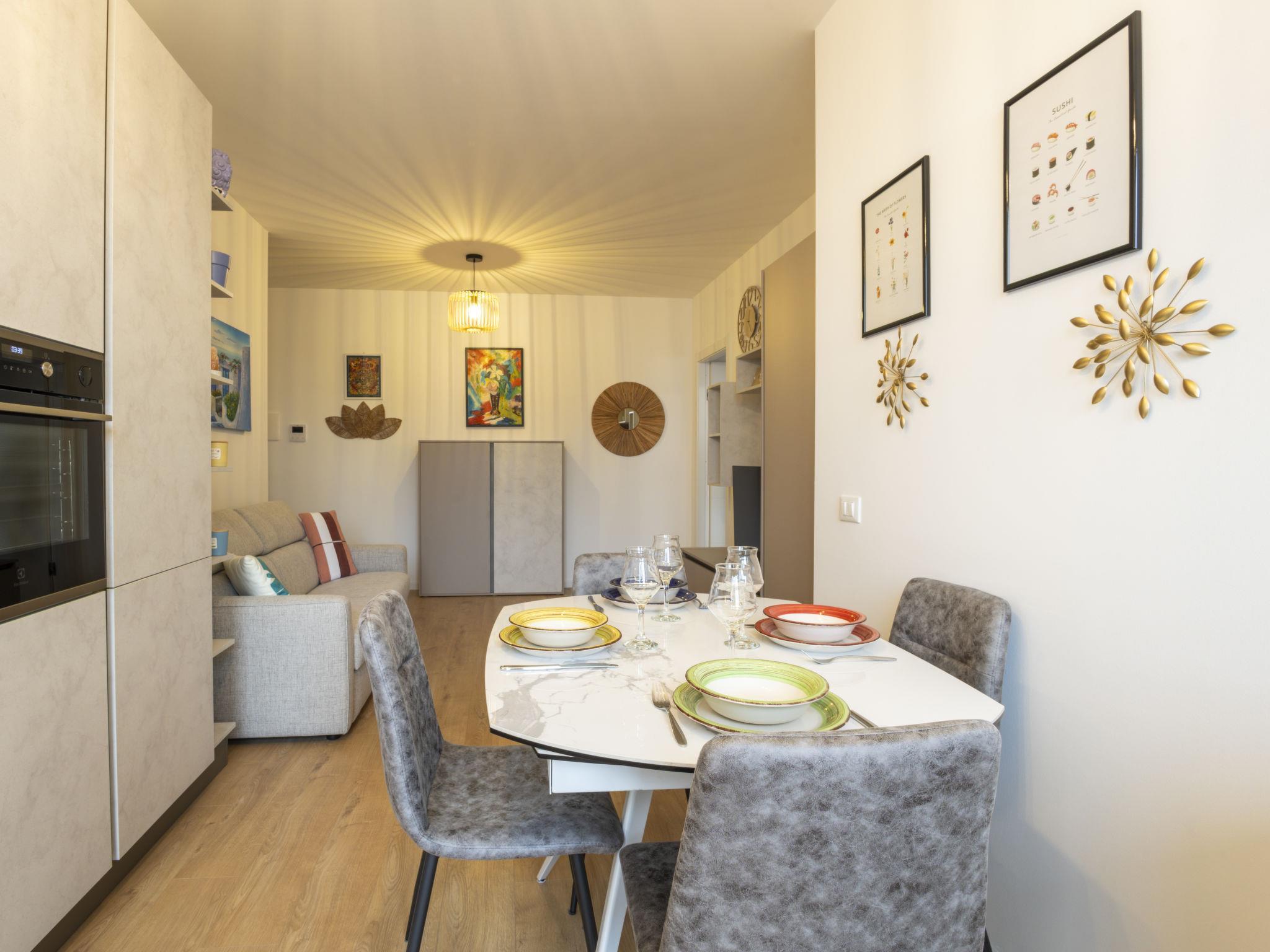 2-Zimmer-Wohnung 53 m2 im 8. Stock, Westlage. Komfortabel und modern eingerichtet: Wohn-/Esszimmer mit 1 Doppeldiwanbett, Esstisch und TV. 1 Zimmer mit 1 Doppelbett. Kochnische (Backofen, Geschirrspüler, 4 Induktionskochplatten, Toaster, Wasserkocher, Tiefkühler, elektrische Kaffeemaschine, Kapseln für die Kaffeemaschine (Nespresso) gratis). Dusche/Bidet/WC, Hydromassage-Dusche. Heizung, Klimaanlage, Boiler (50 Liter). Parkettboden. Zur Verfügung: Waschmaschine, Wäschetrockner, Bügeleisen, Kinderhochstuhl, Babybett, Haartrockner. Internet (WLAN, gratis). Bitte beachten: geeignet für Familien. Nichtraucher-Unterkunft. Feuerlöscher. IT015146C2OZVXAQPN
