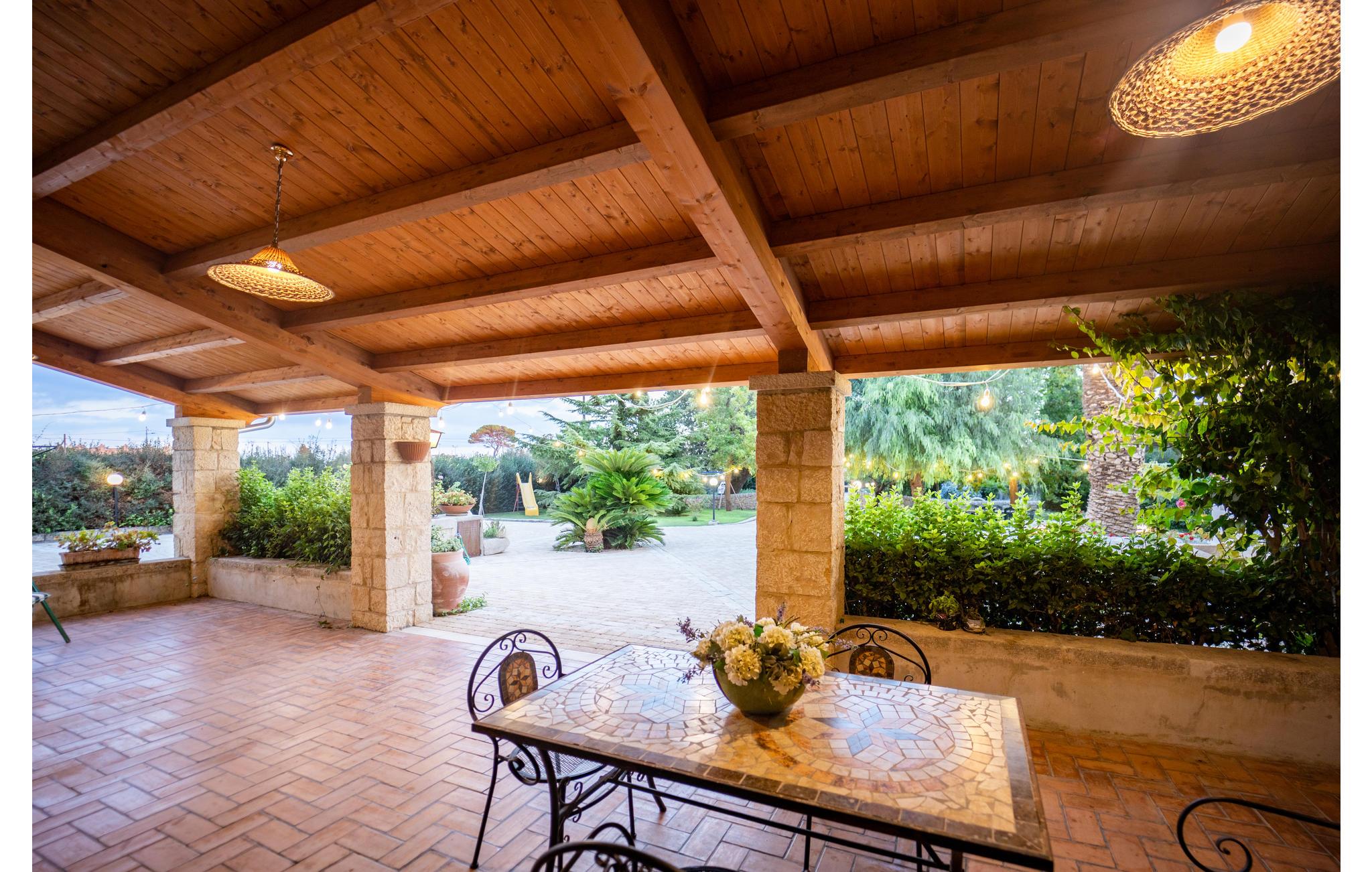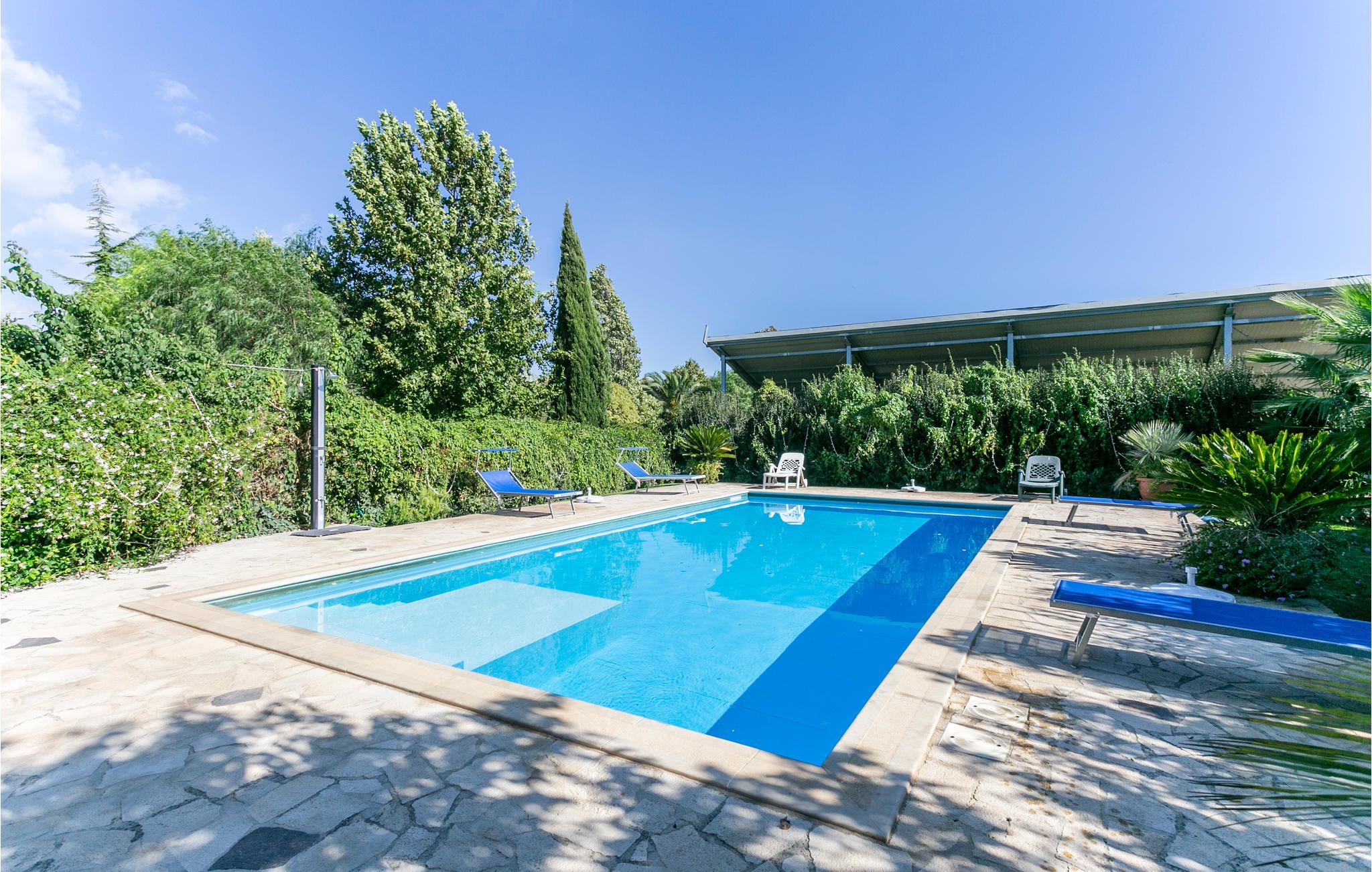 Genießen Sie das mediterrane Klima im weitläufigen Außenbereich. Schwimmen Sie im privaten Pool, der ganzjährig geöffnet und in der kühleren Jahreszeit überdacht ist, oder entspannen Sie auf einer der Sonnenliegen. Der Garten mit Palmen, blühenden Sträuchern und gepflegten Rasenflächen lädt zum Verweilen ein, während verschiedene Sitzbereiche Raum für gemeinsame Mahlzeiten und erholsame Momente bieten.