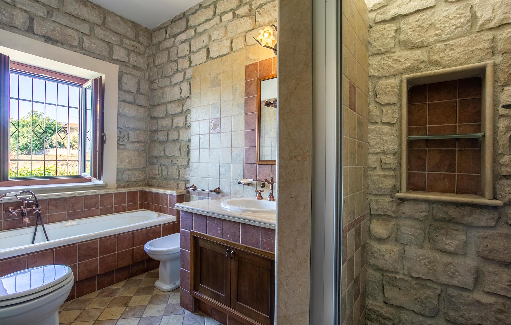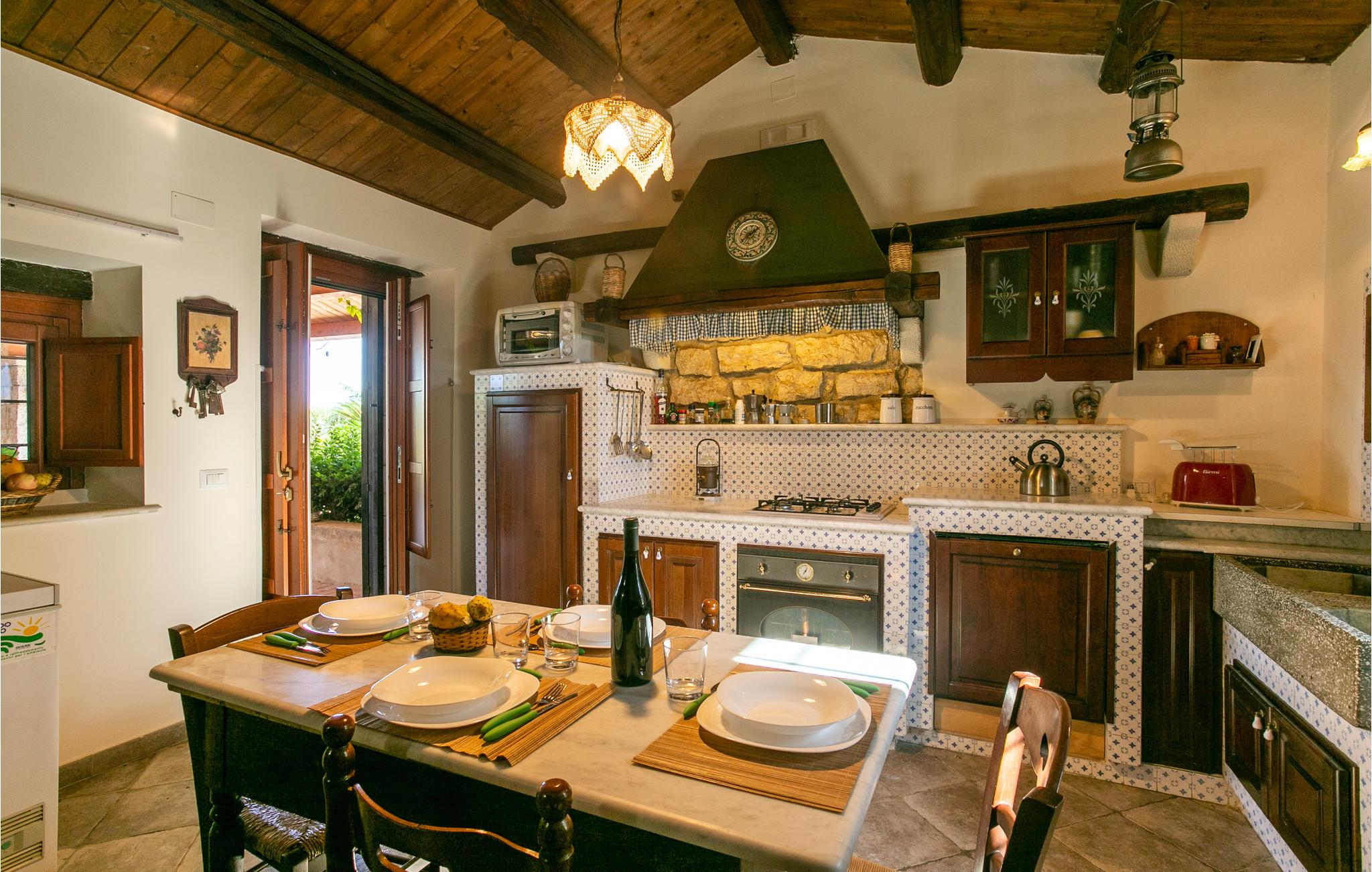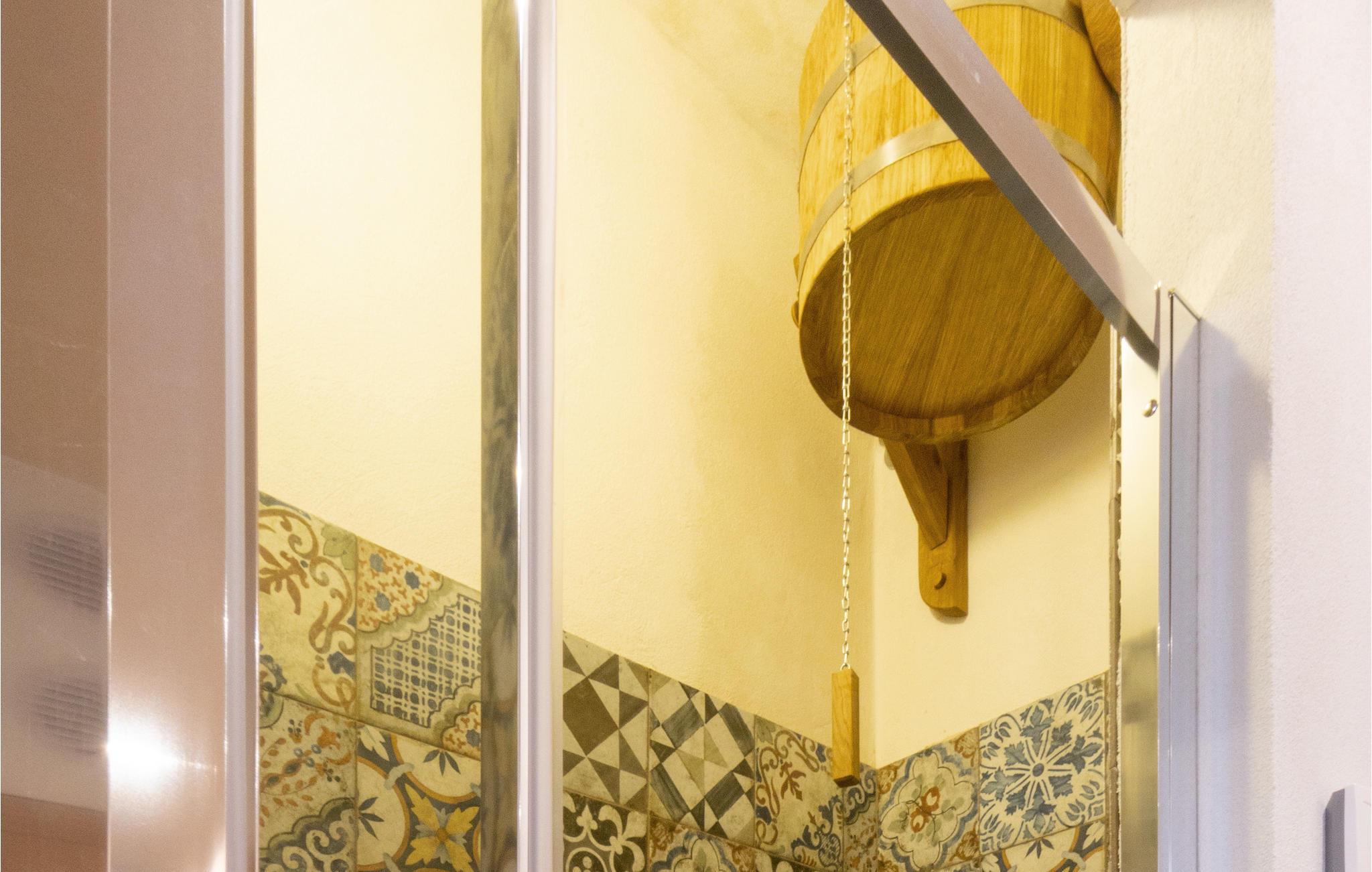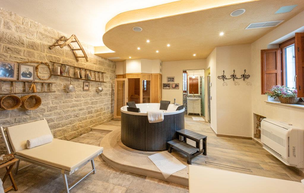 Entdecken Sie den einladenden Innenbereich mit seinen Natursteinwänden, warmen Farben und liebevoll gewählten Details. Entspannen Sie im gemütlichen Wohnzimmer oder bereiten Sie in der traditionellen Küche mit Holzdecke und gemusterten Fliesen köstliche Mahlzeiten zu. Nutzen Sie den direkten Zugang zur großen, überdachten Terrasse, um im Schatten zu speisen. Ein besonderes Highlight ist der private Wellnessbereich mit Whirlpool, Sauna, schottischer Dusche und gemütlichem Ruhebereich – ideal für entspannte Stunden zu jeder Jahreszeit.
