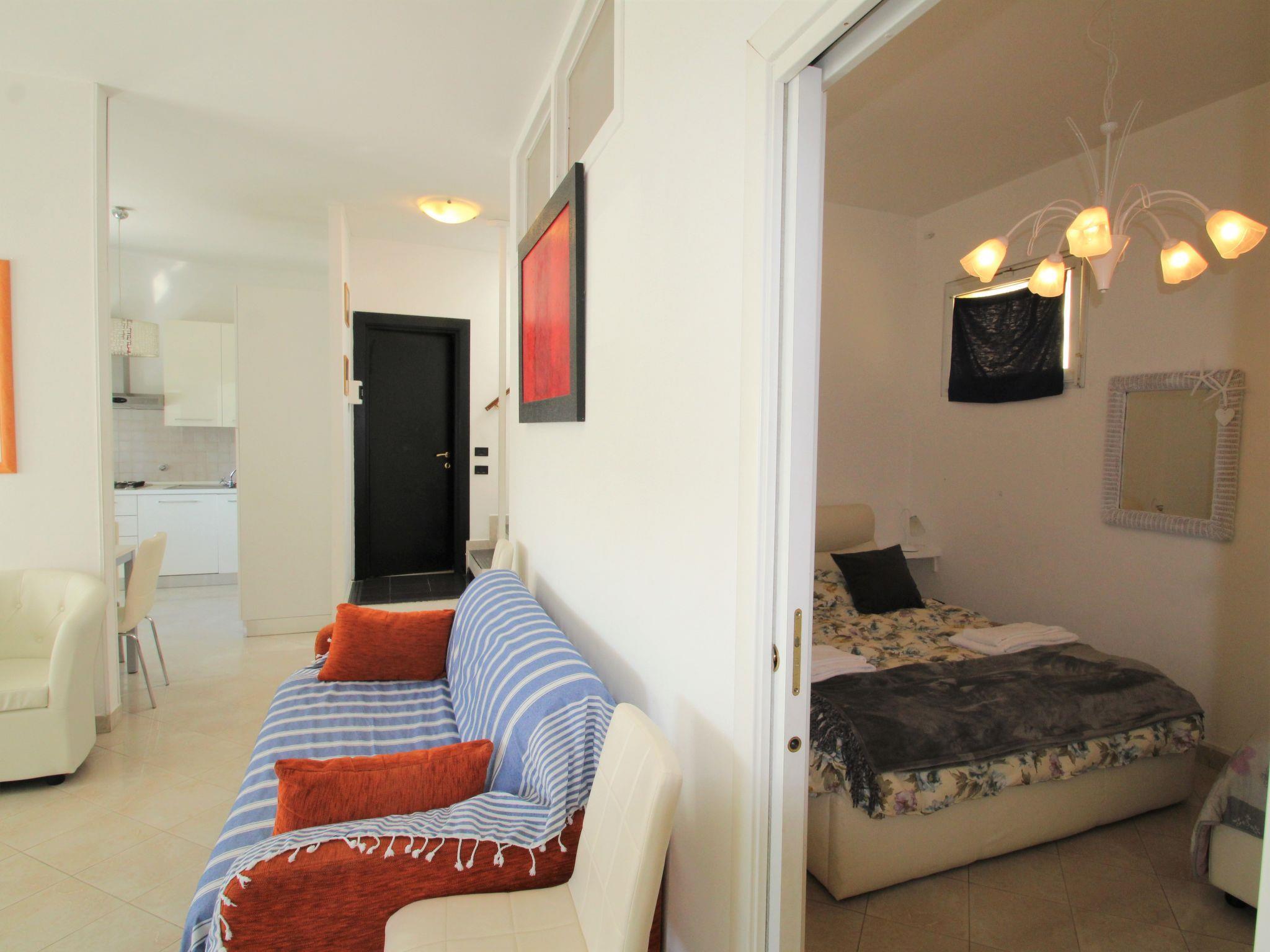 2-Zimmer-Wohnung 85 m2 im 1. Stock. Zweckmässig und modern eingerichtet: Obergeschoss: Wohn-/Schlafzimmer mit 1 Doppeldiwanbett, TV und elektrischem Rollladen. Ausgang zum Balkon. 1 Zimmer mit Dachfenster mit 1 Bett und 1 Doppelbett. Offene Küche (4 Kochplatten, Backofen, Wasserkocher) mit kleinem Esstisch. Dusche/Bidet/WC. E-Heizung, Klimaanlage. Heizung nur verfügbar von 01.10. bis 30.04. Balkon, grosse Terrasse 50 m2. Terrassenmöbel, Liegestühle. Sicht auf das Meer. Zur Verfügung: Waschmaschine. Internet (WLAN, gratis). Garage in 50 m. Bitte beachten: Nichtraucher-Unterkunft. Maximal 1 Haustier/Hund erlaubt. Feuerlöscher. IT010037B4U3CORK2U
