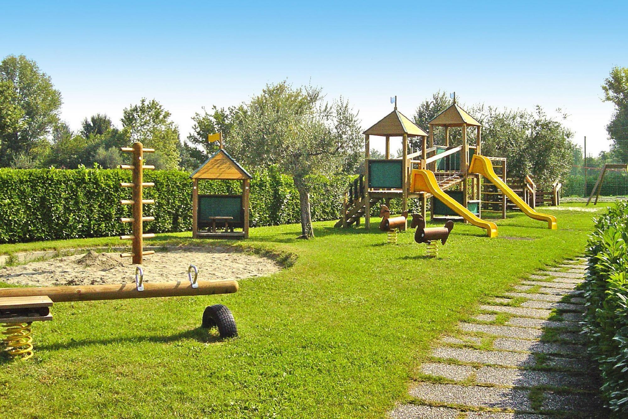 In ruhiger Umgebung am südwestlichen Teil des Gardasees, nur etwa 1.000 Meter vom See entfernt. Die gut 10.000 Quadratmeter große Anlage mit kreisfürmig angelegten Reihenhäusern über zwei Etagen bietet viele Unterhaltungsmöglichkeiten für Kinder und Erwachsene: Malstunde, Kinderdisco, Tischtennis-Turniere, abendliche Live-Musik oder Bootsfahrten zum Markt nach Lazise. Zum Hafen gehen Sie circa 20 Minuten zu Fuß. Ein Spaziergang, der sich vor allem wegen der malerischen Umgebung lohnt. Umgeben von herrlichen Olivenbäumen erstreckt sich der neuere Teil des Ortes bis hinunter an den See. Der Weg führt Sie aber auch entlang des schönen Kiesstrandes, der zum Baden im Gardasee einlädt. Aktivitäten in der Nähe : Moniga del Garda ist ein beliebter Urlaubsort sowohl für Familien, als auch für Weinliebhaber und Genießer - schon von weitem sieht man die Burganlage, die über der Ortschaft thront. Der neuere Teil des Dorfes erstreckt sich, umgeben von herrlichen Olivenbäumen, bis hinunter an den See mit seinem malerischen Hafen und den langen Kiesstränden, die den Ort zu einem beliebten Reiseziel für Familien machen. Rund um Moniga verlaufen Panoramastraßen, die mit dem Auto, Fahrrad oder Motorrad befahren werden können. 18-Loch Golfplatz 8 km. Das bietet Ihre Ferienresidenz: 10 Gebäude, 43 Wohneinheiten, Rezeption, Café, Minimarkt, Bar, Garten, Liegewiese, Ovales freibad mit kleinem Wasserfall und separatem Kinderbecken, Liegebetten beim Schwimmbad 10EURO/Woche und Sonnenschirme, Grillplatz, Grill, Beachvolleyballplatz, Tischtennis, , Kinderspielplatz, Waschmaschine (gegen Gebühr), Parkplatz mit elektronischem Schlüssel kostenfrei, WLAN auf öffentlichen Bereichen und Terrassen/Balkon der Wohnungen inklusive, Frischbrotservice vor Ort auf Bestellung Aktivitäten: Gemeinschaftlicher Außenpool,Liegen (gegen Gebühr), Sonnenschirme. Kinderbecken. Animation (Ende Mai - Anfang September), Beachvolleyball, Tischtennis. Juniorclub (4-12 Jahre) an einzelnen Tagen mit verschiedenen Aktivitäten. Hinweis: HP buchbar mit Zusatzvertrag Hinweis: Mülltrennung erforderlich. Mobilität : Nicht geeignet für Personen mit eingeschränkter Mobilität