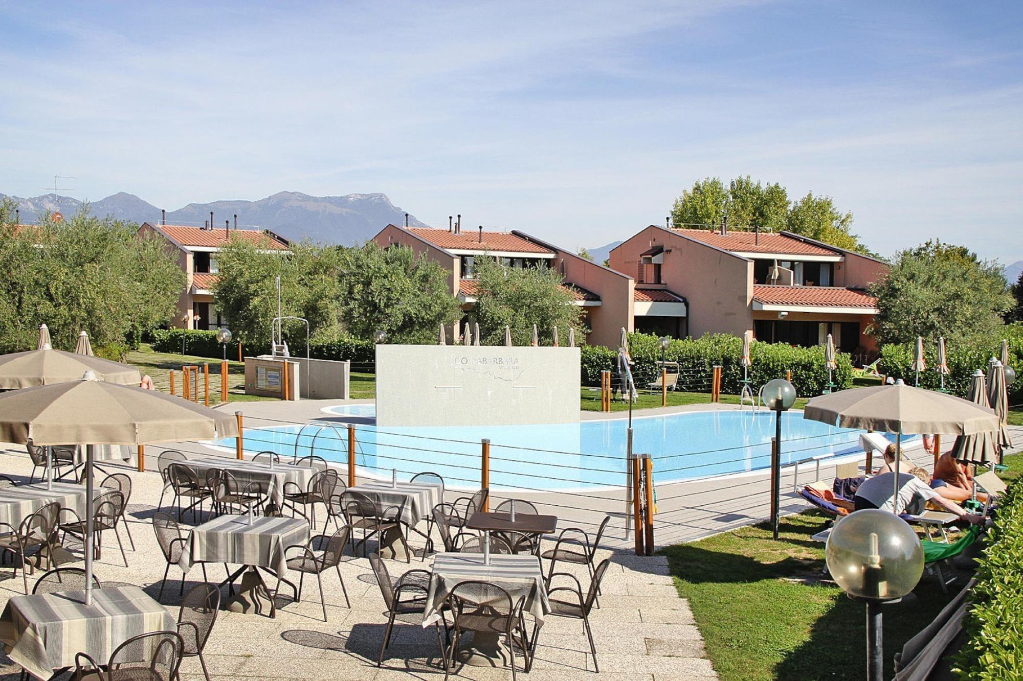 In ruhiger Umgebung am südwestlichen Teil des Gardasees, nur etwa 1.000 Meter vom See entfernt. Die gut 10.000 Quadratmeter große Anlage mit kreisfürmig angelegten Reihenhäusern über zwei Etagen bietet viele Unterhaltungsmöglichkeiten für Kinder und Erwachsene: Malstunde, Kinderdisco, Tischtennis-Turniere, abendliche Live-Musik oder Bootsfahrten zum Markt nach Lazise. Zum Hafen gehen Sie circa 20 Minuten zu Fuß. Ein Spaziergang, der sich vor allem wegen der malerischen Umgebung lohnt. Umgeben von herrlichen Olivenbäumen erstreckt sich der neuere Teil des Ortes bis hinunter an den See. Der Weg führt Sie aber auch entlang des schönen Kiesstrandes, der zum Baden im Gardasee einlädt. Aktivitäten in der Nähe : Moniga del Garda ist ein beliebter Urlaubsort sowohl für Familien, als auch für Weinliebhaber und Genießer - schon von weitem sieht man die Burganlage, die über der Ortschaft thront. Der neuere Teil des Dorfes erstreckt sich, umgeben von herrlichen Olivenbäumen, bis hinunter an den See mit seinem malerischen Hafen und den langen Kiesstränden, die den Ort zu einem beliebten Reiseziel für Familien machen. Rund um Moniga verlaufen Panoramastraßen, die mit dem Auto, Fahrrad oder Motorrad befahren werden können. 18-Loch Golfplatz 8 km. Das bietet Ihre Ferienresidenz: 10 Gebäude, 43 Wohneinheiten, Rezeption, Café, Minimarkt, Bar, Garten, Liegewiese, Ovales freibad mit kleinem Wasserfall und separatem Kinderbecken, Liegebetten beim Schwimmbad 10EURO/Woche und Sonnenschirme, Grillplatz, Grill, Beachvolleyballplatz, Tischtennis, Kinderspielplatz, Waschmaschine (gegen Gebühr), Parkplatz mit elektronischem Schlüssel kostenfrei, WLAN auf öffentlichen Bereichen und Terrassen/Balkon der Wohnungen inklusive, Frischbrotservice vor Ort auf Bestellung Aktivitäten: Gemeinschaftlicher Außenpool,Liegen (gegen Gebühr), Sonnenschirme. Kinderbecken. Animation (Ende Mai - Anfang September), Beachvolleyball, Tischtennis. Juniorclub (4-12 Jahre) an einzelnen Tagen mit verschiedenen Aktivitäten. Hinweis: HP buchbar mit Zusatzvertrag Hinweis: Mülltrennung erforderlich. Mobilität : Nicht geeignet für Personen mit eingeschränkter Mobilität