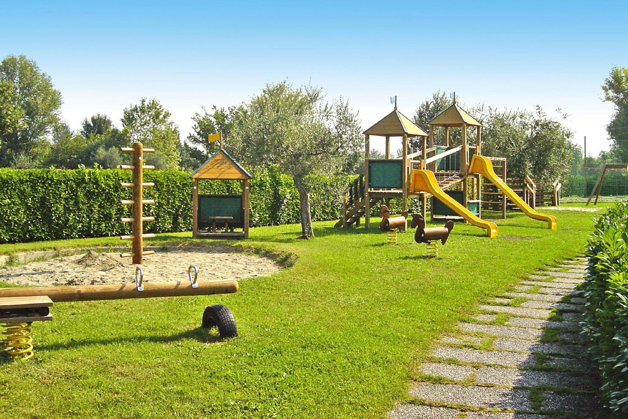 In ruhiger Umgebung am südwestlichen Teil des Gardasees, nur etwa 1.000 Meter vom See entfernt. Die gut 10.000 Quadratmeter große Anlage mit kreisfürmig angelegten Reihenhäusern über zwei Etagen bietet viele Unterhaltungsmöglichkeiten für Kinder und Erwachsene: Malstunde, Kinderdisco, Tischtennis-Turniere, abendliche Live-Musik oder Bootsfahrten zum Markt nach Lazise. Zum Hafen gehen Sie circa 20 Minuten zu Fuß. Ein Spaziergang, der sich vor allem wegen der malerischen Umgebung lohnt. Umgeben von herrlichen Olivenbäumen erstreckt sich der neuere Teil des Ortes bis hinunter an den See. Der Weg führt Sie aber auch entlang des schönen Kiesstrandes, der zum Baden im Gardasee einlädt. Aktivitäten in der Nähe : Moniga del Garda ist ein beliebter Urlaubsort sowohl für Familien, als auch für Weinliebhaber und Genießer - schon von weitem sieht man die Burganlage, die über der Ortschaft thront. Der neuere Teil des Dorfes erstreckt sich, umgeben von herrlichen Olivenbäumen, bis hinunter an den See mit seinem malerischen Hafen und den langen Kiesstränden, die den Ort zu einem beliebten Reiseziel für Familien machen. Rund um Moniga verlaufen Panoramastraßen, die mit dem Auto, Fahrrad oder Motorrad befahren werden können. 18-Loch Golfplatz 8 km. Das bietet Ihre Ferienresidenz: 10 Gebäude, 43 Wohneinheiten, Rezeption, Café, Minimarkt, Bar, Garten, Liegewiese, Ovales freibad mit kleinem Wasserfall und separatem Kinderbecken, Liegebetten beim Schwimmbad 10EURO/Woche und Sonnenschirme, Grillplatz, Grill, Beachvolleyballplatz, Tischtennis, Kinderspielplatz, Waschmaschine (gegen Gebühr), Parkplatz mit elektronischem Schlüssel kostenfrei, WLAN auf öffentlichen Bereichen und Terrassen/Balkon der Wohnungen inklusive, Frischbrotservice vor Ort auf Bestellung Aktivitäten: Gemeinschaftlicher Außenpool,Liegen (gegen Gebühr), Sonnenschirme. Kinderbecken. Animation (Ende Mai - Anfang September), Beachvolleyball, Tischtennis. Juniorclub (4-12 Jahre) an einzelnen Tagen mit verschiedenen Aktivitäten. Hinweis: HP buchbar mit Zusatzvertrag Hinweis: Mülltrennung erforderlich. Mobilität : Nicht geeignet für Personen mit eingeschränkter Mobilität