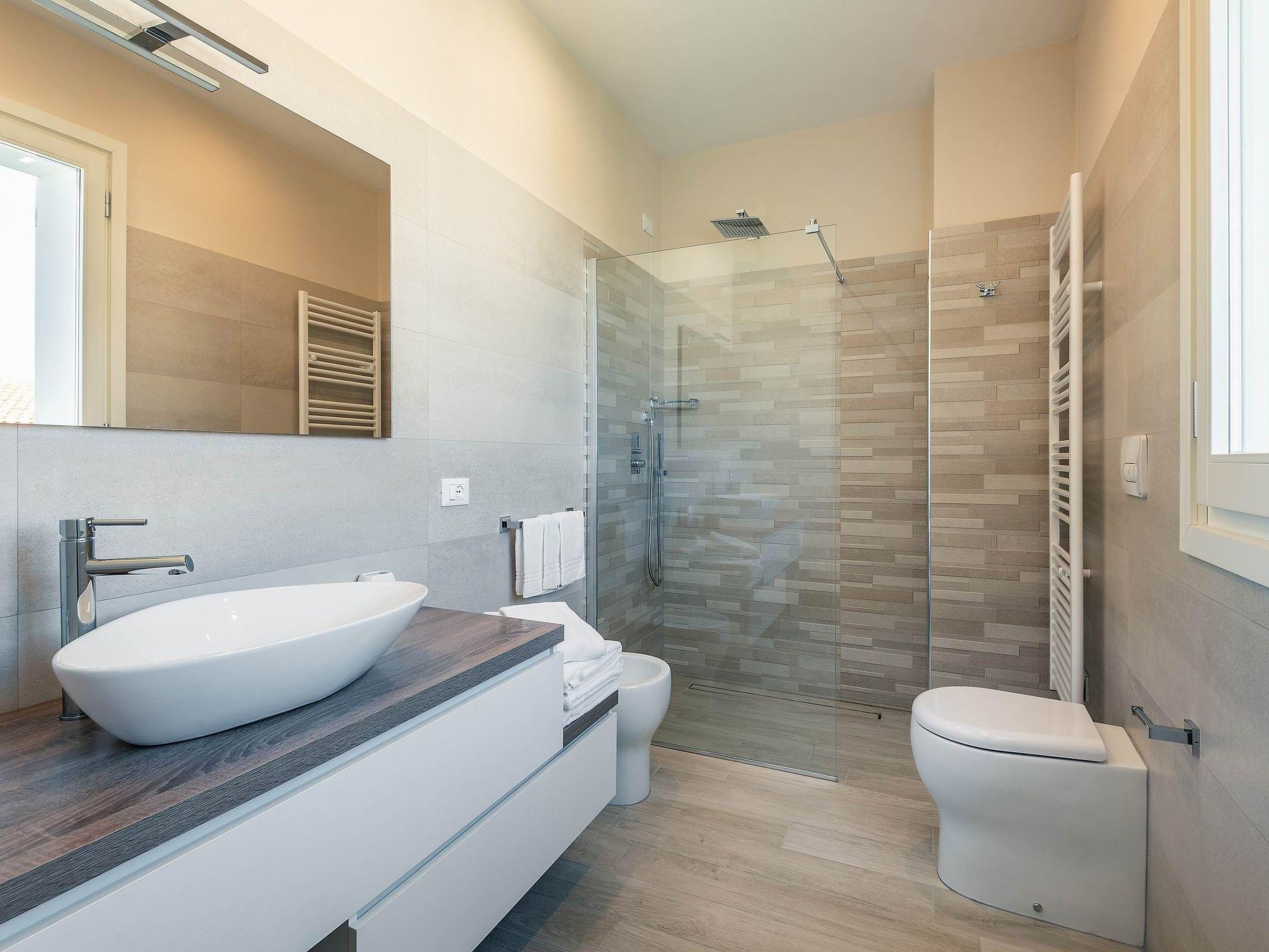 Obergeschoss: 4 Doppelzimmer mit Sat-TV, alle mit eigenem Bad mit Dusche und Haartrockner. Drei von ihnen haben ein zusätzliches Einzelbett. Ein weiteres Wohnzimmer mit Satellitenfernsehen: dieser Bereich ist nur mit dem Aufzug von den Thermen aus erreichbar.