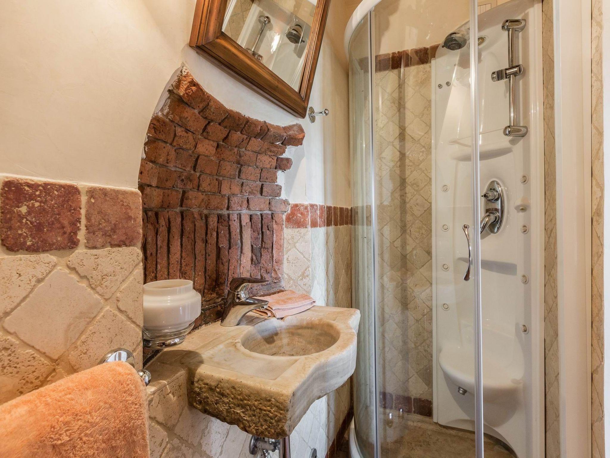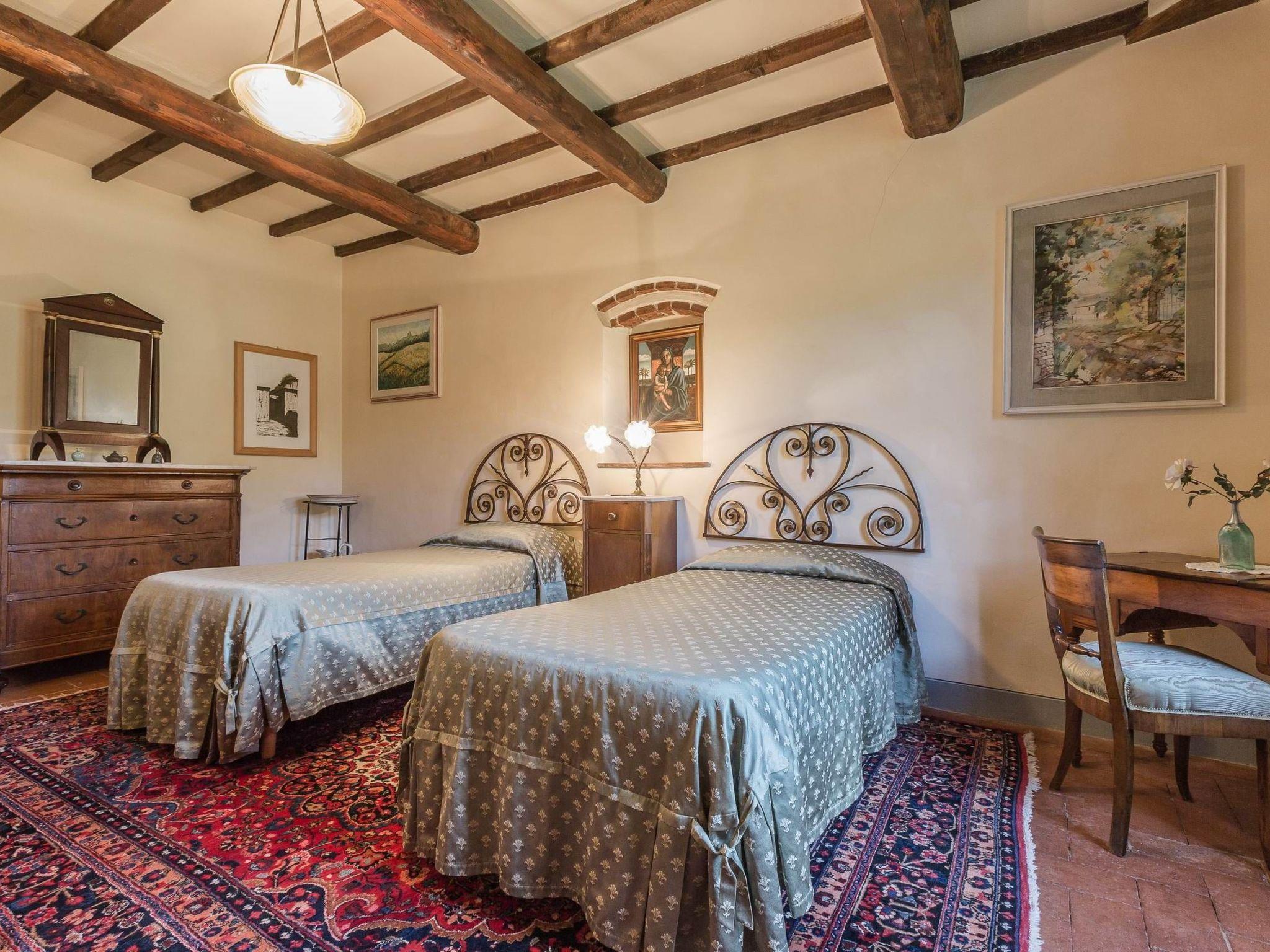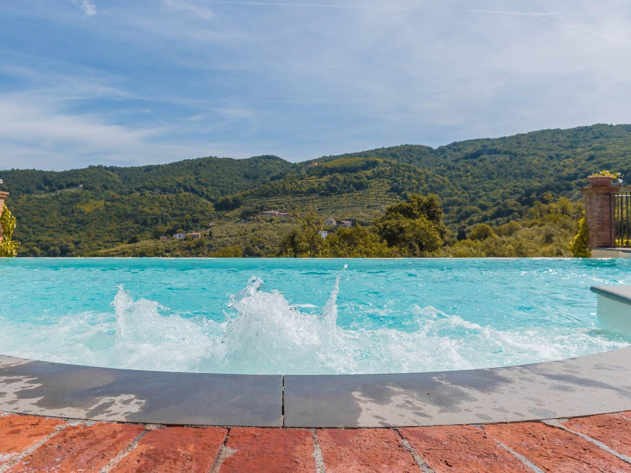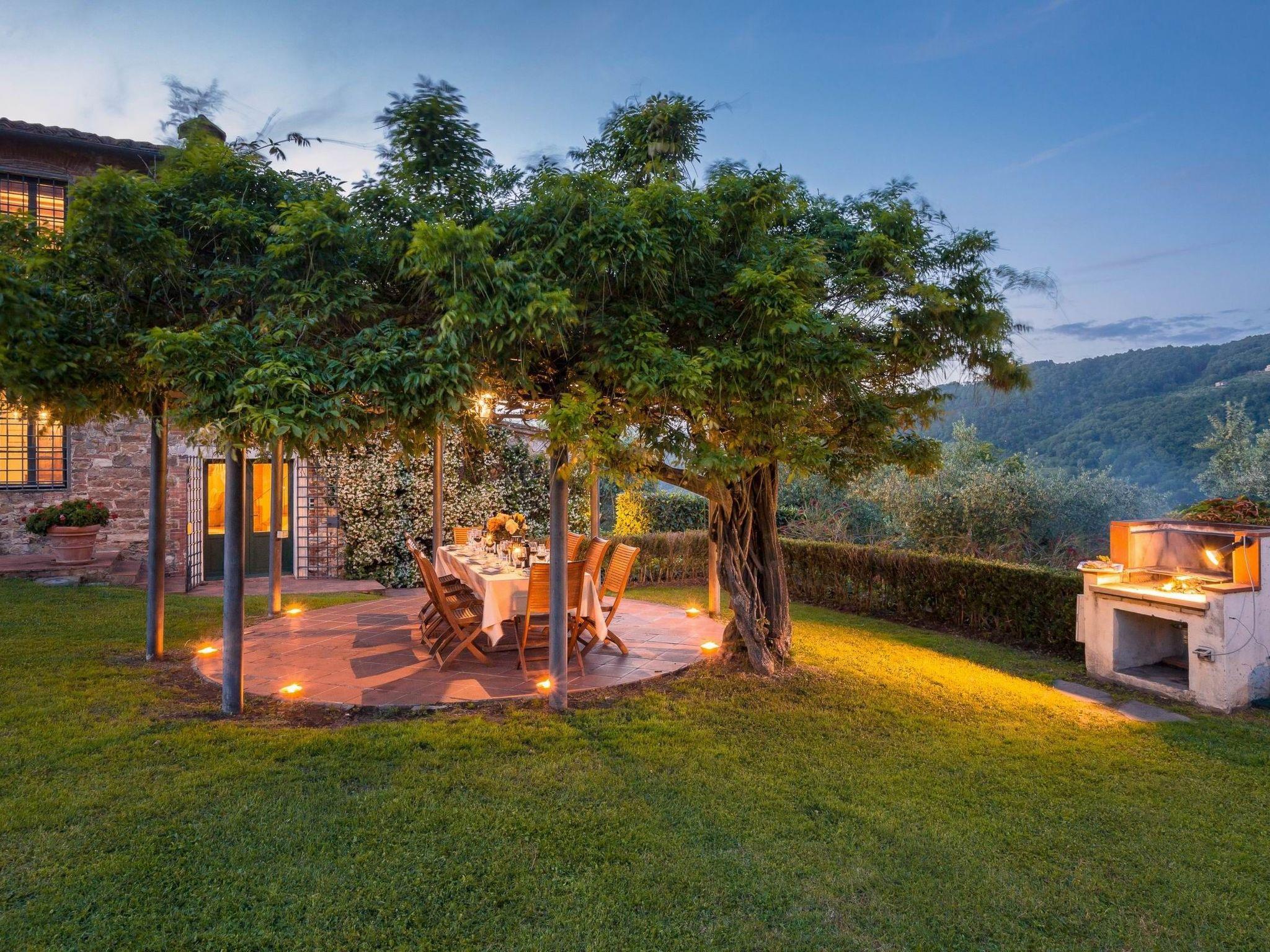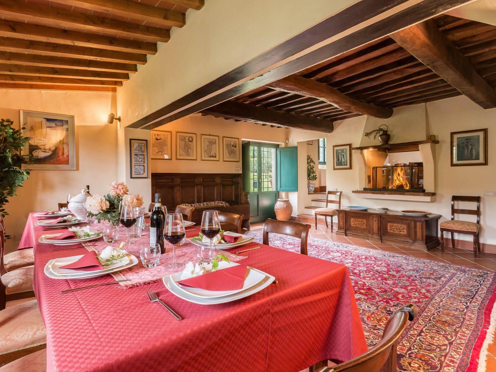 Diese prächtige Villa aus dem 18. Jahrhundert mit exklusivem Pool liegt in der Nähe des schönen Kurortes Monsummano Terme, eingebettet in die üppige Landschaft von Valdinievole. Die Villa ist ein typisch toskanisches Steinhaus in einem großen Garten mit einem Infinity-Pool mit Hydromassage (12 x 6 m, Tiefe 1,40 m, geöffnet von Mitte April bis Mitte Oktober). Der Pool und das Grundstück bieten einen atemberaubenden Blick auf die umliegenden Hügel, die reich an Olivenhainen und Wäldern sind, und sind ideal für diejenigen, die Ruhe und Entspannung suchen. Unterhalb des Pools befindet sich ein Umkleideraum mit Dusche und Toilette. Im Garten befinden sich außerdem ein möblierter Pavillon, der zum Essen im Freien einlädt, ein Grill und ein Kinderspielplatz mit Schaukel und Rutsche. Die 500 m² große, elegant mit Antiquitäten eingerichtete Villa kann bis zu 19 Personen beherbergen und erstreckt sich über zwei Etagen und ein Zwischengeschoss. Das Erdgeschoss besteht aus einem Wohnzimmer mit doppelseitigem Kamin, das in ein weiteres Wohnzimmer mit Essecke und einem Tisch für 16 Personen übergeht; einer voll ausgestatteten Hauptküche (Side-by-Side-Kühlschrank mit Eismaschine, Backofen, Geschirrspüler, Mikrowelle, Nespresso-Kaffeemaschine, amerikanische Kaffeemaschine, Mokkakaffeemaschine, Toaster, Mixer, Saftpresse) mit einem Tisch für 8 Personen, Kamin und antikem Brotbackofen; einem weiteren Esszimmer für 8 Personen ein drittes Wohnzimmer mit einem Doppelschlafsofa, einem schönen antiken Kamin und einem Spieltisch; ein Fernsehzimmer mit Satellitenfernsehen (Netflix, Bose Bluetooth-Lautsprecher, Videorekorder/DVD), einem Doppelschlafsofa, einem Klavier und einem elektrischen Keyboard; ein Billardzimmer; eine zweite gut ausgestattete Küche (Backofen, Geschirrspüler, Kühlschrank, Toaster) mit einem Tisch für 6 Personen; zwei Badezimmer mit Hydromassagedusche; eine Waschküche mit Waschmaschine und Trockner. Zwei Treppen führen in den ersten Stock, wo sich ein Doppelzimmer mit eigenem Bad und Hydromassage-Dusche und ein Zwischengeschoss mit einem Einzelbett befinden. Es gibt drei weitere Doppelzimmer mit eigenem Bad, jedes mit Whirlpool-Dusche oder Badewanne (eines der Zimmer hat beides), ein Einzelzimmer und ein Dreibettzimmer, die sich ein Bad mit Whirlpool-Dusche und Badewanne teilen, während sich im Zwischengeschoss ein Zweibettzimmer befindet, dessen Bad eines der Bäder im Erdgeschoss ist. Ausstattung: Wi-Fi (bis zu 30 MB Download, bis zu 3 MB Upload), alle Doppelbetten sind Kingsize-Betten, alle Fenster sind mit Moskitonetzen ausgestattet, Kinderbetten, Hochstühle, Babyflaschen-Sterilisator auf Anfrage, Heizung (Temperatur von Zimmer zu Zimmer einstellbar), Klimaanlage (der Verbrauch von Heizung und Klimaanlage ist nicht im Preis inbegriffen), Willkommenskorb mit leichtem Abendessen für den Abend der Ankunft und ein kontinentales Frühstück für den ersten Morgen, Reinigung zur Wochenmitte (3 Stunden) plus Handtuchwechsel. Toilettenartikel in allen Badezimmern mit Dusche/Shampoo/Handseife und Körper- und Handcreme, Haartrockner in allen Badezimmern, Wandsafes, Netflix, Bose Bluetooth-Lautsprecher, Feuerlöscher und Feuerdecken, Kohlenmonoxiddetektoren in den Küchen, Rauchmelder auf jeder Etage Erste-Hilfe-Kasten (einer in der Villa und einer in der Umkleidekabine am Pool), akustisches Alarmsystem am Pool für die Sicherheit unserer kleinen Gäste, 4 Mountainbikes, Holzkohle und Feuerbretter für Grillabende, Privatparkplatz für bis zu 5 Autos, kleine Haustiere auf Anfrage erlaubt. Ein persönlicher Koch, Wein- und Essensverkostungen, ein Babysitter, Flughafentransfers, ein Lebensmittellieferservice und ein Friseur/Kosmetiker/Masseur im Haus sind auf Anfrage erhältlich. Organisation von Kochkursen, Eiscreme-Kursen, Besichtigungen von Weinbergen und Weinverkostungen, Trüffelsuche, Wellness- und Schönheitsbehandlungen in einem Spa in Monsummano Terme, Reiten, Yoga-Kurse, Trekking- oder Radtouren und Malkurse (auf Leinwand oder Porzellan); Bereitstellung eines Hochzeits- und Partyplaners, eines persönlichen Einkäufers, eines Dolmetschers und Reiseleiters, Hubschrauberflüge. Entfernungen: nächste Geschäfte und Restaurants Monsummano Terme 2 km, Montecatini Terme 5 km, San Miniato 30 km, Flughafen Florenz 40 km, Flughafen Pisa 45 km.