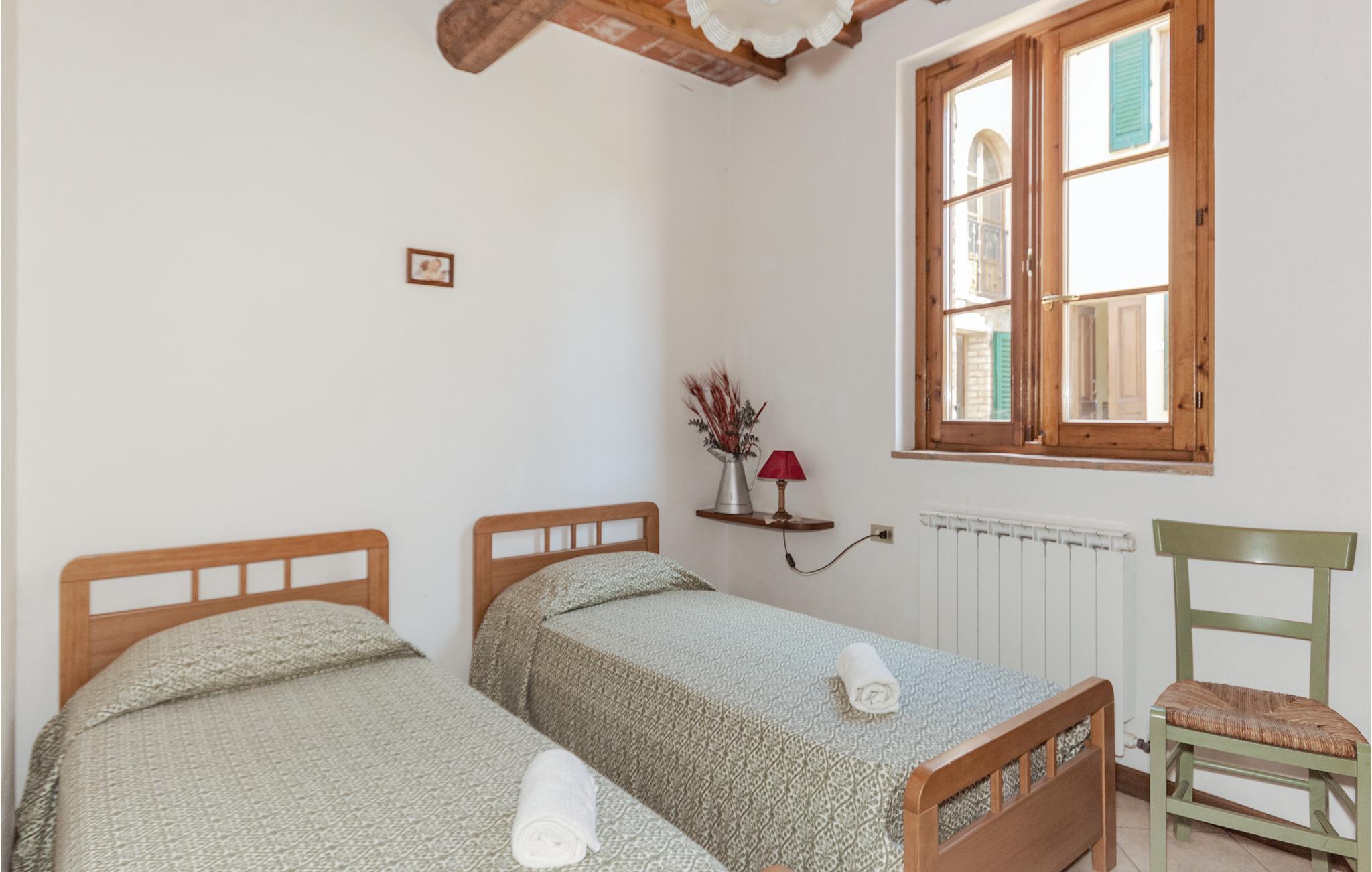Schöner Landhauskomplex in ruhiger Panoramalage in den Hügeln um Montaione (2 Km), nur 20 Minuten von der wunderschönen weltbekannten Turmstadt San Gimignano entfernt. Der Weiler besteht aus dem Haus des Eigentümers und 13 Ferienwohnungen. Die charakteristische Silhouette des mittelalterlichen San Gimignano mit seinen emporragenden Türmen erkennt man schon von Weitem. Hier sollten Sie unbedingt den guten lokalen Vernaccia- Weißwein am bezaubernden Domplatz genießen und im Dom aus dem 12. Jahrhundert können Sie Fresken mit Geschichten aus dem Alten und Neuen Testament bewundern. Ein Muss ist der Panoramablick von der Ruine der Rocca aus: Den atemberaubenden Blick auf die Türme und die umliegende Hügellandschaft wird Ihnen garantiert lange in Erinnerung bleiben! Zufahrt über 800 m Naturstraße. Gemeinschaftsraum mit SAT-TV. Waschmaschinennutzung mit Gebühr. Siehe ITN162 - ITN170 und ITN604 - ITN607.