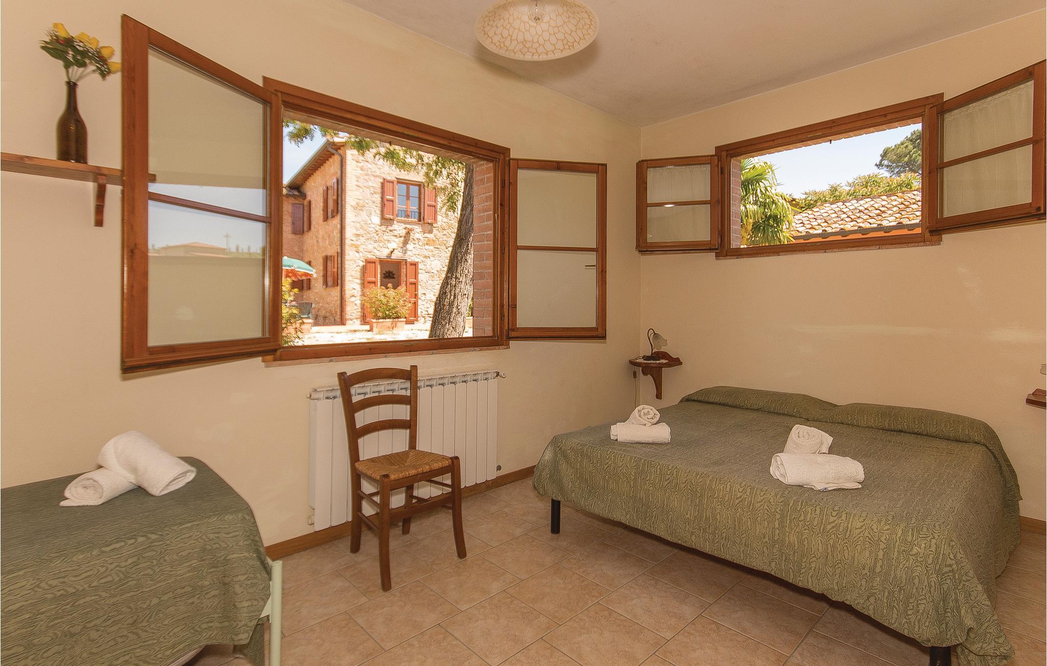 Schöner Landhauskomplex in ruhiger Panoramalage in den Hügeln um Montaione (2 Km), nur 20 Minuten von der wunderschönen weltbekannten Turmstadt San Gimignano entfernt. Der Weiler besteht aus dem Haus des Eigentümers und 13 Ferienwohnungen. Die charakteristische Silhouette des mittelalterlichen San Gimignano mit seinen emporragenden Türmen erkennt man schon von Weitem. Hier sollten Sie unbedingt den guten lokalen Vernaccia- Weißwein am bezaubernden Domplatz genießen und im Dom aus dem 12. Jahrhundert können Sie Fresken mit Geschichten aus dem Alten und Neuen Testament bewundern. Ein Muss ist der Panoramablick von der Ruine der Rocca aus: Den atemberaubenden Blick auf die Türme und die umliegende Hügellandschaft wird Ihnen garantiert lange in Erinnerung bleiben! Zufahrt über 800 m Naturstraße. Gemeinschaftsraum mit SAT-TV. Waschmaschinennutzung mit Gebühr. Siehe ITN162 - ITN170 und ITN604 - ITN607.