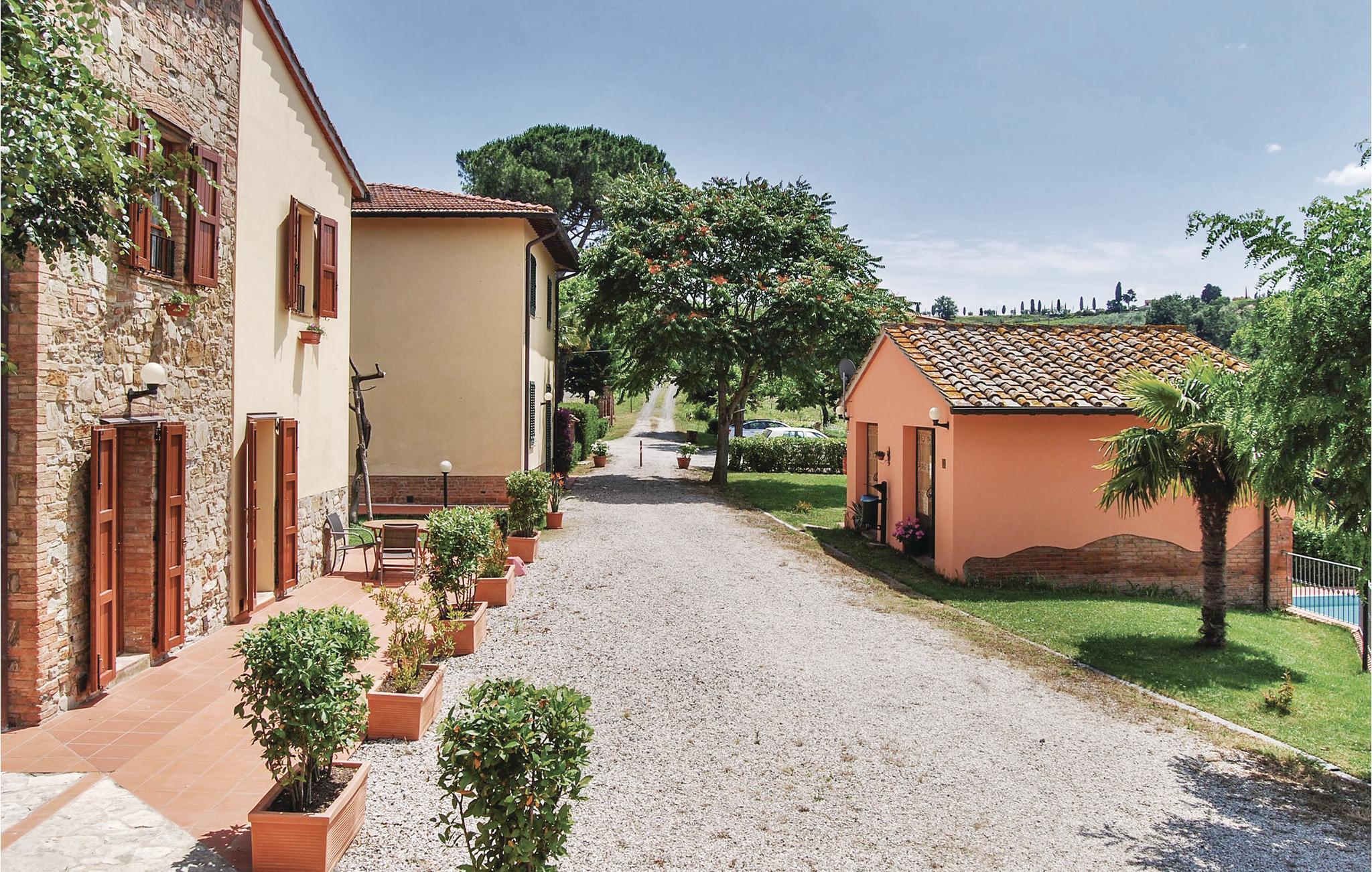 Schöner Landhauskomplex in ruhiger Panoramalage in den Hügeln um Montaione (2 Km), nur 20 Minuten von der wunderschönen weltbekannten Turmstadt San Gimignano entfernt. Der Weiler besteht aus dem Haus des Eigentümers und 13 Ferienwohnungen. Die charakteristische Silhouette des mittelalterlichen San Gimignano mit seinen emporragenden Türmen erkennt man schon von Weitem. Hier sollten Sie unbedingt den guten lokalen Vernaccia- Weißwein am bezaubernden Domplatz genießen und im Dom aus dem 12. Jahrhundert können Sie Fresken mit Geschichten aus dem Alten und Neuen Testament bewundern. Ein Muss ist der Panoramablick von der Ruine der Rocca aus: Den atemberaubenden Blick auf die Türme und die umliegende Hügellandschaft wird Ihnen garantiert lange in Erinnerung bleiben! Zufahrt über 800 m Naturstraße. Gemeinschaftsraum mit SAT-TV. Waschmaschinennutzung mit Gebühr. Siehe ITN162 - ITN170 und ITN604 - ITN607.