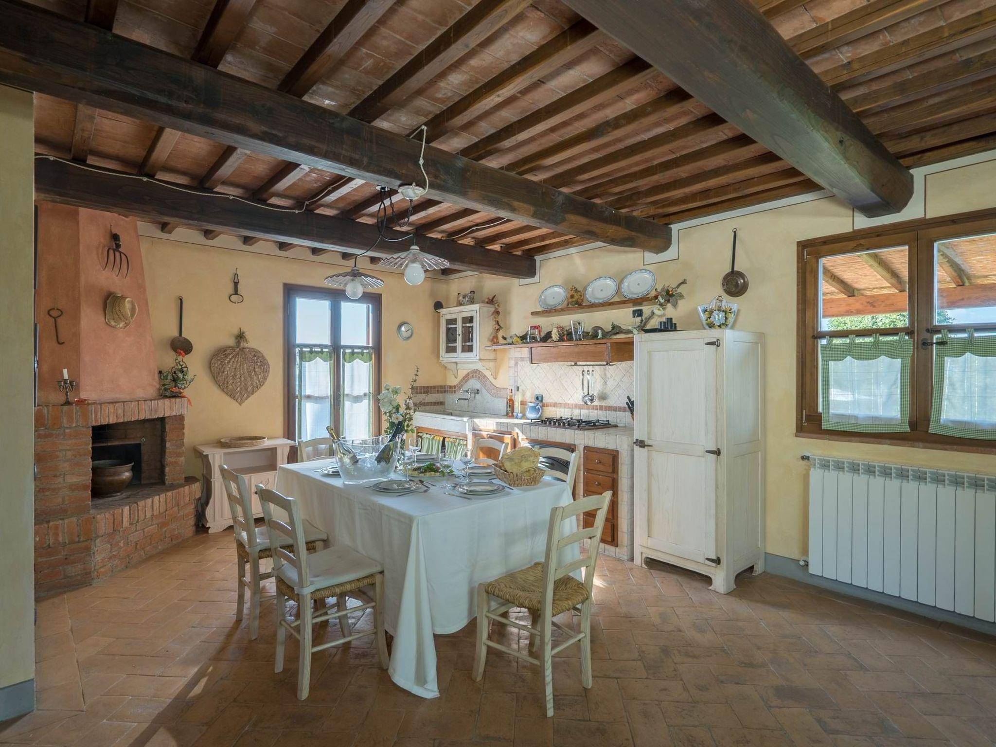 Die 240 m² große Villa, die zusammen mit dem 60 m² großen, freistehenden Haus gemietet wird, kann bis zu 15 Personen beherbergen. Das Haupthaus ist sehr gut im toskanischen Stil eingerichtet und in zwei miteinander kommunizierende Teile aufgeteilt; beide Teile sind sehr privat, da jeder Teil über eine eigene voll ausgestattete Küche verfügt (Kühlschrank mit Gefrierfach, Backofen, Toaster, Kaffeemaschine, Wasserkocher, Geschirrspüler).