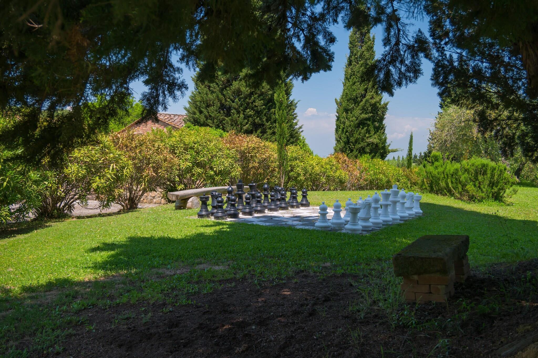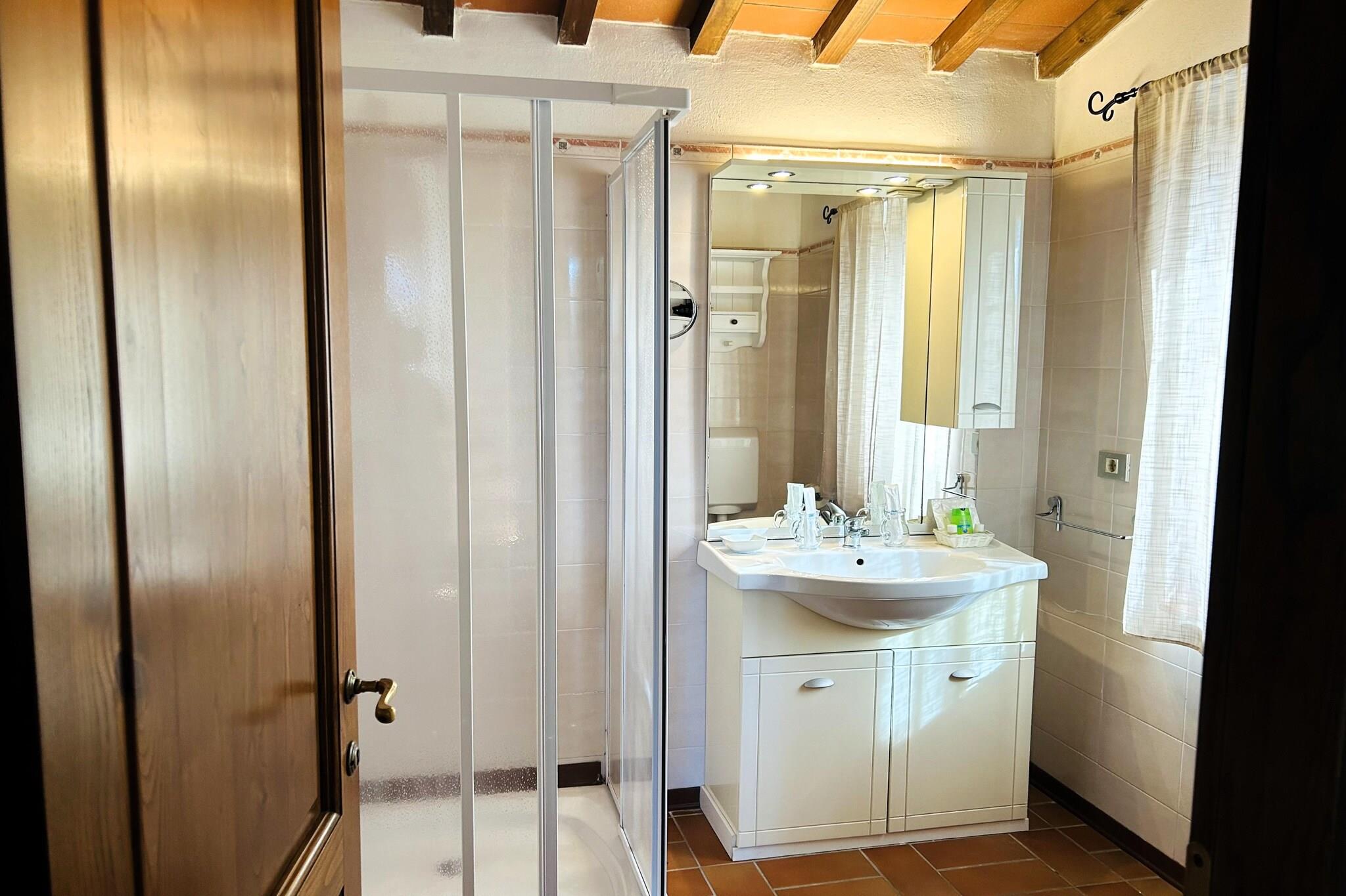 Dieses einladende Erdgeschossapartment in der Via Varna 69 in der Nähe von Gambassi Terme verfügt über einen gemütlichen Wohnbereich mit Kamin und Schlafsofa, eine gut ausgestattete 17 m² große Küche mit Backofen, Herd, Espressomaschine, Wasserkocher, Mikrowelle, Toaster, Geschirrspüler und Kühl-Gefrierkombination sowie einem Esstisch. Es umfasst ein Schlafzimmer mit Doppelbett, ein Zweibettzimmer, ein Badezimmer mit Dusche und Bidet sowie eine 15 m² große private Terrasse mit Zugang zum Gemeinschaftsgarten – ideal für Paare oder kleine Familien, die Ruhe in der Toskana suchen. Der gemeinschaftlich genutzte, eingezäunte Garten bietet eine entspannende Atmosphäre mit Loungemöbeln und einem Holzkohlegrill. Den Gästen steht ein 12 x 6 m großer Pool mit flachem Kinderbereich (geöffnet von April bis September), eine Außendusche, ein Holzofen und eine Gemeinschaftswaschmaschine zur Verfügung. Kinder und Gruppen werden die Spielgeräte, die Tischtennisplatte, die Kickertische und das Tor lieben. Eingebettet in die Hügel der Toskana liegt das Haus 1 km von Reitwegen und 6 km von den Angelseen in Alberi entfernt. Das historische Spa von Gambassi Terme ist 7 km entfernt. In Castelfiorentino (3 km) servieren Trattorien wie Chiosco Ai Renai und Casa Masi lokale Gerichte. Erkunden Sie die Kirche aus dem 13. Jahrhundert in Varna und den Sacro Monte von San Vivaldo oder unternehmen Sie Tagesausflüge nach San Gimignano (18 km), Siena, Florenz, Pisa und Volterra. Mit kostenlosem WLAN und haustierfreundlichem Charme bietet dieses Refugium Kultur und Komfort. Das Trüffelfestival findet jedes Jahr am letzten Oktoberwochenende statt.