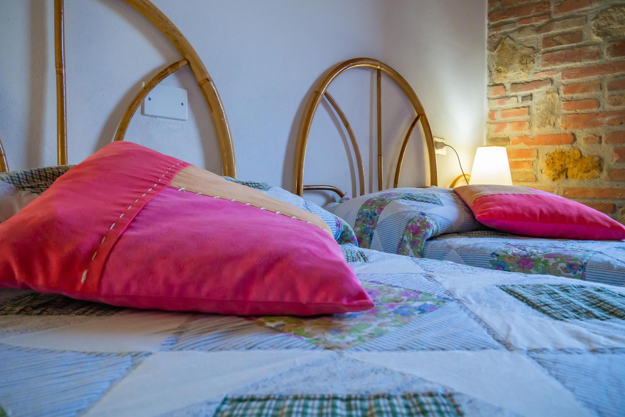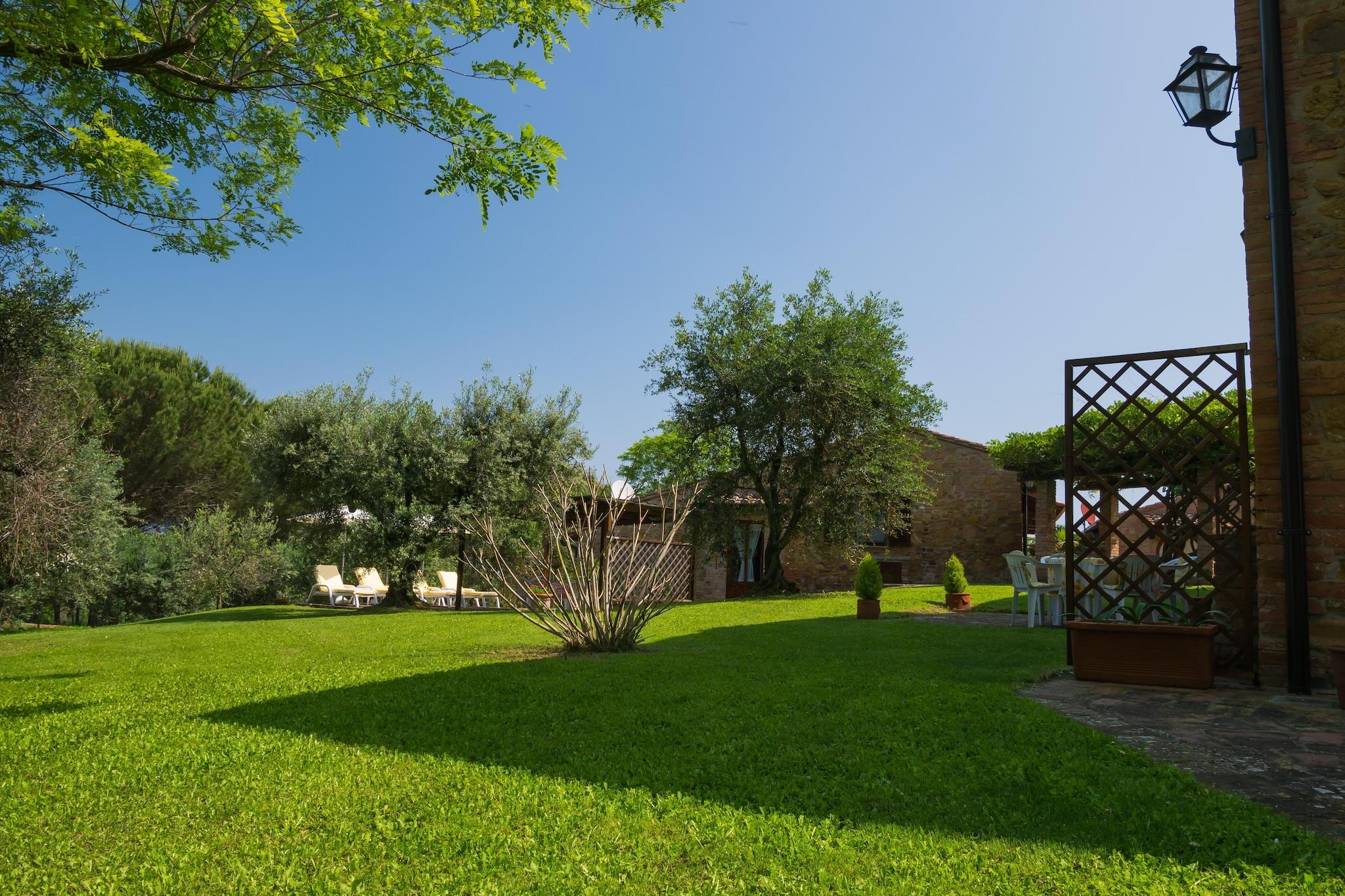 Ortensia und Glicine sind zwei nebeneinander liegende Wohnungen mit zwei Schlafzimmern, Bad und Wohnküche. Sie befinden sich im ersten Stock des alten Bauernhauses, einem bezaubernden Bauernhaus in der herrlichen toskanischen Landschaft. Bei der Restaurierung wurden die für diesen Teil der Toskana typischen alten Tuff- und Ziegelmauern erhalten. Die Wohnungen sind mit Bettwäsche, Töpfen und Pfannen ausgestattet und verfügen über einen eigenen, reservierten Bereich im Garten mit Tisch, Stühlen und Liegestühlen. Sie liegen eingebettet in die Ruhe eines großen, sonnigen und gepflegten Gartens voller Olivenbäume, Obstbäume und aromatischer Pflanzen, umgeben von wunderschönen Hügeln und in einer einzigartigen Umgebung unendlicher Ruhe und Beschaulichkeit. Die Außenbereiche und der Pool sind mit bequemen Gartenmöbeln ausgestattet, um ruhige Momente im Freien zu verbringen. Das Anwesen ist komplett eingezäunt, um die Privatsphäre der Gäste zu gewährleisten, und verfügt über einen Swimmingpool mit Hydromassage, einen Kleinfeld-Fußballplatz, Riesenschach, einen Spielplatz und Tischtennis. Im Herzen der Toskana gelegen, ist es ein idealer Ausgangspunkt für Besuche der schönsten Kunststädte wie Florenz, Siena, Pisa, San Gimignano und Volterra. In der Nähe können Sie Golf (27-Loch-Platz), Tennis und Reiten spielen. Das Anwesen verfügt über einen kleinen Weinkeller, in dem Sie typische lokale Produkte (Wein und Öl) erwerben können. Dies ist eine der schönsten Gegenden der Toskana. Fantastische Farben gleiten wie in einem impressionistischen Gemälde über sanfte Hügel in dieser Landschaft, in der sich Wälder und Weinberge in einer poetischen, mit Zypressen gesprenkelten Landschaft abwechseln. Auf der einen Seite bietet sich ein herrlicher Blick auf Castelfalfi und das Carfalo-Tal, hinunter zu den Hügeln Richtung Ghizzano, Lajatico und Peccioli; auf der gegenüberliegenden Seite Montaione und das Evolatal. In der Nähe können Sie Golf (27-Loch-Platz), Tennis und Reiten spielen. Das Trüffelfest findet jedes Jahr am letzten Oktoberwochenende statt. Die Eigentümer wohnen auf dem Anwesen, stehen Ihnen jederzeit zur Verfügung und heißen Sie herzlich willkommen. Hinweis: Für die Heizung (1. März – 15. April und 25. September – 31. Oktober) fällt eine Servicegebühr von 20 EURO/Nacht an. Die Kurtaxe wird nur von Erwachsenen und Jugendlichen ab 14 Jahren bezahlt.