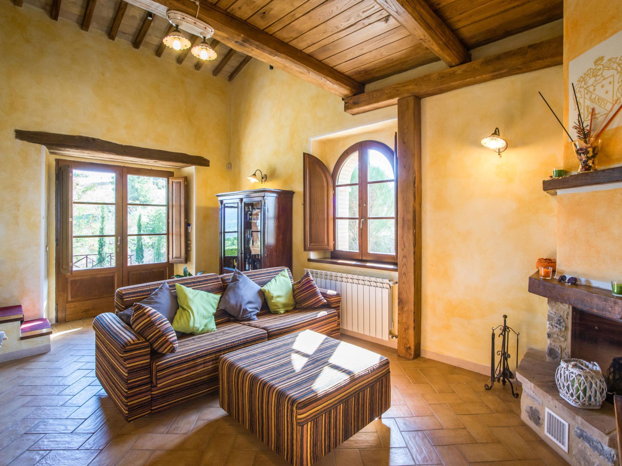 "Villa al Sole", 4-Zimmer-Haus 135 m2 auf 2 Stockwerken. Geschmackvoll und gemütlich eingerichtet: Wohnzimmer mit offenem Kamin, Sat-TV, Radio und CD. Ausgang zur Terrasse. 1 Doppelzimmer. Ausgang zur Terrasse. 1 Doppelzimmer. 1 Zimmer mit 2 Betten (80 cm). Offene Küche (Backofen, Geschirrspüler, 5 Flammen, Toaster, Wasserkocher, Mikrowelle, Tiefkühler, elektrische Kaffeemaschine) mit Esstisch. Ausgang zur Terrasse. Bad/Bidet/WC, Dusche/Bidet/WC, Whirlbadewanne. Obergeschoss: abgeschrägte, offene Galerie mit (1 cm), 1 Doppelbett und Dusche/Bidet/WC. G-Heizung. Grosse Terrasse überdacht, kleine Terrasse überdacht. Terrassenmöbel, Gartengrill, Liegestühle, Abstellkammer. Herrliche Sicht auf das Tal, die Landschaft, den Wald und Val d'Orcia, Monte Amiata. Zur Verfügung: Waschmaschine, Safe, Fliegengitter, Kinderhochstuhl, Babybett. Internet (WLAN, gratis). Parkplatz beim Haus. E-Ladestation. Bitte beachten: Nichtraucher-Unterkunft. Maximal 1 Haustier/Hund erlaubt. Rauchmelder, Feuerlöscher. Anstelle eines abgeschlossenen Schlafzimmers befinden sich manche Schlafplätze in einem offenen Bereich (Galerie, Nische etc.). IT053025C2B7DU8FGE