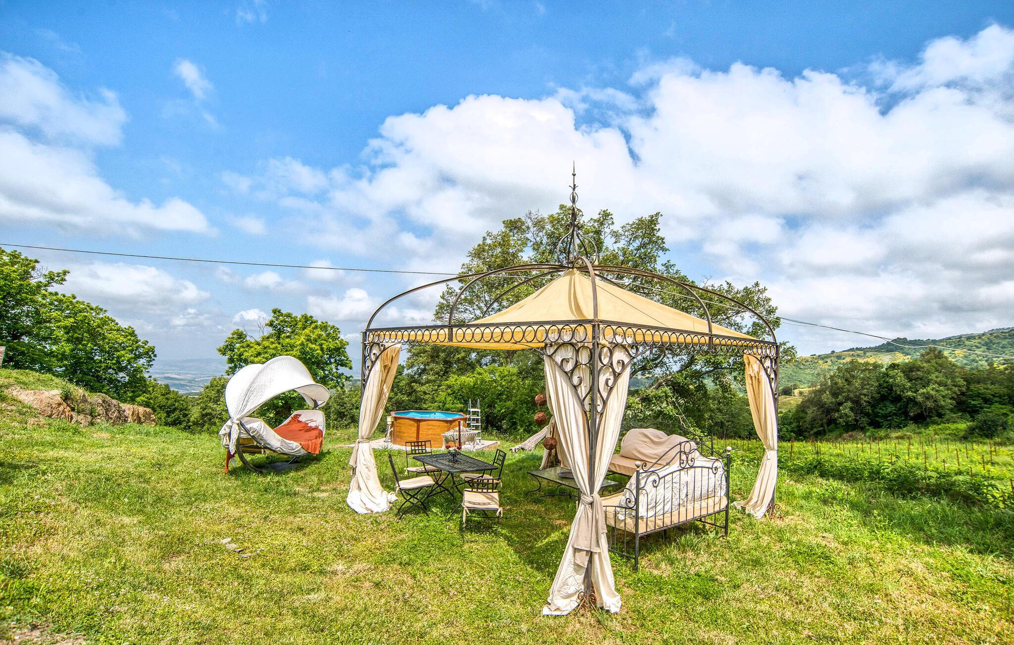 Genießen Sie auf Ihrer Terrasse stimmungsvolle Grillabende, spazieren Sie durch den jahrhundertealten Kastanienhain oder zu den Überresten einer typischen toskanischen Steinmühle. Lassen Sie an einem lauschigen Plätzchen die friedliche Atmosphäre auf sich wirken, während Ihre Kinder spielerisch die Natur entdecken, und bewundern Sie den Blick über die toskanischen Hügel bis hin zum Meer bei Grosseto – an klaren Tagen können Sie sogar Korsika sehen.