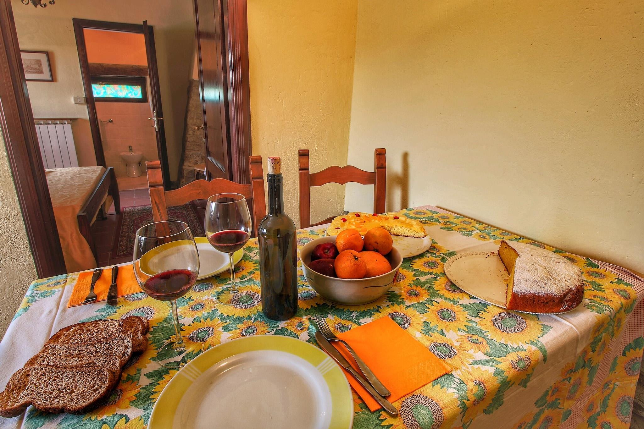 Entfliehen Sie in die ruhige Landschaft von Monte Santa Maria Tiberina. Dieses haustierfreundliche Bauernhaus für zwei Gäste bietet einen gemütlichen und erholsamen Aufenthalt. Umgeben von sanften Hügeln und historischem Charme bietet dieses Refugium kostenloses WLAN, einen privaten Garten und Zugang zu einem Gemeinschaftspool (14 x 7 m, geöffnet von Mai bis September). Egal, ob Sie in der ruhigen Umgebung entspannen oder nahegelegene Sehenswürdigkeiten erkunden möchten – dieses Bauernhaus ist der perfekte Rückzugsort. Das Erdgeschoss verfügt über ein einladendes Wohnzimmer mit Doppelschlafsofa und Fernseher sowie eine voll ausgestattete Küche mit Esstisch, Backofen und Kühl-Gefrierkombination. Das Haus bietet ein komfortables Schlafzimmer mit Doppelbett und ein Badezimmer mit Dusche, Waschbecken, WC und Bidet. Zentralheizung, eine Gemeinschaftswaschmaschine, Gartenmöbel, ein Grillplatz und Parkplätze sorgen für einen komfortablen und angenehmen Aufenthalt. Der nahe gelegene Palazzo Bourbon dal Monte besticht durch seine beeindruckende Architektur, während die Chiesa di Santa Maria Assunta einen Einblick in die reiche Geschichte der Region bietet. Für Outdoor-Fans bietet Anghiari atemberaubende Radwege. Zu den gastronomischen Einrichtungen gehören die Bar Ristorante Oscari, bekannt für ihre köstliche italienische Küche, und das Il Palazzetto del Monte Ristorante, das authentische lokale Aromen bietet. Ob Sie kulturelle Sehenswürdigkeiten erkunden oder traditionelle Gerichte genießen möchten – dieses Bauernhaus ist der perfekte Rückzugsort in Umbrien.
