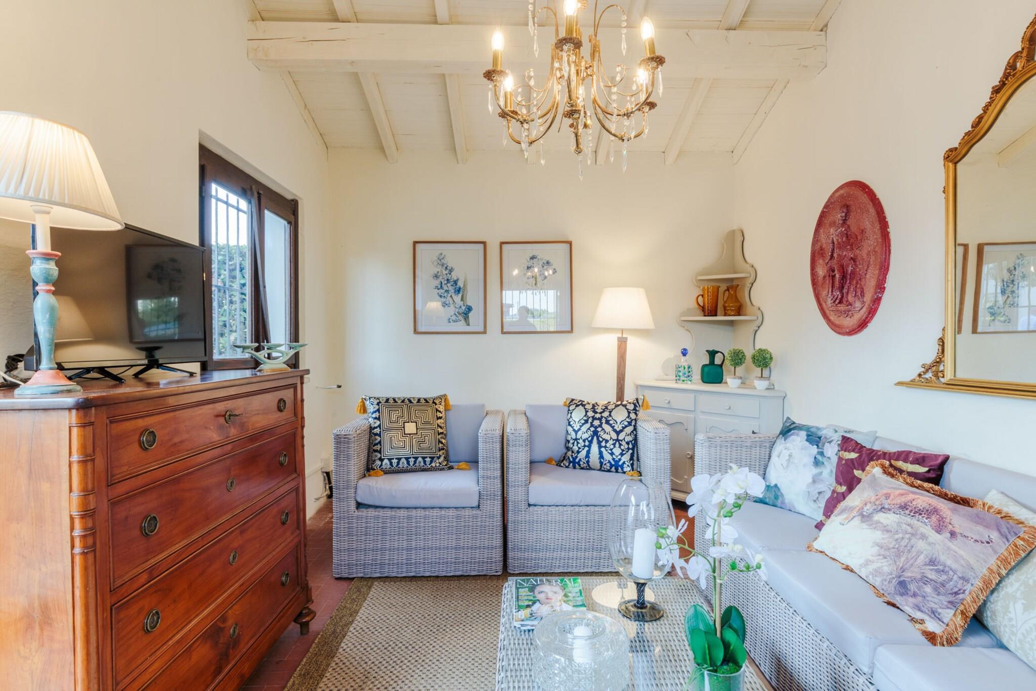 Die Villa Cesare ist ein romantisches Refugium am Hang des Monte San Quirico, nur 3 Kilometer vom historischen Zentrum und den berühmten Stadtmauern von Lucca entfernt. Umgeben von sanfter Hügellandschaft und charmanten Restaurants bietet diese Villa mit 4 Schlafzimmern einen ruhigen Ausgangspunkt für die Erkundung der vielen Schätze der Toskana – von Florenz und Pisa bis zu den Stränden der Versilia und den Dörfern der Cinque Terre. Die günstige Lage verbindet die Ruhe der Natur mit der guten Anbindung an Luccas pulsierende Altstadt. Im Inneren verbindet die Villa rustikale Eleganz mit modernem Komfort. Große Fenster, originale architektonische Details und der klassische Charme des 20. Jahrhunderts verleihen den Räumen Charme, während die moderne Ausstattung für einen komfortablen Aufenthalt sorgt. Das Haus verfügt über eine voll ausgestattete Küche mit Zugang zum Garten und Poolbereich, geräumige Wohn- und Essbereiche, Balkone, vier komfortable Schlafzimmer und drei Badezimmer. Der private, oberirdische Pool bietet eine erfrischende Pause nach einem Tag voller Besichtigungen. Die Villa Cesare ist ideal für Familien, Paare oder Freunde, die einen stilvollen, erholsamen Ort zum Entspannen suchen. Im Mietpreis enthalten sind Bettwäsche, Handtücher, WLAN, Endreinigung und Nebenkosten. Ein Hochstuhl und ein Babybett sind auf Anfrage erhältlich. Bitte beachten Sie, dass der Kamin nur zur Dekoration dient und nicht benutzt werden darf. Mit großzügigen Innen- und Außenbereichen und einer erstklassigen Lage in der Nähe von Lucca ist die Villa Cesare ein charmantes zweites Zuhause im Herzen der Toskana. Hinweis: Kurtaxe ist vor Ort zu entrichten.