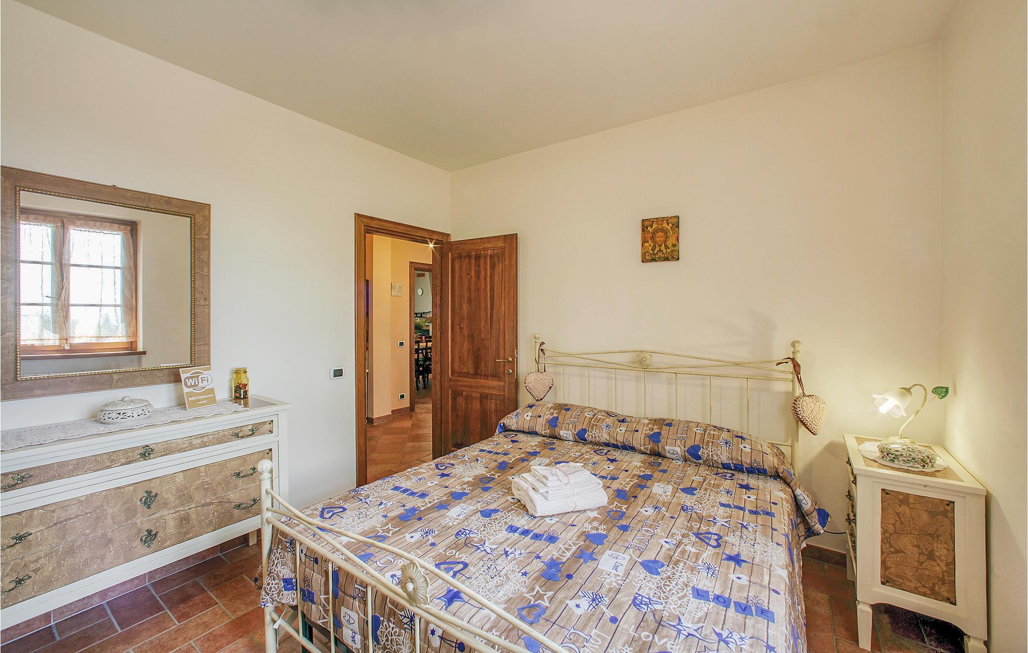 In schöner Hügellage zwischen Siena und Arezzo erwartet Sie dieses freundliche Ferienhaus (Doppelhaushälfte) mit privatem Pool. Das Haus liegt in 630 m Höhe etwas außerhalb von Palazzuolo am Waldrand – eine ideale Lage zum Ausruhen und Entspannen. Erdgeschoss mit Wohnzimmer und Küche, Ausgang zur überdachten Terrasse. Zwei Schlafzimmer, jedes mit Bad. Im 1. Stock (Mansarde) das dritte Wohnzimmer, Studio mit Einzelbett, Bad. Privater Gartenbereich vor dem Haus; Gartensitzplatz mit Barbecue; etwas unterhalb, mit einzigartigem Panoramablick, liegt der Poolbereich mit Außendusche, Kabine und WC. Die freundlichen Eigentümer bewohnen eine separate Wohnung im Souterrain; sie verwöhnen nicht nur ihre vierbeinigen Mitbewohner (Katzen), sondern bekochen auf Anfrage auch gerne ihre Feriengäste: Das Ehepaar hat die Kochkunst zur Passion gemacht! Sie finden in im nahen Palazzuolo außerdem ein gutes Ristorante; für Einkäufe aller Art, Cappuccino, Eis, Aperitif aber auch Kultur (Ausstellungen, Konzerte im Rosengarten) bietet Ihnen das reizende Reaissance-Städtchen Monte San Savino ein reichhaltiges Angebot. Mittwochs Markttag! An kühleren Tagen sind die warmen Thermalbäder von Rapolano ein geeignetes Ausflugsziel (18 km). Die Lage ist ideal nicht nur für Wanderungen, sondern auch zum Biken in den sanften, aber auch schon mal anspruchsvollen Hügeln der Umgebung. Besichtigen Sie Arezzo (30 km), Siena (35 km) und das Chianti (30 km) – trotz aller Abgeschiedenheit sind Sie hier recht zentral positioniert!