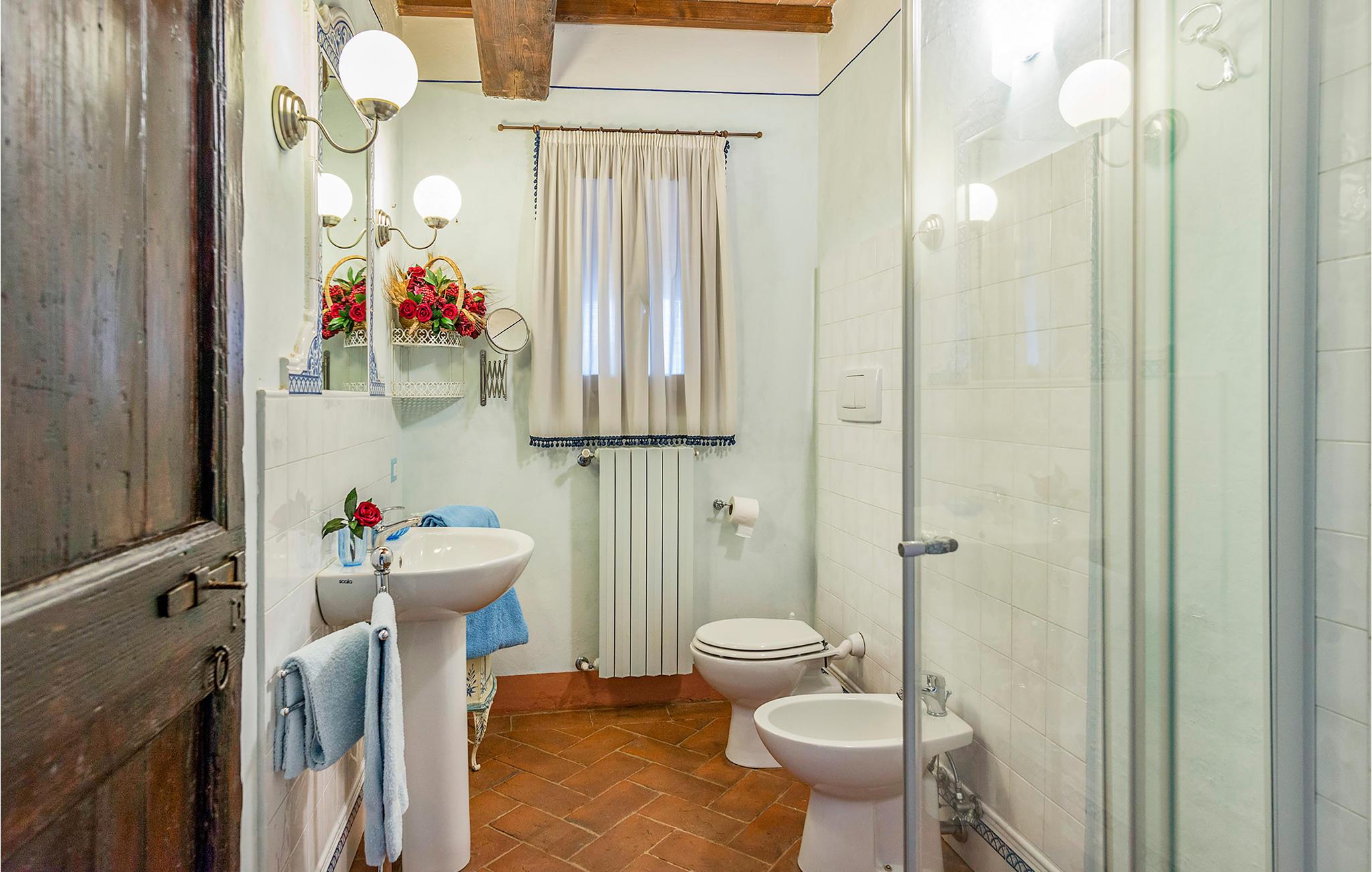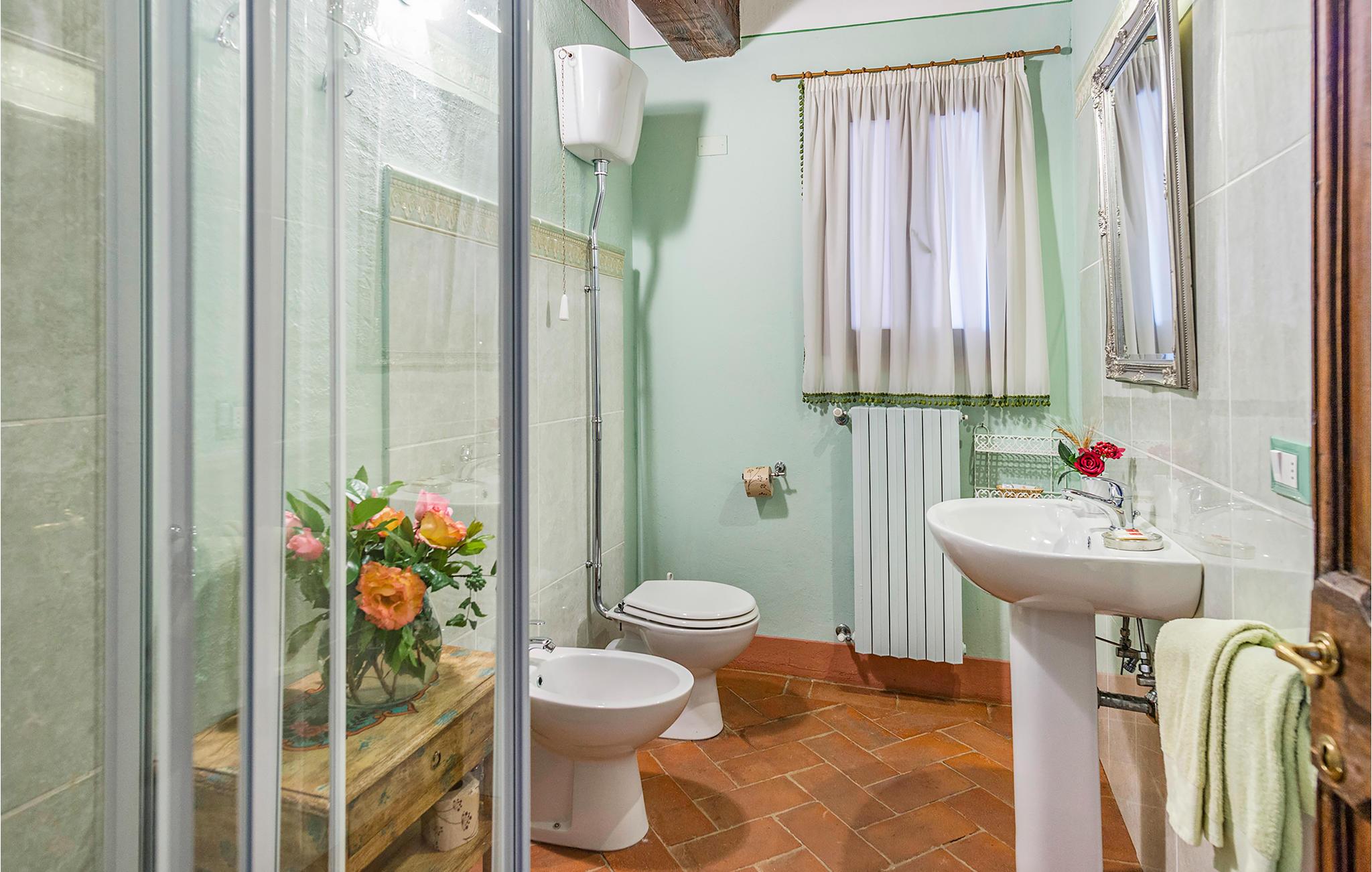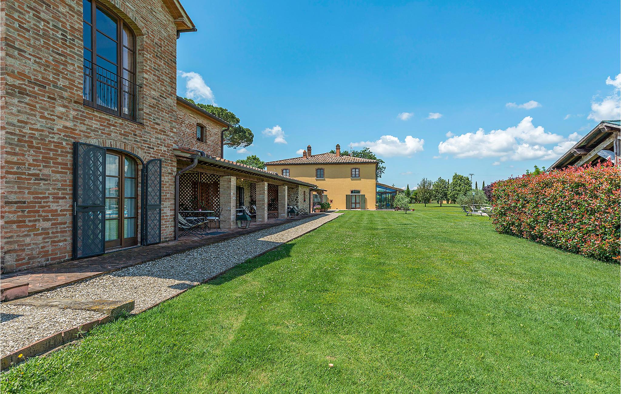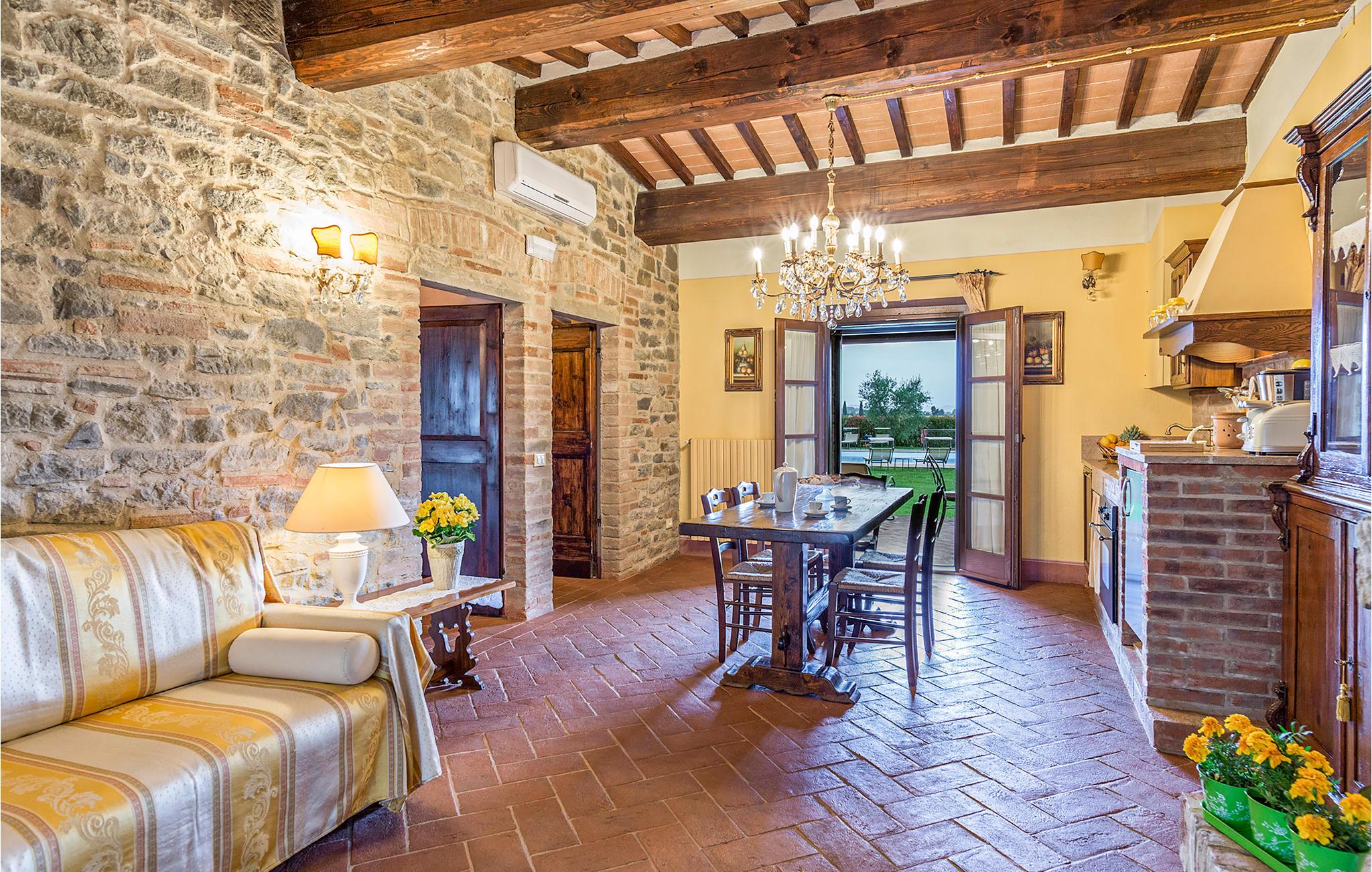 Mitten im Chianatal, auf einer leichten Anhöhe, liegt diese Anwesen. Auf dem weitläufigen gepflegten Grundstück befindet sich Ihr komfortables Ferienhaus mit ebenso komfortablem privaten Poolbereich. Das ehemalige Bauernhaus besteht aus vier separaten Ferienwohnungen, die mit viel Geschmack restauriert und eingerichtet wurden. Der großzügige offene Wohnbereich im Untergeschoss bietet auch an heißen Sommertagen die Möglichkeit zu kühlem Aufenthalt; er ist unterteilt in einen gut ausgestatteten Küchenbereich, Essecke, Wohnzimmer mit Maxi-TV, Bad und Fitnessraum. Zudem steht Ihnen eine offene Sommerküche mit Barbecue und Pizzaofen zur Verfügung. Über die Rückseite des Hauses zieht sich eine lange überdachte Terrasse mit Sitzecken und Liegestühlen und beim Pool finden Sie eine weitere überdachte Terrasse mit bequemen Liegen zum entspannten Relaxen, nach dem erfrischenden Bad im großen Pool. Die sehr diskreten Eigentümer wohnen in einer separaten Villa auf dem Grundstück.