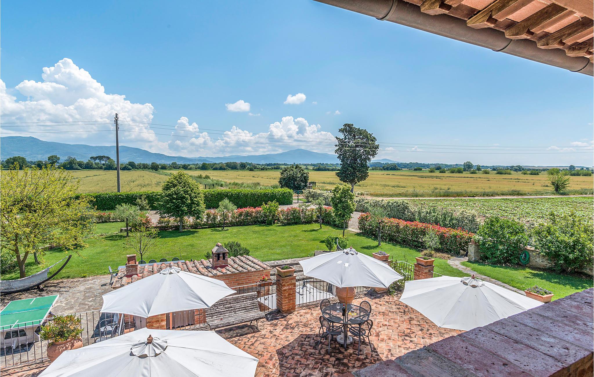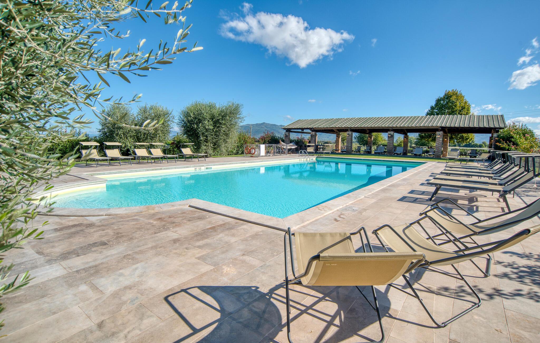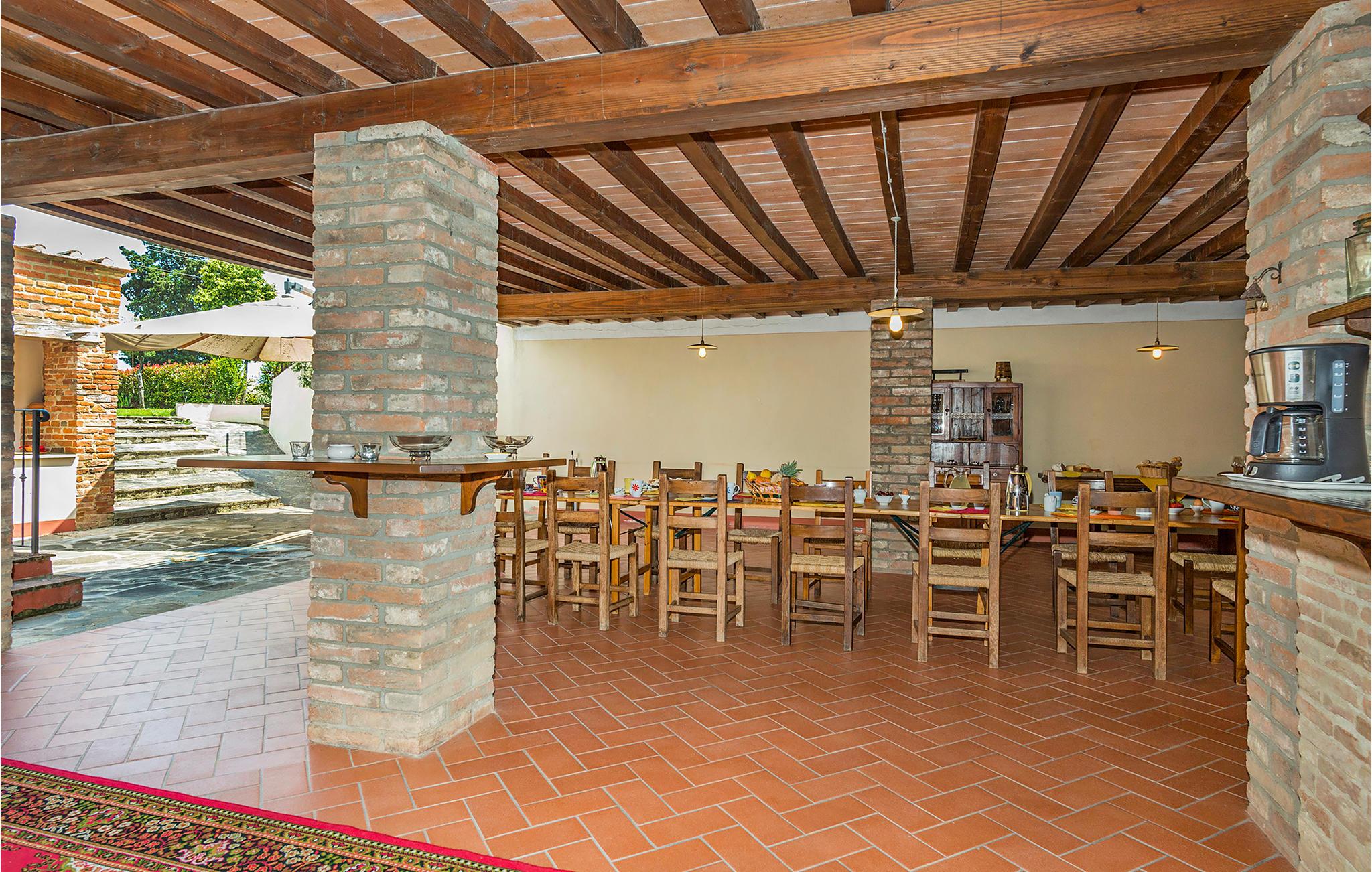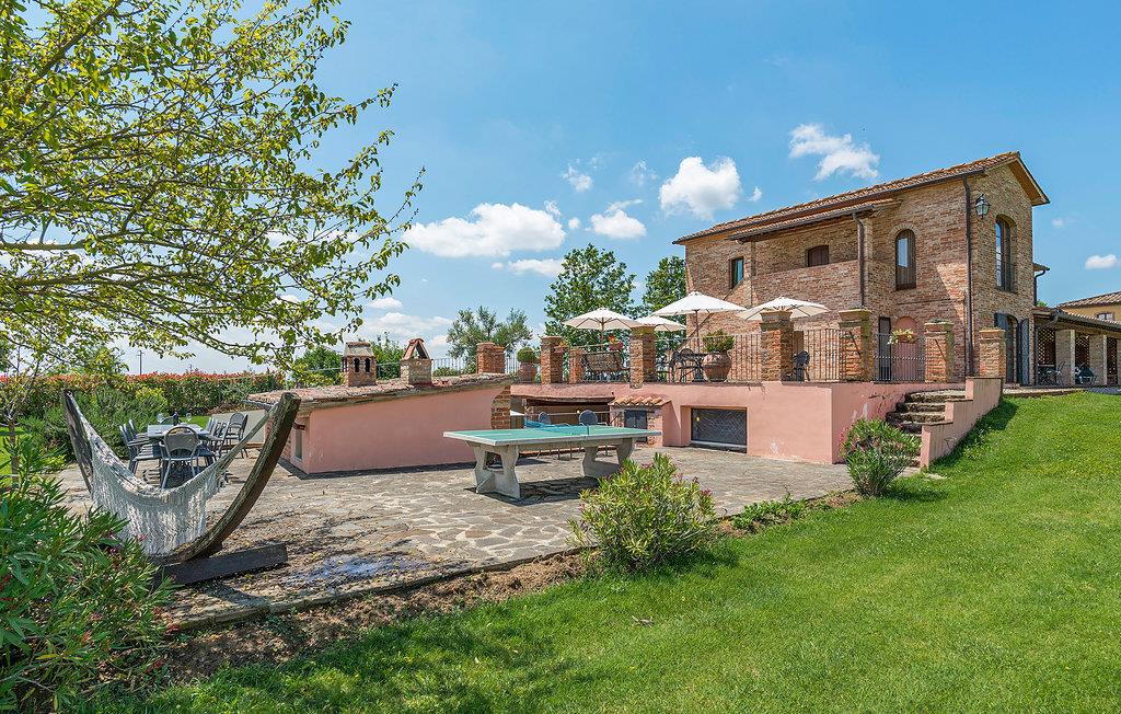 Mitten im Chianatal, auf einer leichten Anhöhe, liegt diese Anwesen. Auf dem weitläufigen gepflegten Grundstück befindet sich Ihr komfortables Ferienhaus mit ebenso komfortablem privaten Poolbereich. Das ehemalige Bauernhaus besteht aus vier separaten Ferienwohnungen, die mit viel Geschmack restauriert und eingerichtet wurden. Der großzügige offene Wohnbereich im Untergeschoss bietet auch an heißen Sommertagen die Möglichkeit zu kühlem Aufenthalt; er ist unterteilt in einen gut ausgestatteten Küchenbereich, Essecke, Wohnzimmer mit Maxi-TV, Bad und Fitnessraum. Zudem steht Ihnen eine offene Sommerküche mit Barbecue und Pizzaofen zur Verfügung. Über die Rückseite des Hauses zieht sich eine lange überdachte Terrasse mit Sitzecken und Liegestühlen und beim Pool finden Sie eine weitere überdachte Terrasse mit bequemen Liegen zum entspannten Relaxen, nach dem erfrischenden Bad im großen Pool. Die sehr diskreten Eigentümer wohnen in einer separaten Villa auf dem Grundstück.