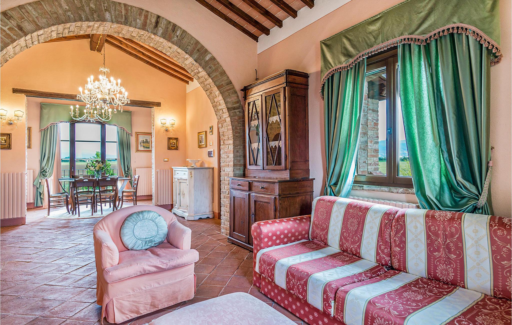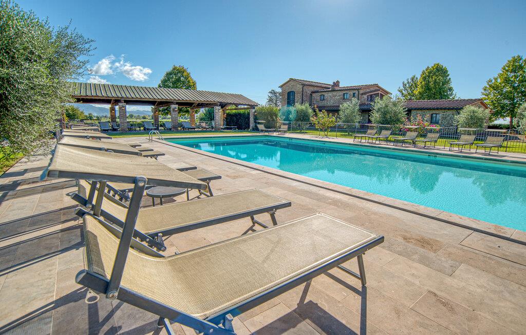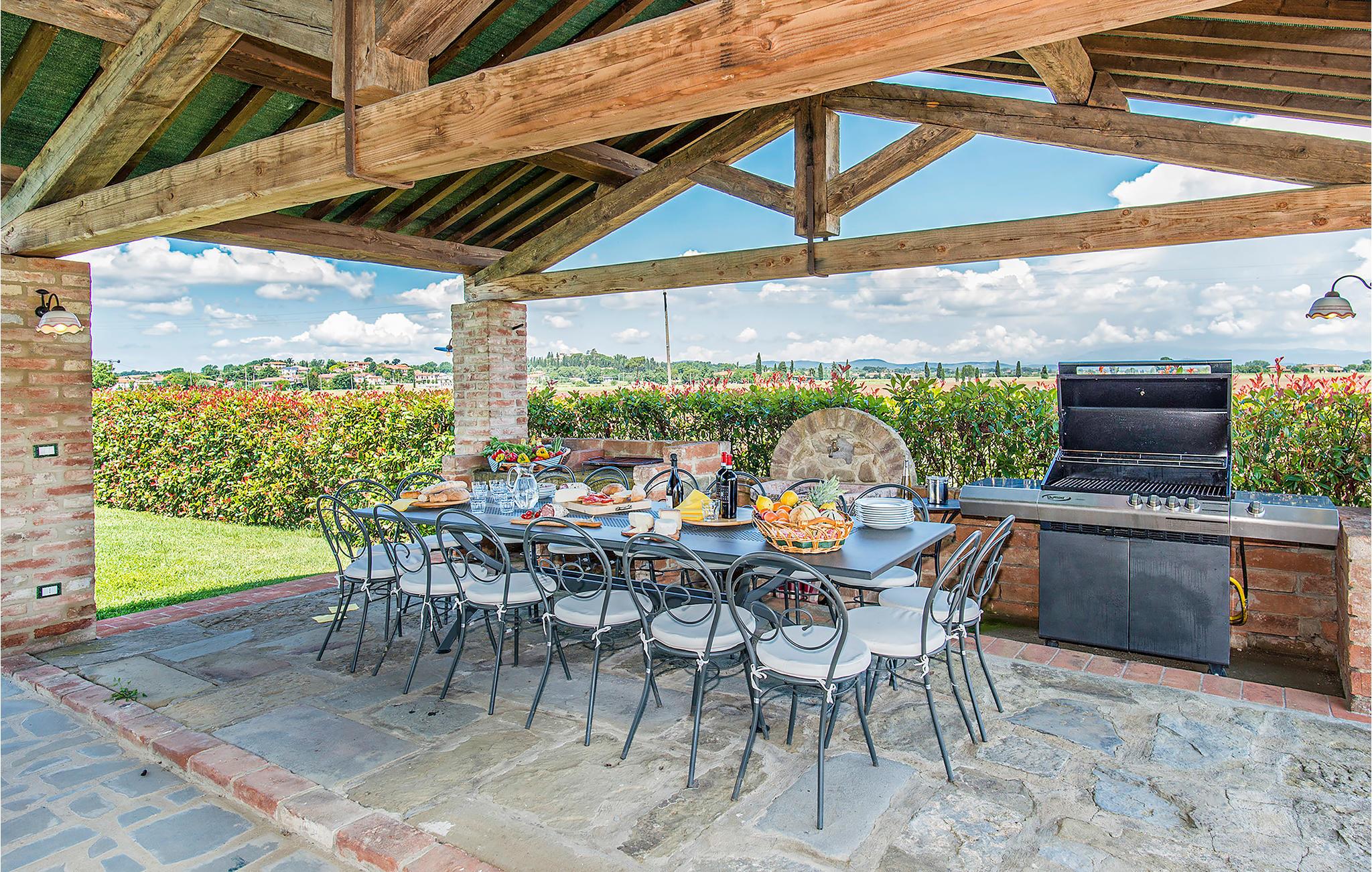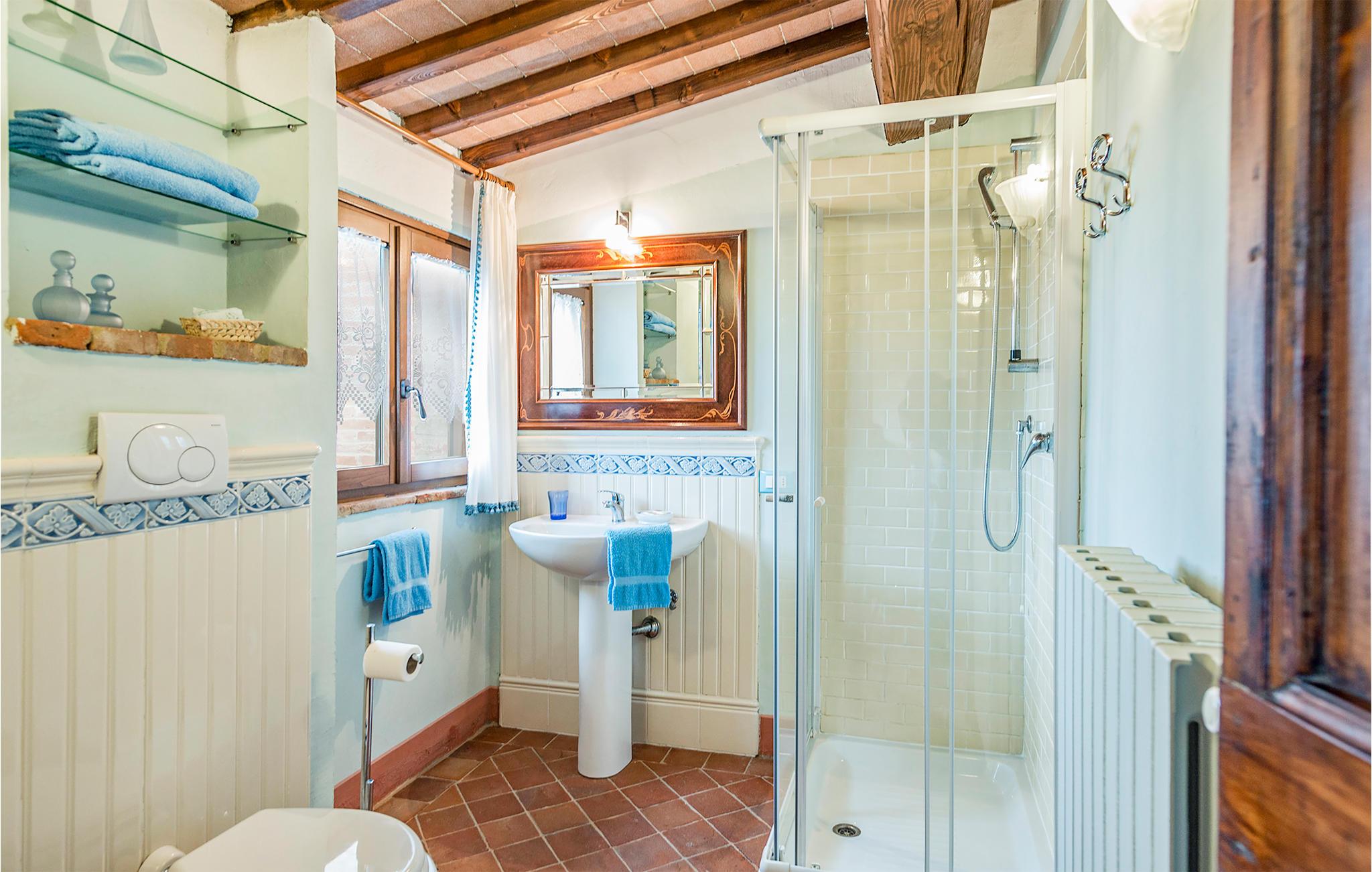 Mitten im Chianatal, auf einer leichten Anhöhe, liegt diese Anwesen. Auf dem weitläufigen gepflegten Grundstück befindet sich Ihr komfortables Ferienhaus mit ebenso komfortablem privaten Poolbereich. Das ehemalige Bauernhaus besteht aus vier separaten Ferienwohnungen, die mit viel Geschmack restauriert und eingerichtet wurden. Der großzügige offene Wohnbereich im Untergeschoss bietet auch an heißen Sommertagen die Möglichkeit zu kühlem Aufenthalt; er ist unterteilt in einen gut ausgestatteten Küchenbereich, Essecke, Wohnzimmer mit Maxi-TV, Bad und Fitnessraum. Zudem steht Ihnen eine offene Sommerküche mit Barbecue und Pizzaofen zur Verfügung. Über die Rückseite des Hauses zieht sich eine lange überdachte Terrasse mit Sitzecken und Liegestühlen und beim Pool finden Sie eine weitere überdachte Terrasse mit bequemen Liegen zum entspannten Relaxen, nach dem erfrischenden Bad im großen Pool. Die sehr diskreten Eigentümer wohnen in einer separaten Villa auf dem Grundstück.