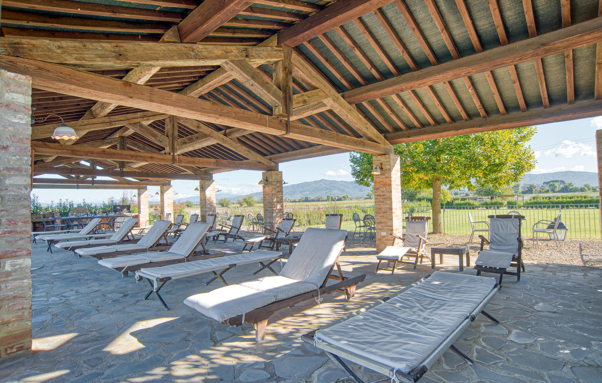 Von überall genießen Sie einen weiten Rundumblick über das Chiana-Tal mit seinen vielen schönen Städtchen und Ausflugszielen: Neben dem reizenden Städtchen Monte San Savino (8 km) winkt im Osten die alte Etruskerstadt Cortona, die 25 km entfernt am Berg liegt; suedwestlich die Weinstadt Montepulciano (35 km) und das berühmte Renaissance-Städtchen Pienza (40 km); Arezzo mit seiner sehenswerten Altstadt und dem großen Antiquitätenmarkt (an jedem 1.Wochenende im Monat) ist nur 20 km entfernt und auch Siena, mit dem schönsten Platz der Welt, der Piazza del Campo erreichen Sie in weniger als einer Stunde (50 km). Das leicht hügelige Chianatal mit seinen vielen kleinen Wegen und Sträßchen ist ideal lädt zum Biken – ein Radweg führt laengs des zentralen Canale Maestro quer durch das Tal. Zum Lago Trasimeno sind es etwa 30 km – hier locken kinderfreundliche Sandstrände und ein Bootsausflug zu den kleinen Inseln. Kochkurse und Kochservice auf Anfrage vor Ort. In Montagnano (1,5 km) bekommen Sie alles Nötige für den täglichen Bedarf.