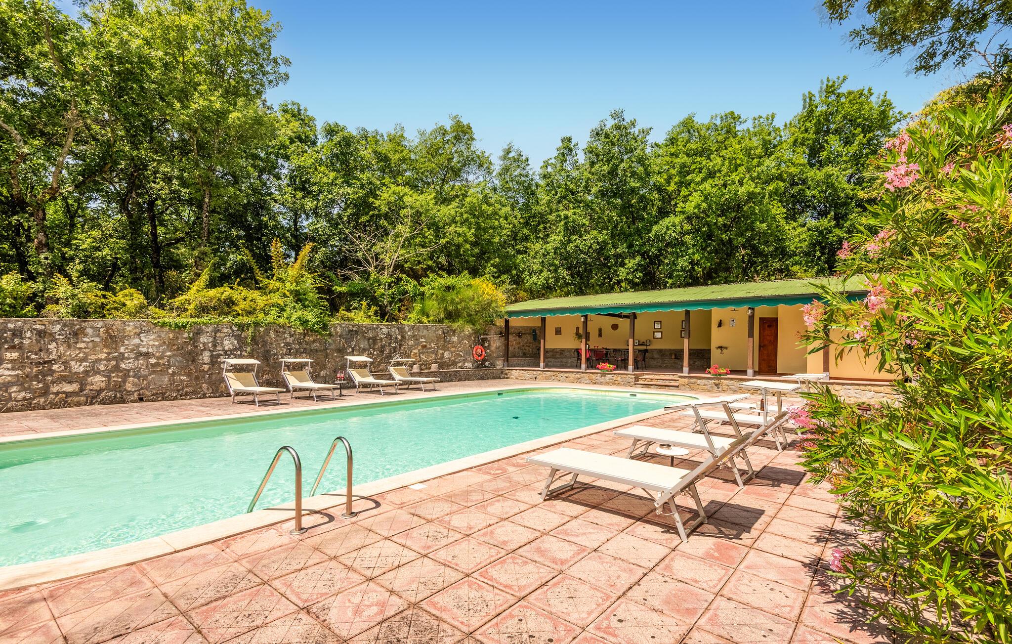 Genießen Sie pure Entspannung im komfortablen Ferienhaus mit herrlicher Aussicht und Pool.