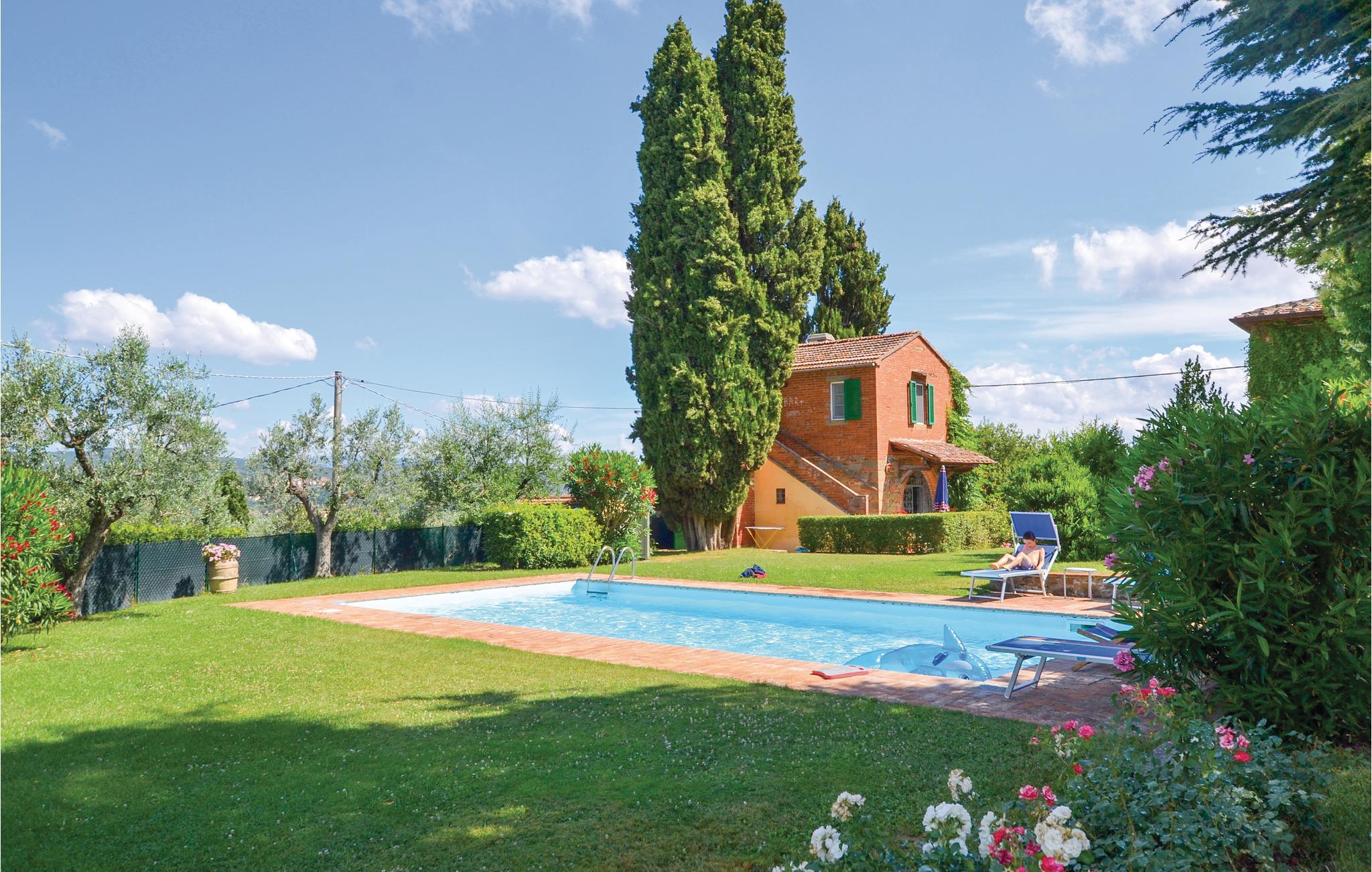 Etwas außerhalb von Monte San Savino (1,5 km) liegt dieses freundliche Ferienhaus in leichter Hügellage. Das Haus ist ein Nebengebäude einer historischen Villa, umgeben von einem parkähnlichen Grundstück mit Pool (gemeinsam mit ITA902). Man betritt den großen hellen Wohnraum über eine private Terrasse; im Wohnzimmer gibt es einen offenen Kamin und die angrenzende kleine Küche, eine Wendeltreppe führt ins 1. Stockwerk (das außerdem über eine bequeme Außentreppe zu erreichen ist). Die funktionale Küchenecke hat ebenfalls einen Ausgang zum Garten. Im 1. Stock befinden sich die Schlafzimmer mit Bad. Kinderbett auf Anfrage. Verschiedene Gartensitzplätze sind auf dem Grundstück verteilt, so können Sie den Espresso unter einer rosenbedeckten Pergola und ein Gläschen Wein im Schatten hoher Bäume genießen. Auch zu Fuß erreichen Sie bequem das nette Städtchen Monte San Savino, wo Sie verschiedene Bars, gute Restaurants und Eisdielen finden – für leidenschaftliche Städtebummler bieten sich zudem Arezzo (20 km, auch mit der Bahn), Cortona 30 km, Siena 50 km und Florenz 80 km. – Monte San Savino hat im Sommer ein reiches Angebot an kulturellen Veranstaltungen, vor allem Konzerte im Rosengarten; Mittwochs gibt es buntes Leben auf dem Markt. Tischfußbal im Gemeinschaftsbereich vorhanden. Der Eigentümer stellt Olivenöl und Wein von ausgezeichneter Qualität nach nichtindustriellen Methoden und unter Beachtung traditioneller Techniken und Methoden her. Der Wein wird aus Trauben von lokalen Sorten wie Sangiovese hergestellt und das erste Pressöl wird von lokalen Sorten (Moraiolo und Morelli) gegeben. Die Gäste können die Produkte probieren und den Weinkeller besuchen und in den letzten September-Tagen an der Ernte teilnehmen.