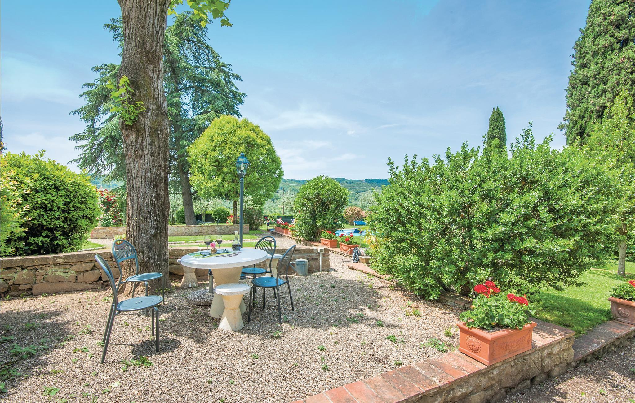 Die Wohnung hat einen separaten Eingang im EG, man erreicht das zentrale Wohnzimmer über eine breite und bequeme Treppe. Vom Wohnzimmer mit offenem Kamin gelangt man in die kleine Küche und in zwei der drei Schlafzimmer; ein drittes, mit Bad, liegt auf der anderen Seite der Treppe. Das ganze Gebäude hat seine ursprünglichen Charakteristiken und die Atmosphäre beibehalten; die Einrichtung ist im antiken rustikalen Stil. Kinderbett auf Anfrage. Vor dem Haus gibt es einen privaten Sitzplatz im Freien; verschiedene weitere Gartensitzplätze sind auf dem Grundstück verteilt - so können Sie den Espresso unter einer rosenbedeckten Pergola und ein Gläschen Wein im Schatten hoher Bäume genießen. Auch zu Fuß erreichen Sie bequem das nette Städtchen Monte San Savino, wo Sie verschiedene Bars, gute Restaurants und Eisdielen finden – für leidenschaftliche Städtebummler bieten sich zudem Arezzo (20 km, auch mit der Bahn), Cortona 30 km, Siena 50 km und Florenz 80 km. – Monte San Savino hat im Sommer ein reiches Angebot an kulturellen Veranstaltungen, vor allem Konzerte im Rosengarten; Mittwochs gibt es buntes Leben auf dem Markt. Tischfußbal im Gemeinschaftsbereich vorhanden. Der Eigentümer stellt Olivenöl und Wein von ausgezeichneter Qualität nach nichtindustriellen Methoden und unter Beachtung traditioneller Techniken und Methoden her. Der Wein wird aus Trauben von lokalen Sorten wie Sangiovese hergestellt und das erste Pressöl wird von lokalen Sorten (Moraiolo und Morelli) gegeben. Die Gäste können die Produkte probieren und den Weinkeller besuchen und in den letzten September-Tagen an der Ernte teilnehmen.