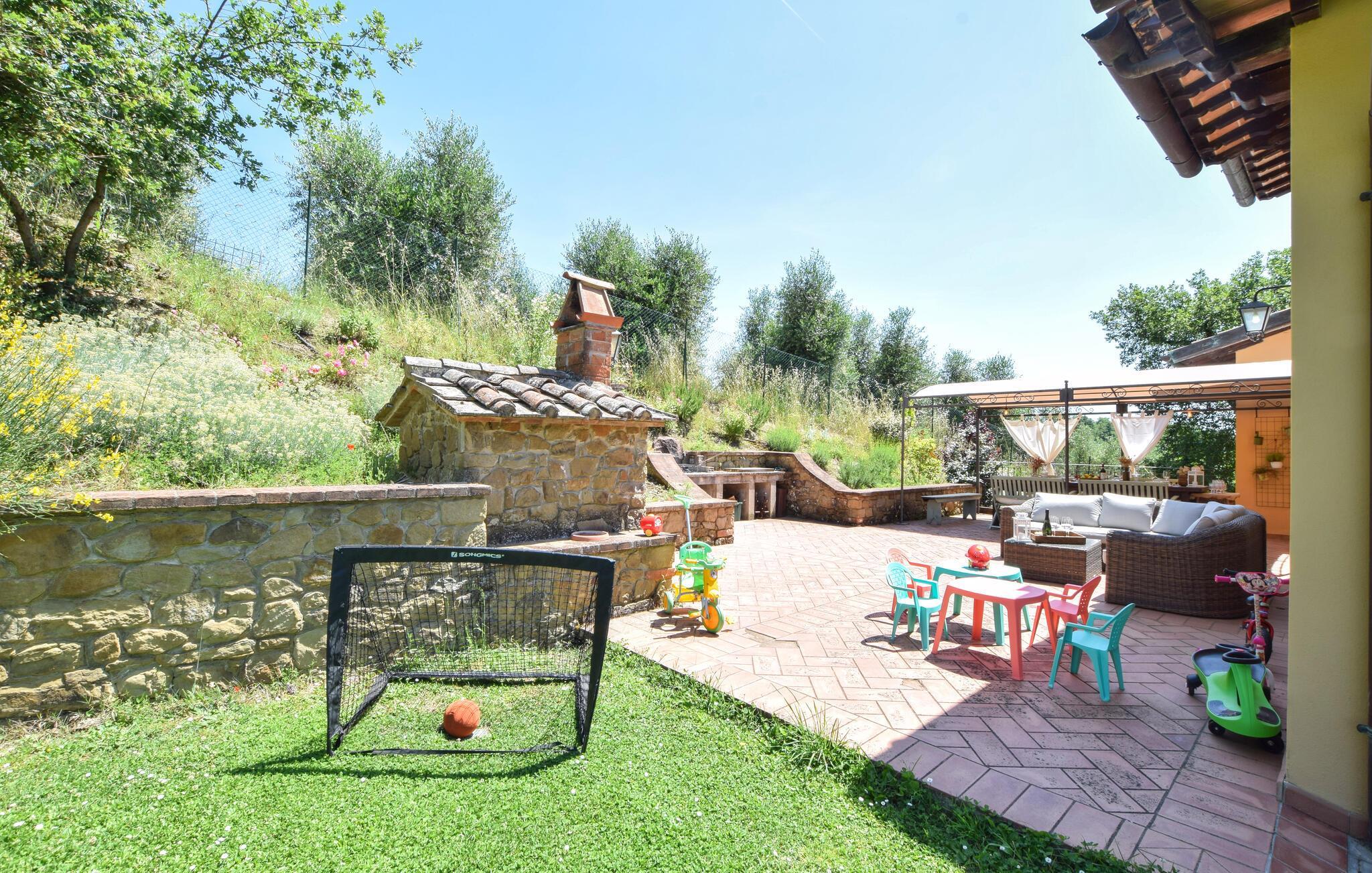 Freuen Sie sich auf diese freistehende Villa zwischen Wäldern und Olivenhainen, die Sie mit einer ansprechenden und klassischen Einrichtung empfängt und vielen den Raum für einen erholsamen Urlaub mit mehreren befreundeten Familien oder Ihrer Großfamilie verspricht. Fühlen Sie sich hier wie zuhause und genießen den Außenbereich, der zum Essen und Grillen auf der großen Terrasse einlädt. Ihre Kinder werden wahrscheinlich die meiste Zeit im und am Pool spielen, baden und den Garten mit Lachen erfüllen.