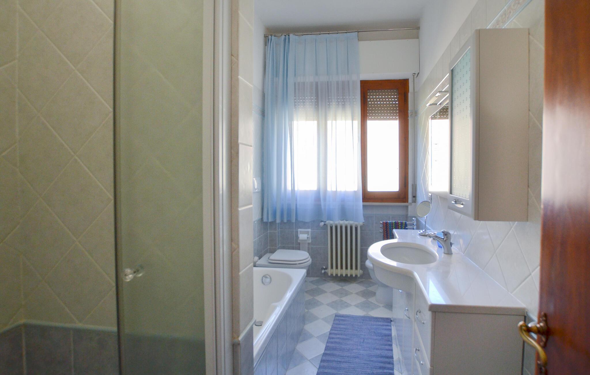 Badezimmer (nr. 1) - WC. Warmes und kaltes Wasser. Dusche und Badewanne