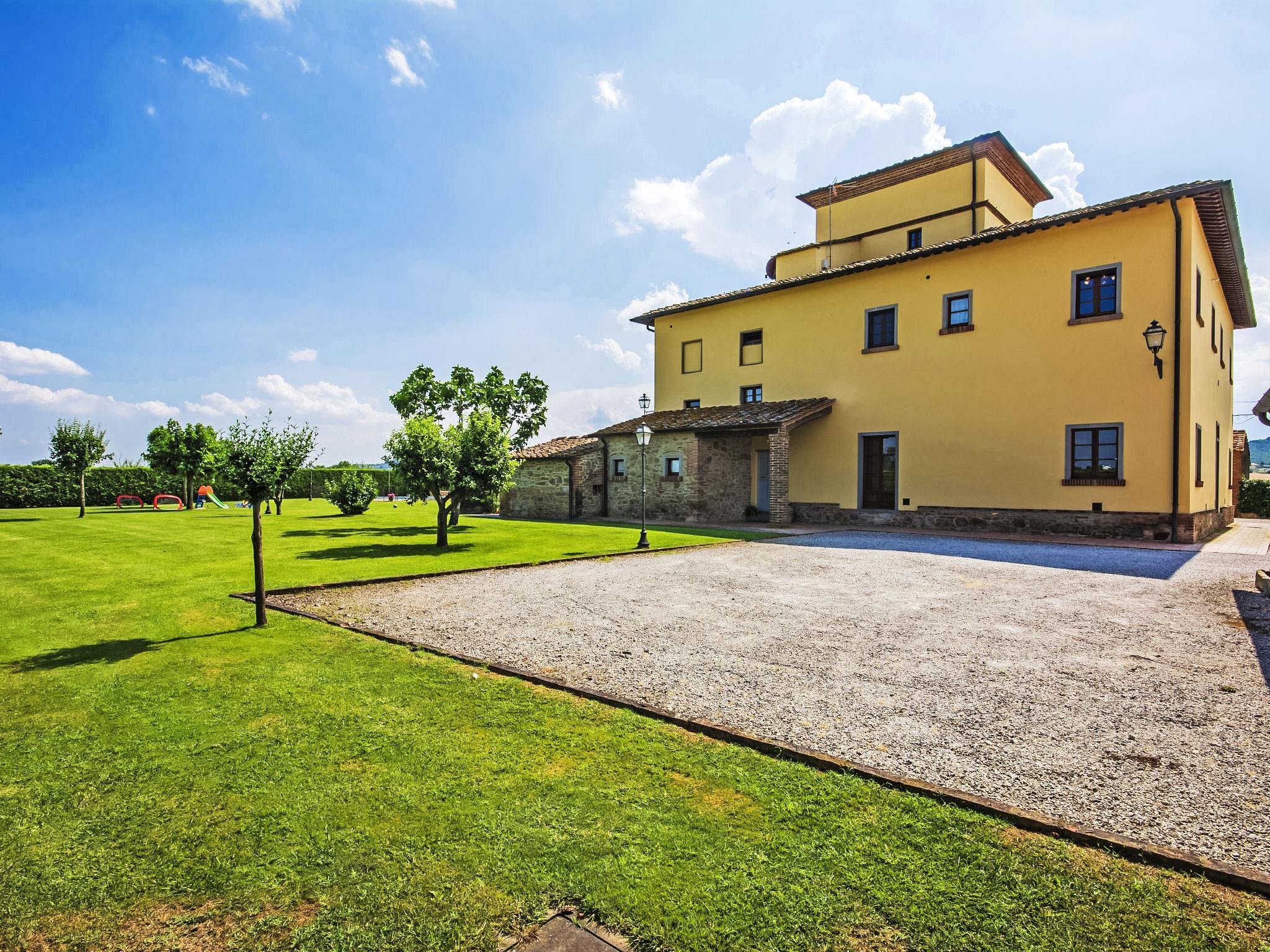 Landhaus im leopoldinischen Stil mit Taubenschlag, kürzlich restauriert. Grosse ausgestattete Aussenbereiche mit Holzofen und Gartenpavillon, einer Laube mit Grill und Pizzaofen sowie einem Arbeitsraum für Frühstück und Abendessen neben dem Schwimmbad, welches von Sonnenblumenfeldern umgeben ist. Das Anwesen befindet sich an abgeschiedener Lage, mit E-Gittertor. Reizvoll eingerichtete Räume, welche an den Charme eines Hauses aus vergangenen Zeiten erinnern, wie etwa das grosse Wohnzimmer mit Feuerstelle, der grosse Speisetisch, die Terracotta-Fussböden und die sehr hohen Decken mit Holzsichtbalken zeigen. Die Nähe zur Autobahn (3 km zur Autobahnzahlstelle, 800 m Luftlinie) bietet die ideale Ausgangslage für alle, die die Sehenswürdigkeiten der Toskana besuchen möchten. In der Nebensaison können auch Kurzaufenthalte von mind. 3 Nächten gebucht werden. Sehr grosse, schöne, komfortable Villa, Baujahr 1814, renoviert, umgeben von Wiesen. 3 km vom Zentrum von Monte San Savino, 7 km vom Zentrum von Lucignano, 80 km vom Zentrum von Firenze, sonnige Lage, im Grünen. Zur Alleinbenutzung: Grundstück 6 ha, Garten 2'000 m2 (eingezäunt) mit Rasen, Schwimmbad eingezäunt (6 x 12 m, 120 - 230 cm tief, saisonale Verfügbarkeit: 18.Mai. - 05.Okt.) mit Innentreppe. Aussendusche, Tischtennis, Laube, Gartenmöbel, Grill, Kinderspielplatz (Rutschbahn). Im Hause: Tischtennis, Zentralheizung, Waschmaschine, Heizung vor Ort zu zahlen, Heizung nur verfügbar von 01.Nov. - 07.Apr.. Wohnungsreinigung möglich (extra). Koch möglich (extra). Parkplatz. Supermarkt 3 km, Einkaufszentrum 12 km, Bushaltestelle 4 km, Bahnstation "Monte San Savino" 3 km, Thermalbad "Serre di Rapolano" 34 km. Reitstall 12 km. Nahe gelegene Sehenswürdigkeiten: Arezzo 12 km, Montepulciano 33 km, Pienza 39 km, Siena 40 km, Cortona 42 km, Montalcino 46 km. Geeignet für Events.