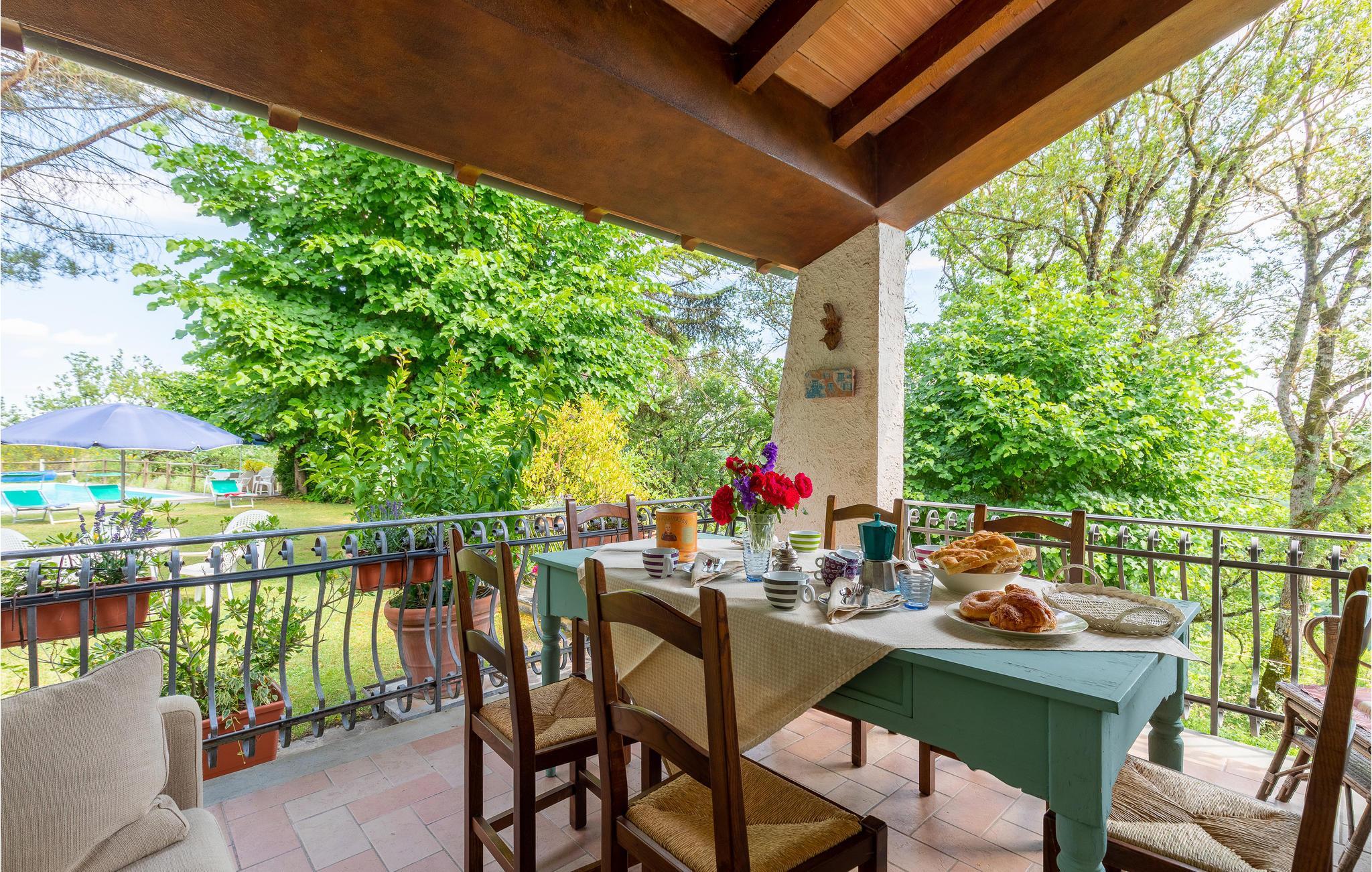 In der Nähe von Monte S. Maria in Tiberina (5 km) liegt dieses Landhaus in ruhiger Hügellage mit Pool. Vor dem oberen Wohnraum mit Küche liegt eine überdachte Terrasse, ein weiterer überdachter Terrassensitzplatz mit Grill befindet sich auf dem gepflegten Gartengrundstück. Die Einrichtung ist gemütlich-rustikal, die Bäder sind einfach (mit offenen Duschen). Ideal für Urlauber, die Ruhe und die Nähe zur Natur suchen; entdecken Sie die kleinen malerischen Hügelstädte der Umgebung: Monterchi und Citerna (20km), Città di Castello (11km). Weitere empfehlenswerte Ausflugsziele erreichen Sie innerhalb einer Stunde Fahrt: Cortona und Castiglion Fiorentino (etwa 40km), Arezzo, Perugia und Assisi (etwa 60km). Geschäfte im Ortsteil San Secondo (5km), Ristorante mit Panoramablick in Monte Santa Maria Tiberina.