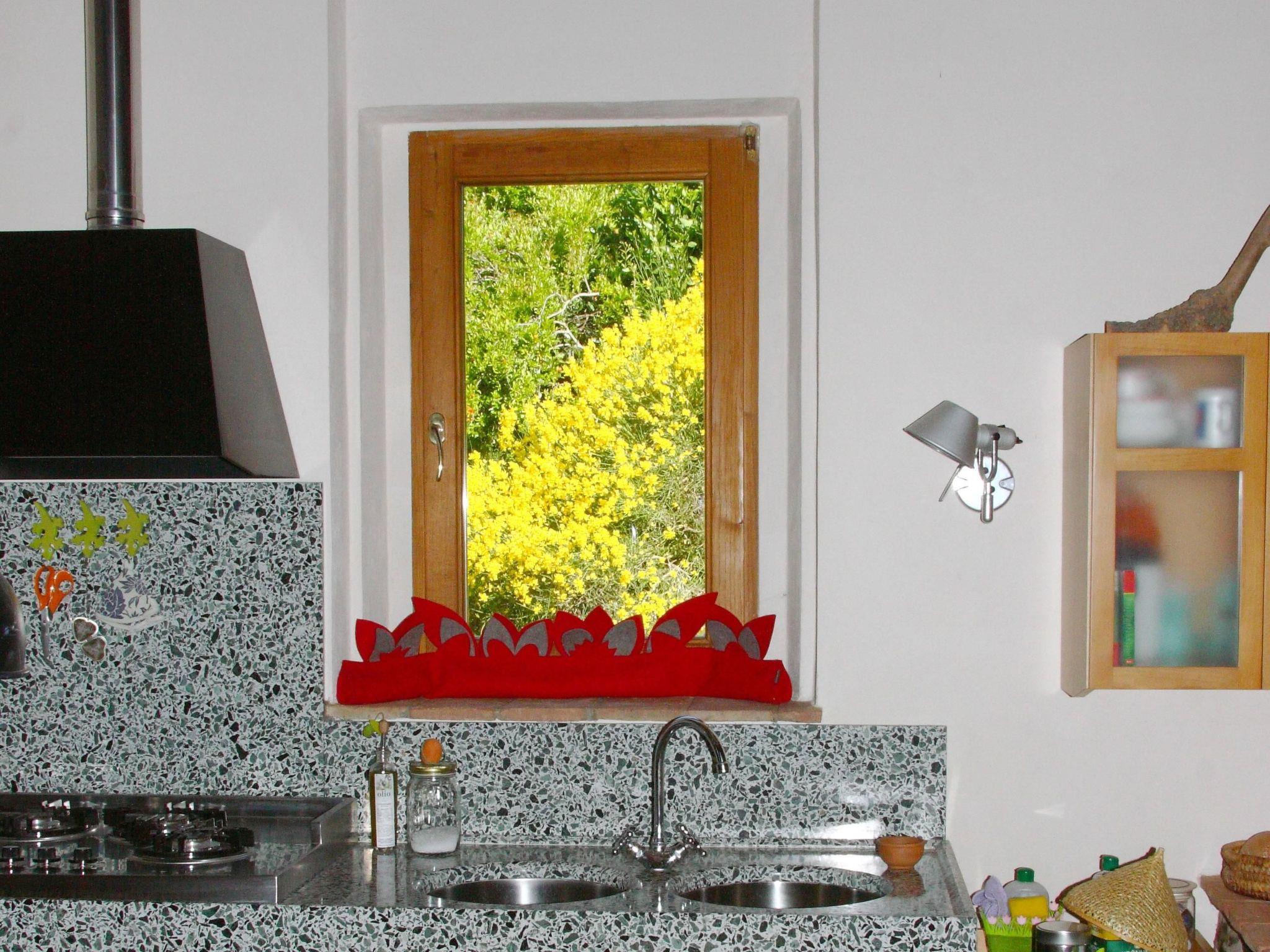 Für zwei Personen empfiehlt der Anbieter diese Ferienwohnung, deren Steinmauern im Sommer angenehme Kühle bieten. Gemütlichkeit erzeugt auch der Fußboden aus warmen Terrakotta und die Zimmerdecke mit uralten Holzbalken. Vorhanden sind ein Doppelbett (Maße: 1,4 m mal 2 m) und ein Sofa, das aus vier handgefertigten Matratzen besteht und sich als Einzelbett (1 m mal 1,9 m) verwenden lässt.