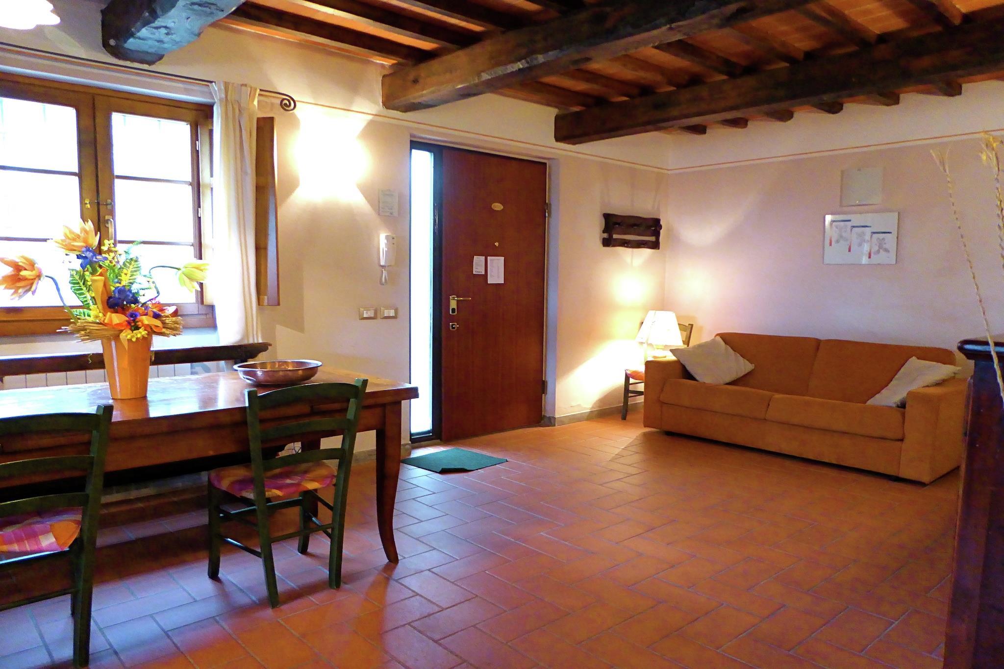 Barberino di Mugello Was für ein strategischer Ort! Borgo Montecarelli liegt etwas außerhalb von Barberino di Mugello, der Hauptstadt der Region Mugello, einer prachtvollen Berglandschaft, wo die Medici-Familie früher viele Schlösser besaß. Sie sind nur 12 km von der A1 entfernt untergebracht, wodurch sie ganz einfach viele Ausflüge machen können. Bewundern Sie zum Beispiel Kunst und Kultur in der Hauptstadt der Toskana, Florenz (40 km). In die entgegengesetzte Richtung geht es nach Bologna (90 km) mit der gemütlichen Altstadt, die viele Restaurants und Bars zu bieten hat. Möchten Sie keine Stadt besichtigen? Fahren Sie in diesem Fall doch an den See von Bilancino (7 km). Dort können Sie schön entspannen oder eine Bootstour machen. Sportliche Urlauber können in diesem Gebiet auch wunderbar wandern und Rad fahren. Wenn Sie abends essen gehen möchten, lassen Sie das Auto ruhig stehen, denn nur 500 m entfernt gibt es ausgezeichnete Restaurants (auch zum Mittagessen geöffnet). Einkäufe, Post und Bank in Barberino di Mugello (6 km). Borgo Montecarelli Im Borgo Montecarelli können Sie im tollen gemeinschaftlichen Schwimmbad (12 x 6 m, Tiefe 1,10 - 2,20 m) mit Liegestühlen schöne Stunden verbringen. Neben dem Schwimmbad gibt es einen Grill sowie einen Pizzaofen, damit Sie abends herrliche italienische Delikatessen genießen können. Der antike Borgo (Weiler) besteht aus 11 Ferienwohnungen, von denen wir 9 anbieten. Die Ferienwohnungen sind attraktiv und komfortabel eingerichtet, mit den für diese Region typischen Holzbalkendecken und Terrakottafußböden. Alle Ferienwohnungen verfügen über einen Safe. Tischfußball. Brotservice.