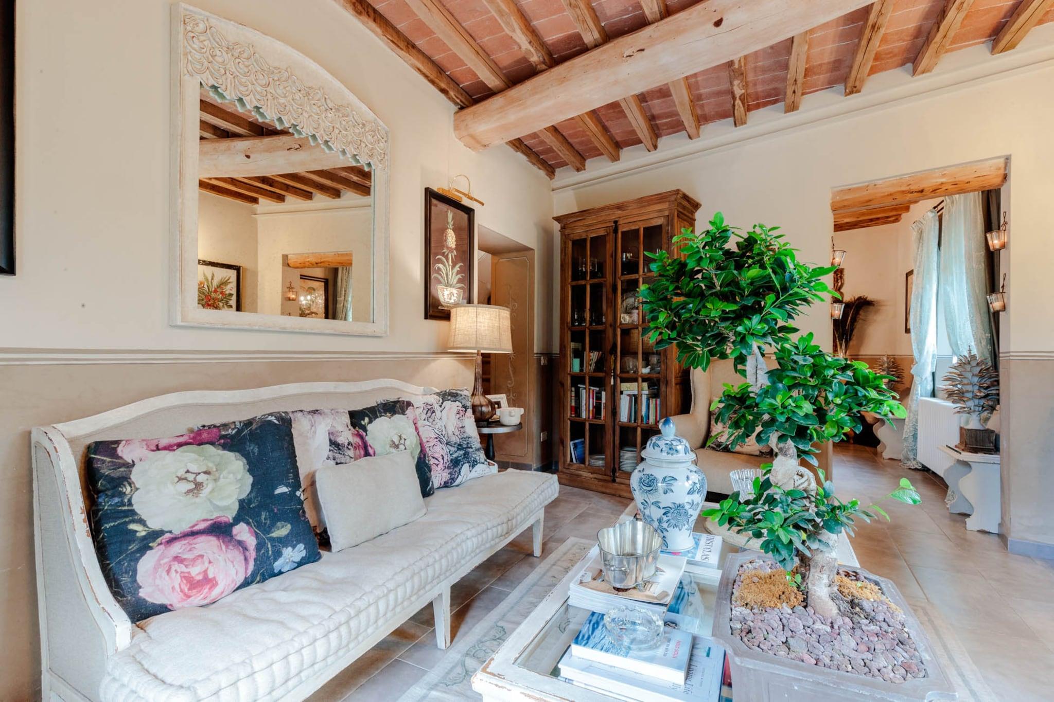 Erleben Sie die perfekte Mischung aus historischem Charme und modernem Luxus in der Villa Gianna, einer wunderschön restaurierten toskanischen Villa in der Nähe von Montecarlo. Dieses elegante Anwesen besticht durch traditionelle Steinmauern, Balkendecken und Terrakottaböden, ergänzt durch moderne Möbel und hochwertige Ausstattung. Gäste können im privaten Garten entspannen oder den Panoramablick auf die umliegenden Hügel und die mittelalterliche Architektur, darunter eine Kirche aus dem 10. Jahrhundert, genießen. Die Villa erstreckt sich über 160 m² und bietet drei komfortable Doppelzimmer, eine voll ausgestattete Küche mit zentraler Kochtheke und einen Essbereich für sechs Personen. Im Außenbereich laden der private Pool, die Pergola und die Terrasse zum Sonnenbaden, Essen im Freien oder zum Genießen der Ruhe der gepflegten Gärten ein. Jeder Winkel des Anwesens spiegelt durchdachtes Design wider und bietet Komfort und Stil für Familie und Freunde. Die erstklassige Lage der Villa Gianna ermöglicht eine gute Anbindung an die Highlights der Toskana, darunter Lucca, Pisa, Florenz, Pistoia, Montecatini Terme, Cinque Terre und San Gimignano. Das nahe gelegene Montecarlo bietet charmante Geschäfte, lokale Märkte, Restaurants und Weingüter, die wertvolle Weine und Olivenöle produzieren. Mit WLAN, Klimaanlage und kompletter Küchenausstattung ist die Villa Gianna der ideale Rückzugsort für einen romantischen Ausflug, einen Familienurlaub oder einen Gruppenausflug im Herzen der Toskana.