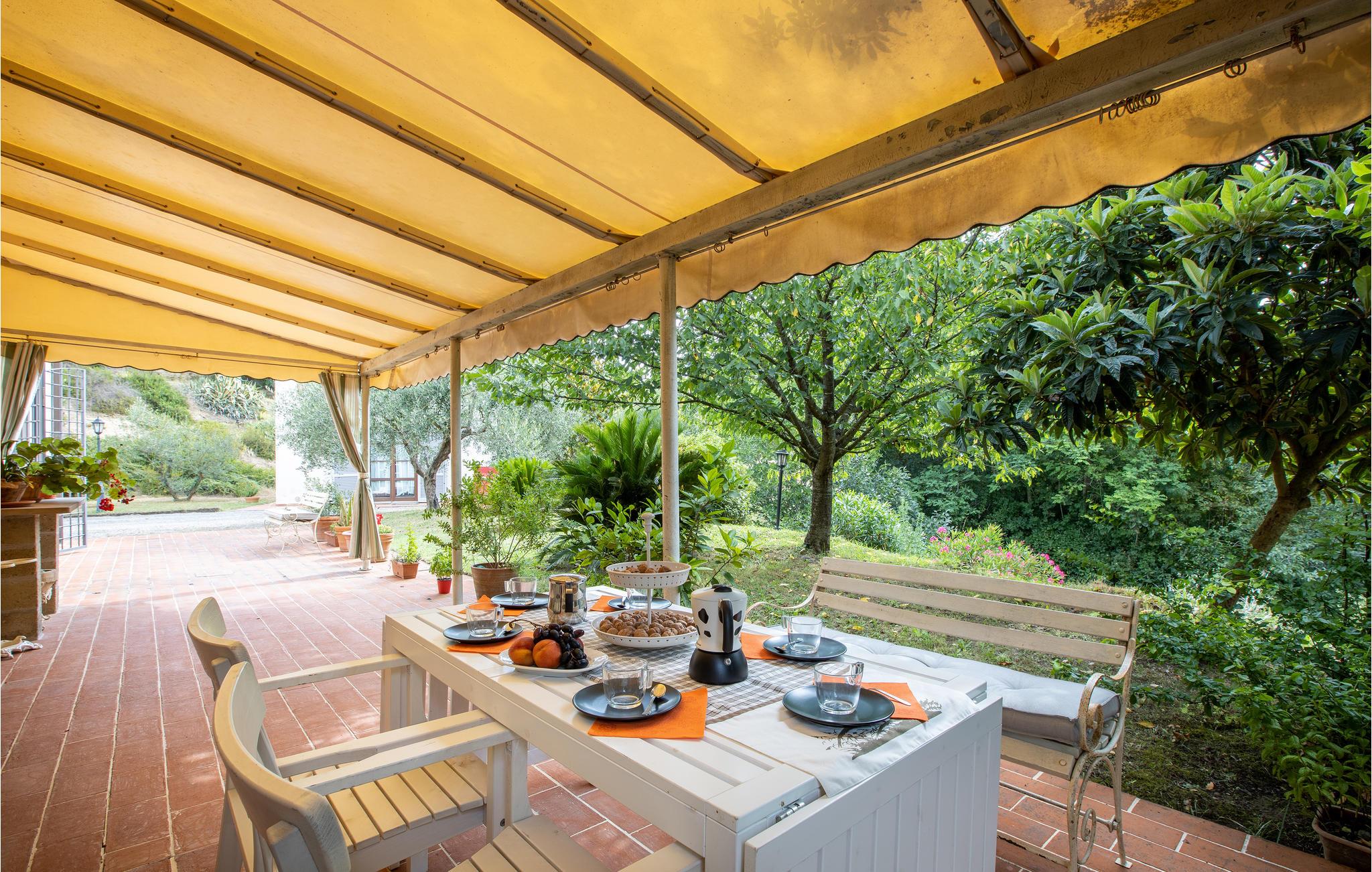 Genießen Sie herrliche Stunden im Freien auf der Terrasse, ob Sie im Schatten ein Buch lesen oder den Blick in den Garten genießen, die Urlaubsentspannung ist Ihnen sicher.