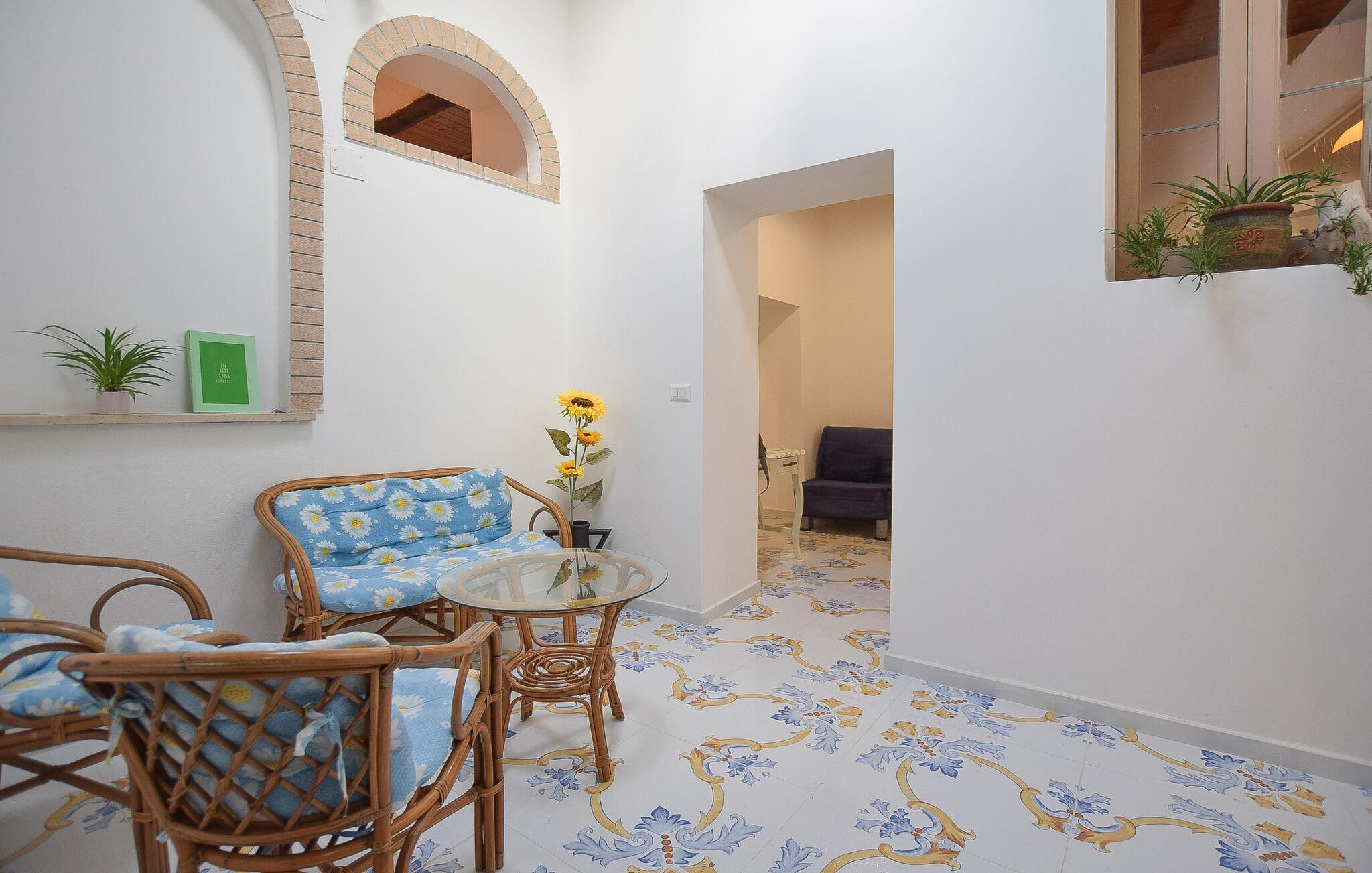 Draußen erwartet Sie eine großzügige Terrasse mit spektakulärem Blick auf die sanften Hügel und das tiefblaue Meer. Beginnen Sie den Tag mit einem Frühstück in der Morgensonne und lassen Sie den Abend bei einem Glas Wein unter den Weinreben ausklingen.