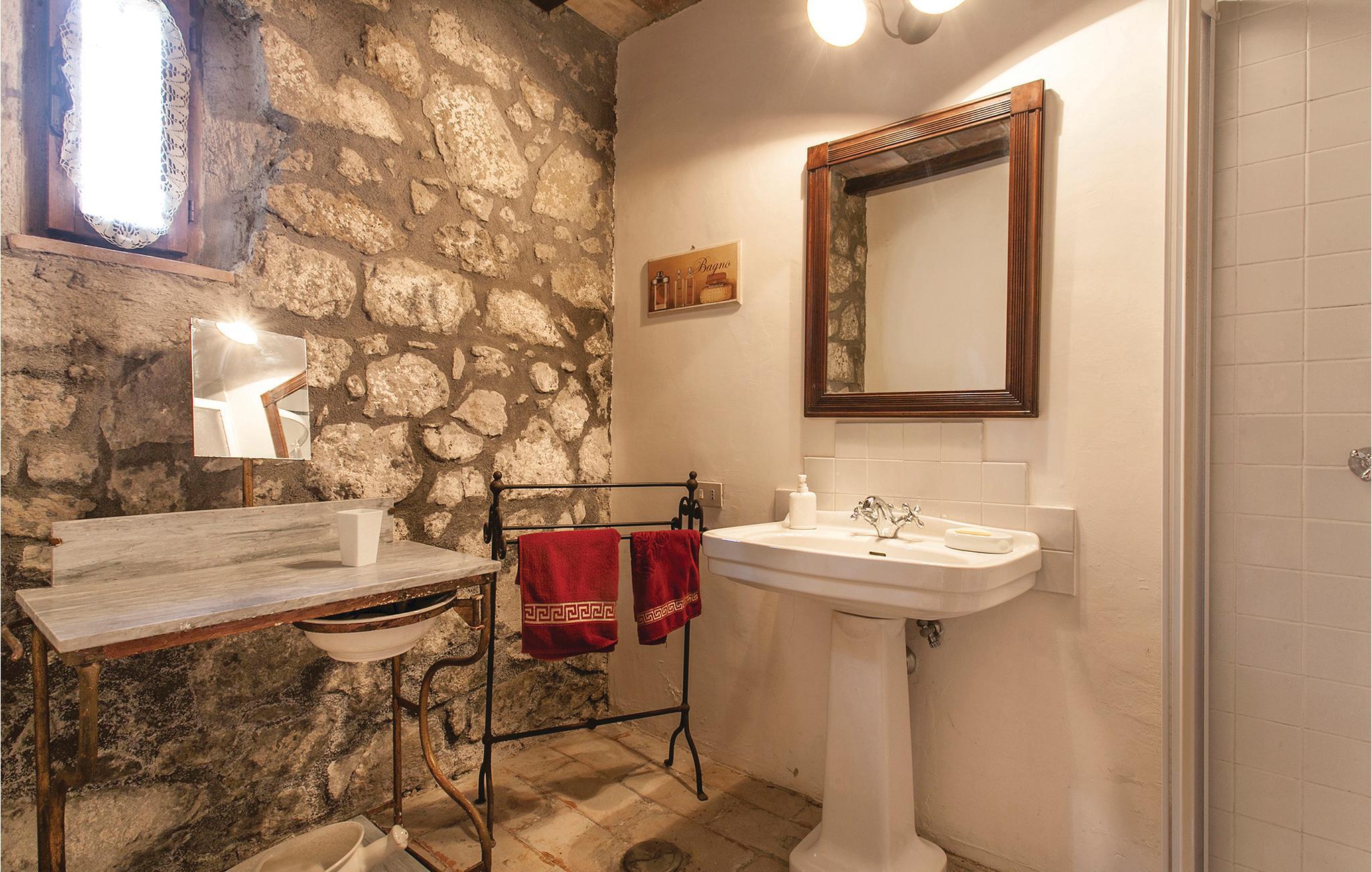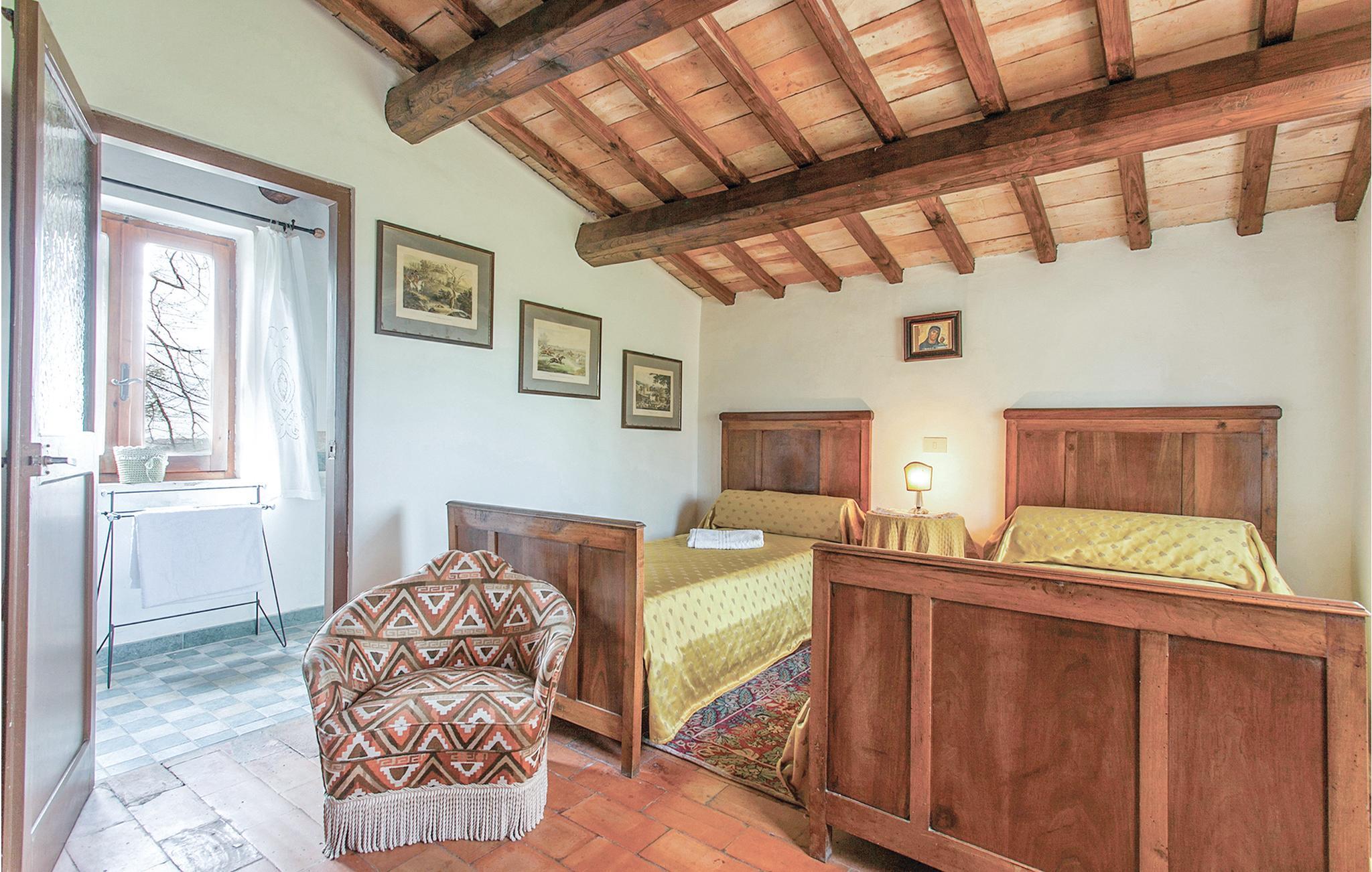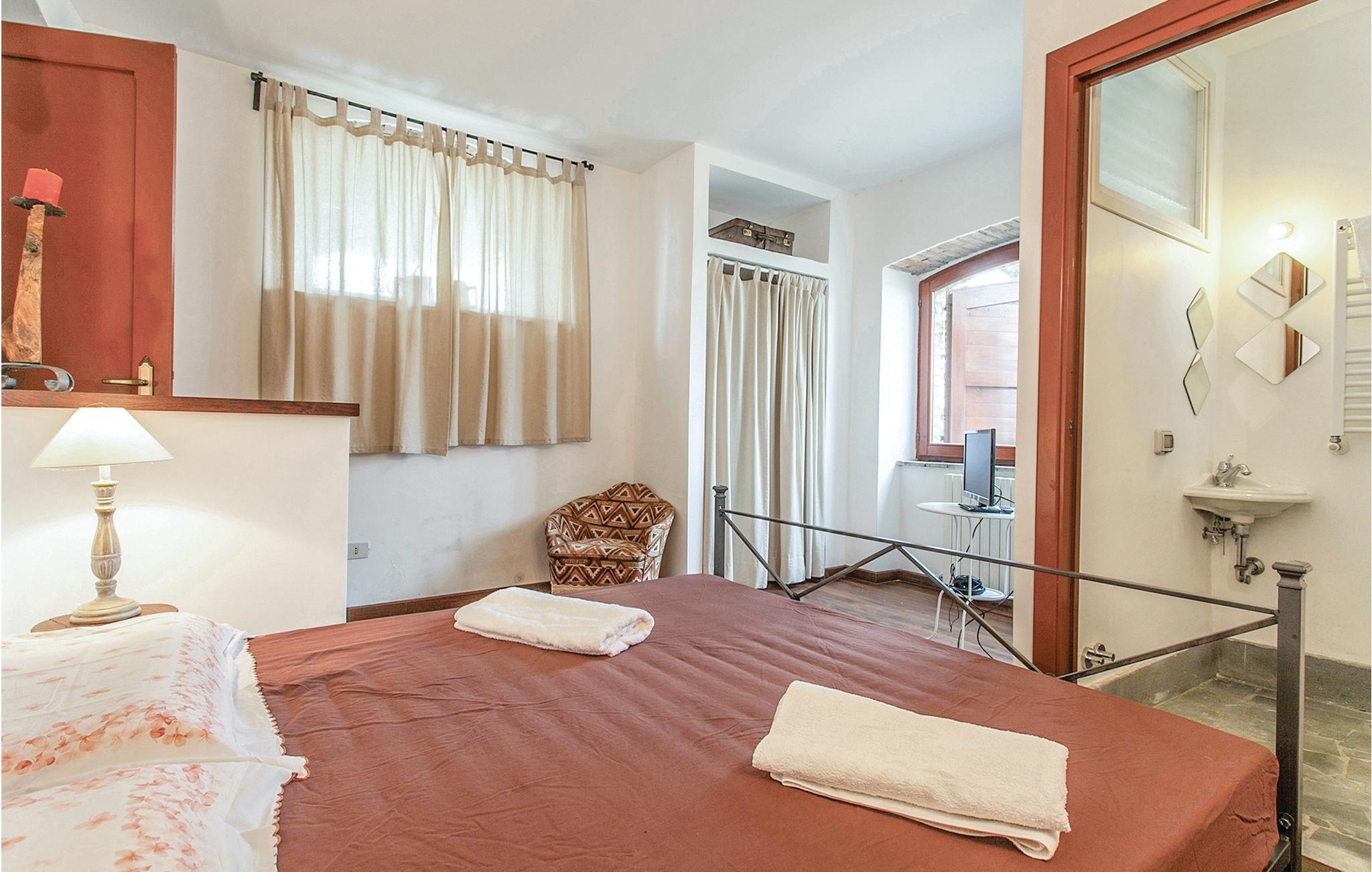 Ferienhaus, ein ehemaliges Bauernhaus in Hügellage. Es befindet sich in der schönen Gegend Tusziens, in der Provinz Latium und unweit des Lago di Bolsena (nur 500 m Luftlinie) und 2 km von Montefiascone. Das Ferienhaus liegt auf einem Hügel und auf dem gleichen Gut befindet sich auch eine Dependance (gelegentlich vom Besitzer bewohnt) und ein weiteres Bauernhaus in etwa 300 m Entfernung. Der große Außenbereich ist ideal für entspannende Momente und um Mahlzeiten im Freien einzunehmen. Die Gegend ist berühmt für seine Weinproduktion, der bekannteste Wein ist „Est Est Est“, aber auch für seine Nähe zum malerischen Lago di Bolsena, dem größten Kraterbecken Italiens, umgeben von Wäldern, Weinbergen und Olivenhainen. Die Nähe zum See macht diese Unterkunft ideal für Sportbegeisterte: es gibt die Möglichkeit zum Segeln, Angeln, Bootfahren, Gleitschirmfliegen, Wandern, Reiten und Mountainbiking. Der Lago di Bolsena ist auch zum Schwimmen geeignet und zählt zu den saubersten Seen Italiens. Seine Strände sind nur 1 km vom Haus entfernt und in Bolsena ist auch ein touristischer Hafen. Wunderschön und beeindruckend ist der Eichenpark direkt über dem See. Nicht zu versäumen ein Besuch von Montefiascone, wo sie die schöne Aussicht auf den See und die herrlichsten Sonnenuntergänge genießen können. In den viele Restaurants können Sie die kulinarischen Köstlichkeiten der Region probieren, wie Gerichte von Süßwasserfischen wie dem „Sbroscia“. Ideale Lage um sowohl Umbrien, Latium und die Toskana zu besuchen. Rom ist 117 km entfernt und gut mit dem Zug verbunden. Das Haus erstreckt sich über 2 Etagen die nicht intern miteinander verbunden sind, nur über Außentreppe.