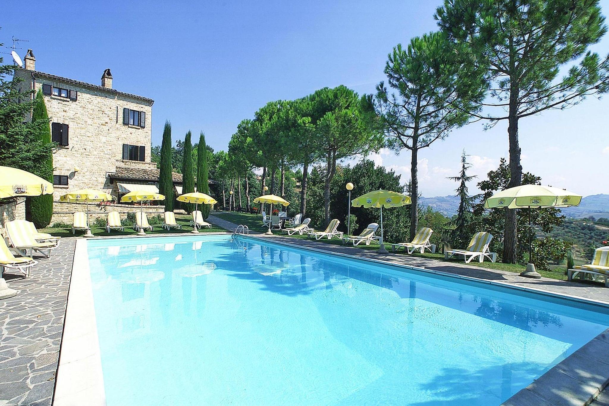 Das inmitten der sanften Hügellandschaft der Marken gelegene Residence Hotel La Ginestra ist ideal, um einen entspannenden Urlaub zu verbringen, in welchem auch zahlreiche Sportaktivitäten möglich sind. Gäste, die ihren Urlaub in intensivem Kontakt mit der Natur verbringen möchten, entdecken hier herrliche Ausblicke und Landschaften und dabei die Ruhe und den Frieden, den dieser Ort ausströmt. Der hier gebotene gewissenhafte und pünktliche Service ist stets von einer familiären, den Privatbereich des Gastes respektierenden Atmosphäre gekennzeichnet. Das Restaurant mit einer sehr guten einheimischen Küche rundet das Angebot ab. Die Appartements sind verfügen über eine einfache, aber gepflegte Einrichtung und einen Gartenanteil, teilweise auch über einen Kamin. Für die Anlage gilt: - 12 Wohneinheiten - 4 Gebäude - Rezeption - WLAN im Rezeptionsbereich - Frühstücksraum - Restaurant - Snack-Bar - Bar - Waschmaschine - Parkplatz in 50 m Aktivitäten in der Nähe : Viele Wald-und Wanderwege stehen den Gästen für Spaziergänge, Jogging und Mountainbike-Touren zur Verfügung Mobilität : Nicht geeignet für Personen mit eingeschränkter Mobilität