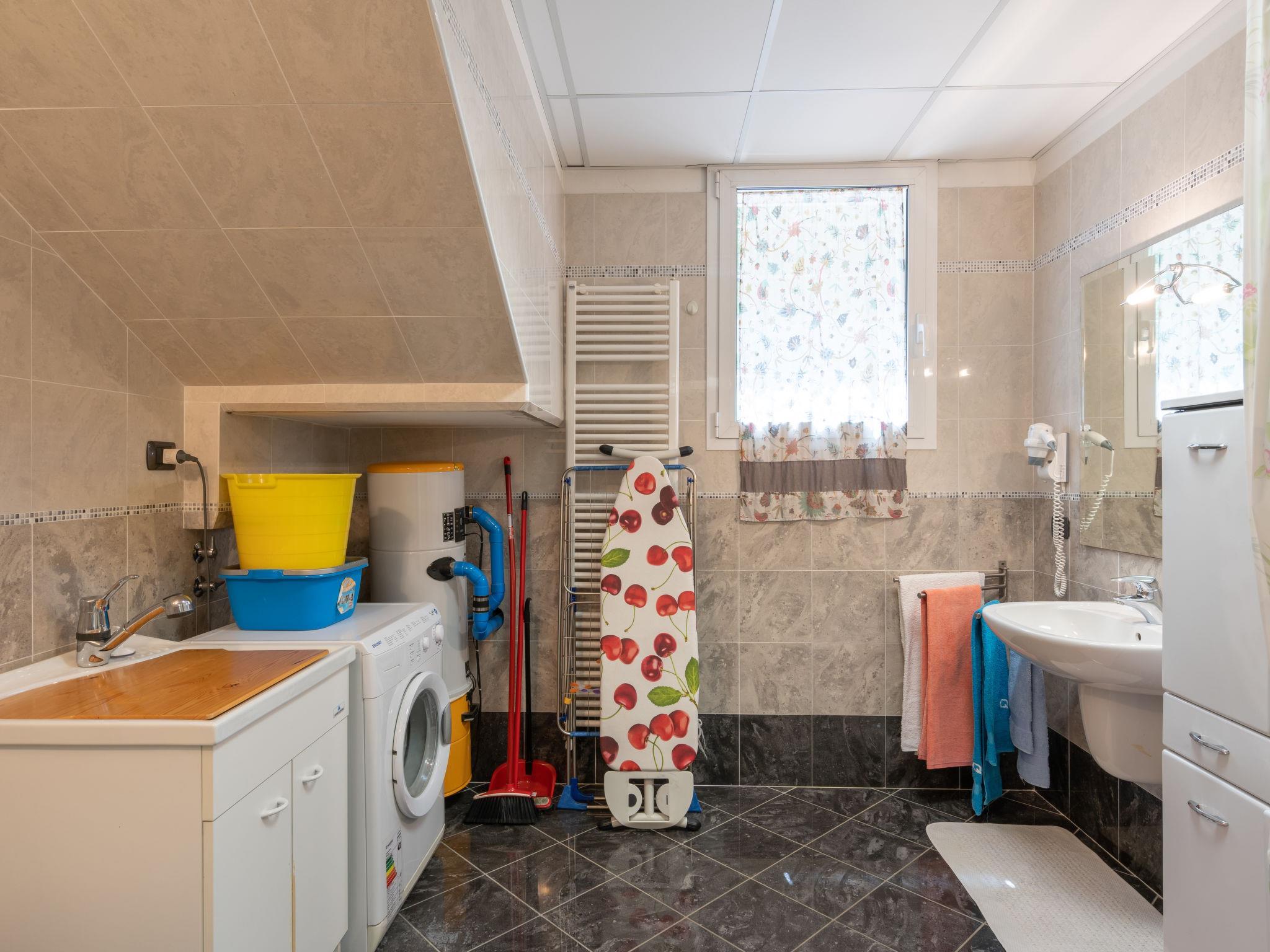 "La Rosa per 9 pax", 5-Zimmer-Doppelhaushälfte 200 m2 auf 2 Stockwerken, im Erdgeschoss. Eingang. 2 Doppelzimmer, jedes Zimmer mit Dusche/Bidet/WC, Digital-TV und Klimaanlage. Küche (5 Kochplatten, Backofen, Geschirrspüler, Mikrowelle, Tiefkühler) mit Esstisch, Digital-TV und Klimaanlage. Dusche/Bidet/WC. Obergeschoss: grosses Wohnzimmer mit Digital-TV. Ausgang zur Terrasse. 1 Doppelzimmer mit Dusche/Bidet/WC und Klimaanlage. 1 Zimmer mit 3 Betten, Digital-TV und Klimaanlage. Dusche/Bidet/WC. Terrassenmöbel, Gartengrill. Panoramasicht auf die Landschaft. Zur Verfügung: Waschmaschine. Internet (WLAN, gratis). Geeignet für Familien. Maximal 2 Haustiere/Hunde erlaubt. IT048028B4MRCE4JE3