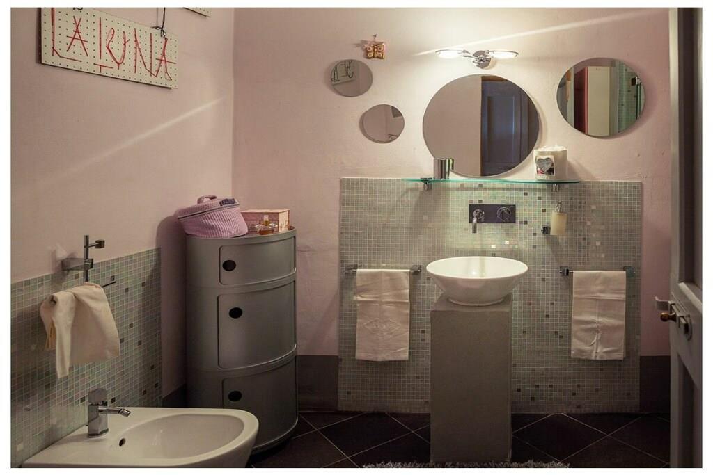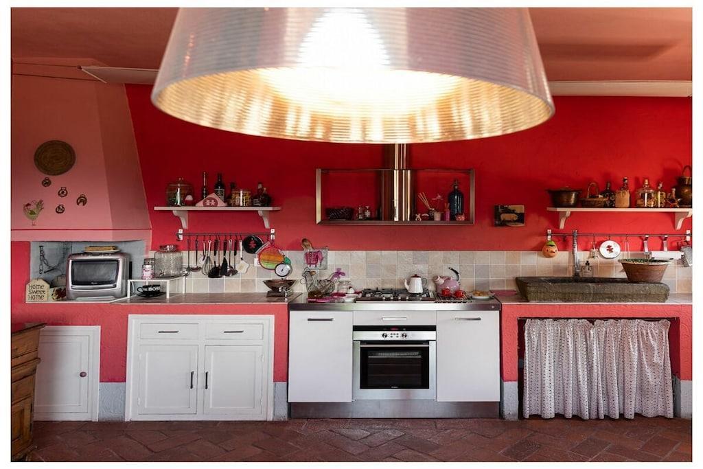 Es bietet Platz für bis zu 11 Personen, hat 6 Schlafzimmer und 6 Bäder. Umgeben von einem privaten Garten mit Rasen und verschiedenen Pflanzen, genießt das Anwesen eine Panoramalage und eine große Terrasse mit Grill und Esstisch für 12 Personen. Im Außenbereich finden Sie einen schönen Pool (7,3 x 3,3 m, Tiefe 1,4 m), der von Mai bis September geöffnet ist. Der Pool ist ausgestattet mit: Hydromassagebereich (direkt an der Eingangstreppe), Sonnenliegen, Außendusche und Hängematte. Zur Verfügung der Gäste steht auch ein privater Parkplatz mit 4 überdachten und 4 nicht überdachten Stellplätzen. Neben der Villa Botinaccio befindet sich eine weitere Villa, "Casina Botinaccio", die denselben Eigentümern gehört und ebenfalls von Touristen gemietet werden kann. Die Gärten und Pools der beiden Häuser sind weit voneinander entfernt und nicht einsehbar, um die größtmögliche Privatsphäre zu gewährleisten. Größere Gruppen können beide Häuser gemeinsam mieten. Innere Beschreibung Die komplett restaurierte Villa Botinaccio mit ihren Terrakottaböden und Decken aus Altholz erstreckt sich über 2 Etagen und kann bis zu 11 Personen beherbergen. Sie verfügt über 6 Schlafzimmer und 6 Badezimmer. Internet Wifi ist nur im Wohnbereich und in einigen an die Villa angrenzenden Außenbereichen verfügbar. Haustiere sind nur auf Anfrage erlaubt (gegen Aufpreis). Ein Kinderbett und ein Hochstuhl sind auf Anfrage erhältlich. Es gibt keine Klimaanlage, aber die Wände des Hauses sind sehr dick und halten alle Räume natürlich kühl. Alle Schlafzimmer haben Deckenventilatoren. Erdgeschoss: Das Erdgeschoss besteht aus zwei Wohnzimmern mit Sofas und einer großen Küche, gekennzeichnet durch schöne Bogenfenster, die einen herrlichen Blick auf das umliegende Tal bieten. Die Küche ist ausgestattet mit: Kühlschrank, Backofen, Herd, Mikrowelle, Toaster, Geschirrspüler, Wasserkocher, Kaffeemaschine, und Esstisch für 6 Personen. Es folgen zwei Doppelschlafzimmer (eines davon mit einem separaten Ankleidezimmer und einem geräumigen Bad mit Dusche) und ein Durchgangszimmer/Arbeitszimmer, das das Erdgeschoss mit dem ersten Stock verbindet (mit Einzelbett und Schreibtisch). Schließlich gibt es noch ein Badezimmer mit Dusche und eine Toilette. Erster Stock: Im Obergeschoss befinden sich zwei Wohnzimmer mit Sofas und Kamin, eine Toilette und eine helle Küche mit Panoramaterrasse (mit Sofa und Stühlen). Die Küche ist ausgestattet mit: Kühlschrank, Backofen, Herd, Toaster, Geschirrspüler, Kaffeemaschine und Esstisch für 4 Personen. Der Schlafbereich besteht aus: einem Schlafzimmer mit Doppelbett und eigenem Bad mit Dusche, einem weiteren Schlafzimmer mit Doppelbett, einem Schlafzimmer mit zwei Einzelbetten und einem Bad mit Dusche. Preise und Konditionen Im Preis inbegriffen: Haus-, Pool- und Gartenpflege; Wasserverbrauch; Brennholz (1 Korb); wöchentlicher Wechsel der Bettwäsche und Handtücher; Internet Wifi; Babybett und Hochstuhl (auf Anfrage); private Nutzung des Pools (einschließlich des Hydromassagebereichs).