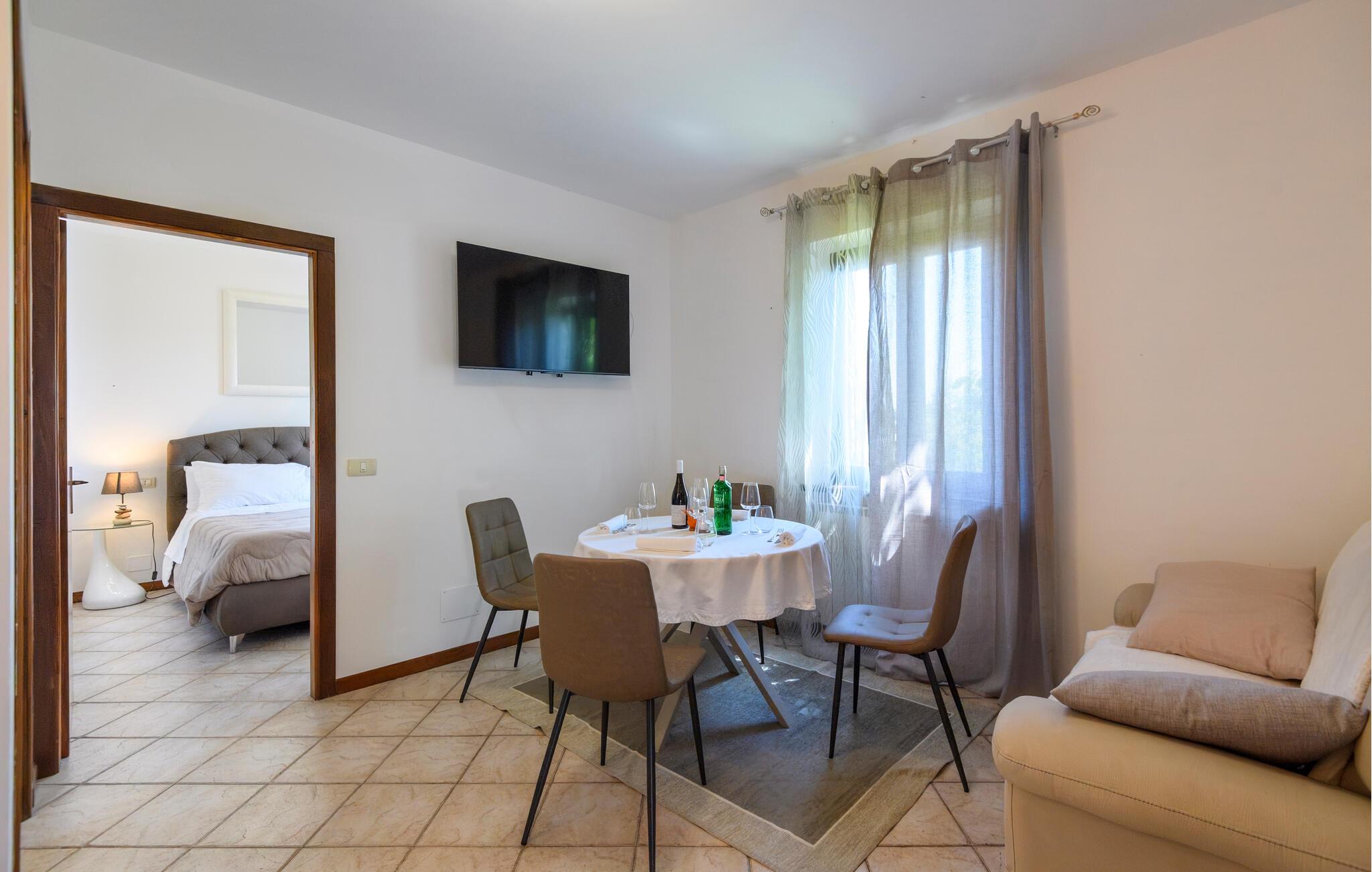 Freuen Sie sich auf diese praktisch eingerichtete Ferienwohnung mit Zugang zu Pool und Sauna.