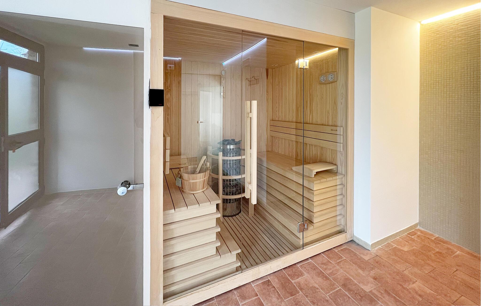 Freuen Sie sich auf einen herrlichen Urlaub in dieser Ferienwohnung mit Zugang zu Pool und Sauna.