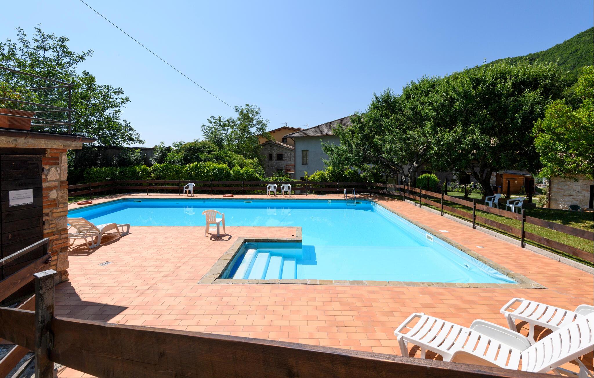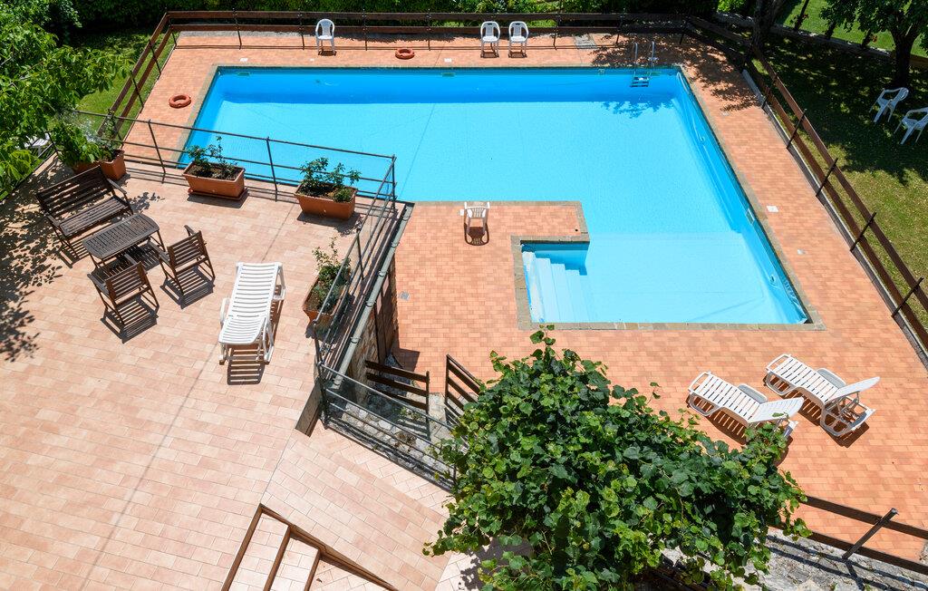 Genießen Sie nach einer Erfrischung im mit anderen Gästen geteilten Pool die Sonne auf der Terrasse, vielleicht verbringen Sie hier auch laue Sommerabende mit kalten Getränken vor zauberhafter Kulisse.