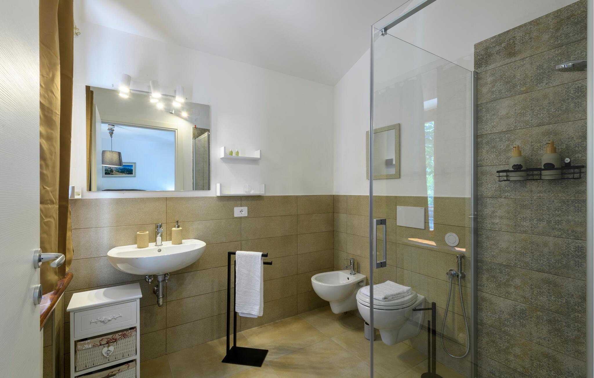 Badezimmer (nr. 1) - WC. Warmes und kaltes Wasser. Dusche