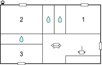 Badezimmer (nr. 3) - WC. Warmes und kaltes Wasser. Dusche