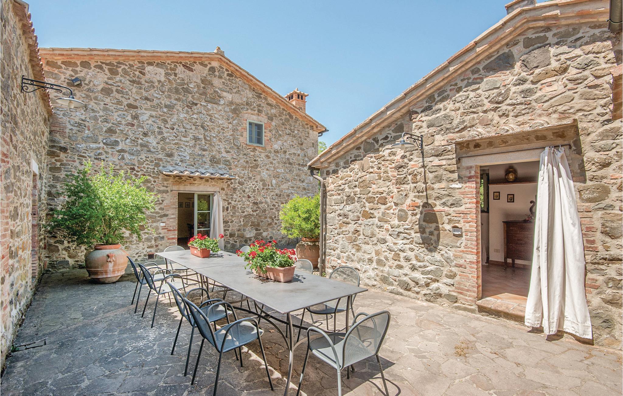 Authentisches Bauernhaus für Ferien aus dem Jahr 1600, 5 km von Sarteano und 10 km von Chianciano Terme entfernt. Ursprünglich ein Kloster, besteht es jetzt aus drei Wohneinheiten mit privatem Pool. Das Gut liegt auf 600 m ü.d.M. und ist von der wunderschönen Landschaft des Val d'Orcia umgeben, sie haben Blick über die typischen Crete Senesi bis hin zum Monte Amiata: die Aussicht ist wunderbar. Die beiden Einheiten sind von einer weitläufigen Grünfläche umgeben und bieten Privatsphäre und Ruhe, der Swimmingpool mit Blick auf das Val d'Orcia runden dieses märchenhafte Angebot ab. Es ein ideales Ziel für diejenigen, die gerne zu Fuß oder mit dem Fahrrad unterwegs sind. Das erste Gebäude erstreckt sich ueber zwei Ebenen: im Erdgeschoss ist ein großer Wohnbereich bestehend aus Wohnzimmer mit Kamin, großem Esszimmer und einer Küche. Auf der ersten Etage befinden sich zwei Schlafzimmer - ein Doppelzimmer und ein Zweibettzimmer - und ein Badezimmer. Das zweite Gebäude besteht aus einem Wohnzimmer mit Kamin, einer kleinen Küche, zwei Doppelzimmer, ein Zweibettzimmer und ein gemeinsames Bad. Des weiteren gibt es eine Dependance – zugänglich über den Hof – mit einem Zweibettzimmer und Bad. Kunstliebhaber können hier eine Umgebung erkunden welche reich ist an Geschichte und Denkmälern mit Zeugnissen der Etrusker bis hin zur Renaissance, wie z.B. Chiusi, Pienza, Montepulciano und Montalcino, Siena (65 km) und Florenz (130 km). Für einen erholsamen Tag können Sie die Thermalwasser von Chianciano Terme oder San Casciano dei Bagni genießen. Runden Sie ihre erlebnisreichen Tage mit einem Gericht der lokalen traditionellen Küche ab – hier gilt das Motto: „mangiare bene e sano“, zu deutsch: „gut und gesund essen“ - begleitet von Weinen wie dem Brunello oder dem Nobile di Montepulciano. Für alle Shoppingliebhaber gibt es in 35 km Entfernung ein berühmtes Outlet-Center.