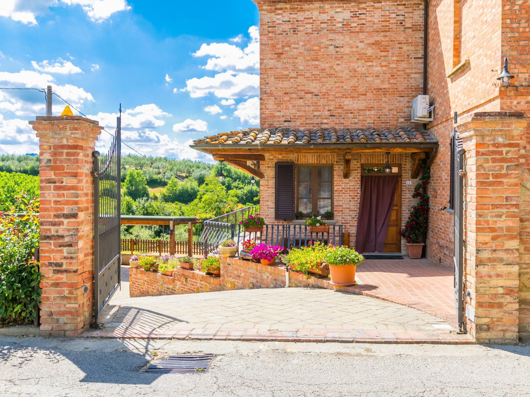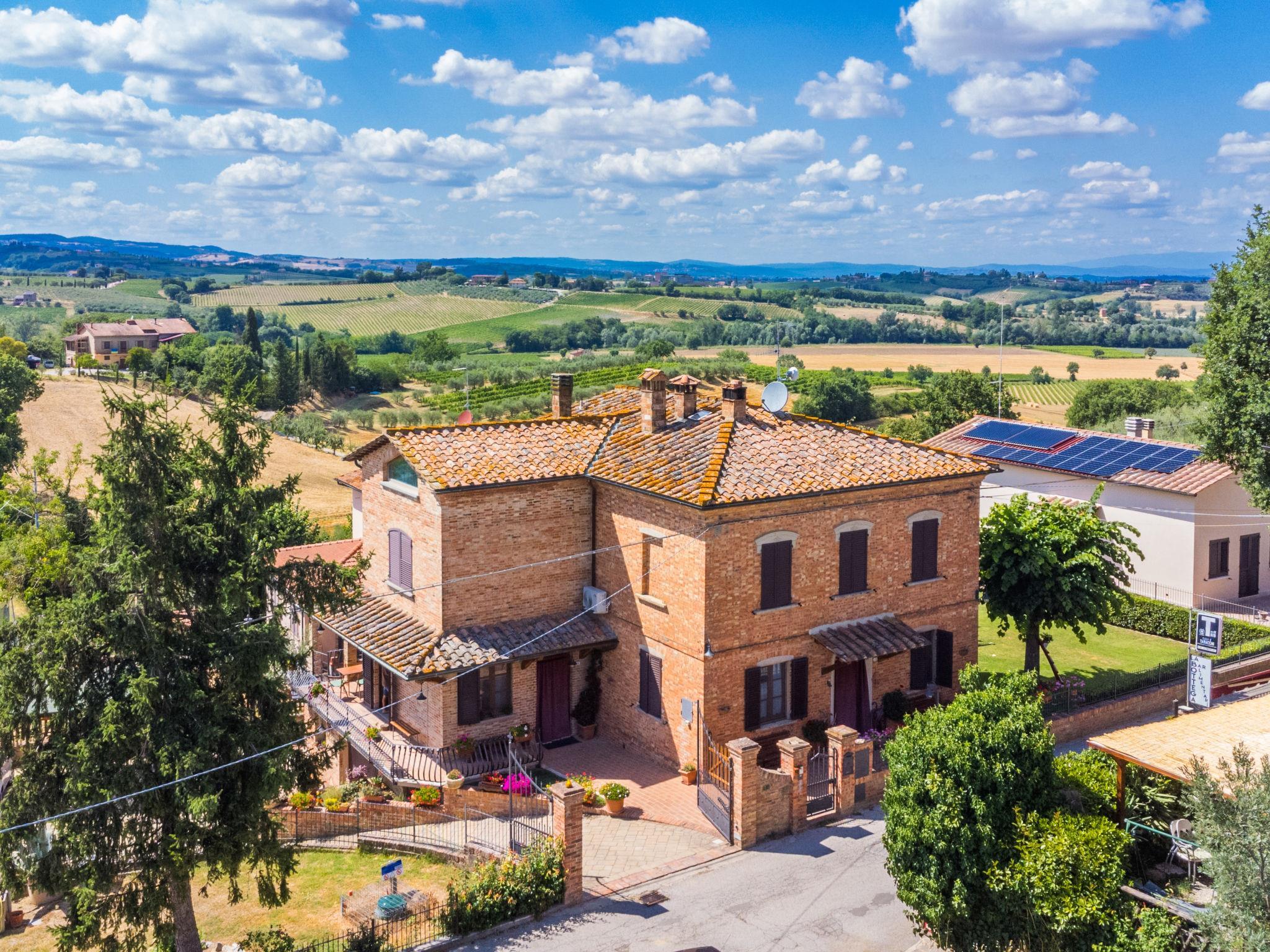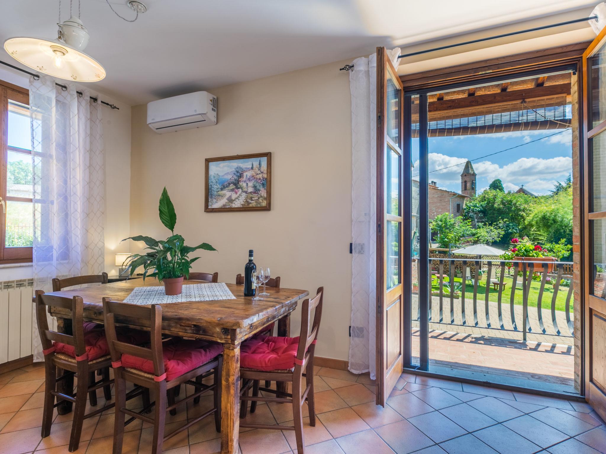 Montepulciano: Modernes, komfortables Zweifamilienhaus "Le rondini". 2 Wohnungen im Ferienhaus. Im Ortsteil Cervognano, 5.2 km vom Zentrum von Montepulciano, 16 km vom Zentrum von Chiusi, erhöhte Lage in einem Wohnquartier. Zur Mitbenutzung: Grundstück (eingezäunt), terrassierter Garten, Parkplatz (überdacht) beim Haus. Einkaufsgeschäft 5 km, Lebensmittelgeschäft 5 km, Supermarkt 5 km, Restaurant 50 m, Bushaltestelle "Acquaviva" 2.6 km, Bahnstation "Montepulciano Scalo" 5.2 km, Hallenbad 5.2 km, Thermalbad "Chianciano Terme" 16 km. Nahe gelegene Sehenswürdigkeiten: Montepulciano 5 km, Pienza 20 km, Cortona 26 km, Montalcino 41 km, Siena 70 km. Bekannte Seen in der Umgebung sind gut erreichbar: Montepulciano 9 km, Trasimeno 20 km. Bitte beachten: Fahrzeug empfohlen. Babyausstattung (inkl.). Objekt geeignet für 2 Erwachsene + 1 Kind. Der Besitzer wohnt im selben Haus. Eigentümer hat einen Hund.