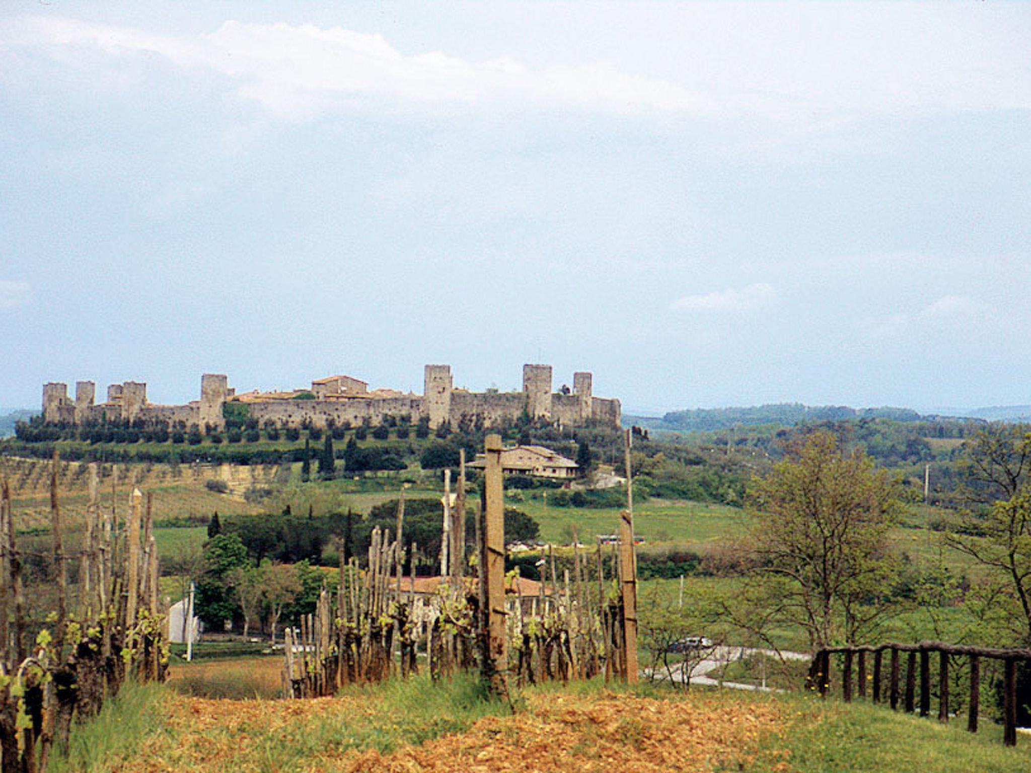 Monteriggioni: Rustikales, freistehendes Bauernhaus "Fattoria Petraglia", aus dem 15. Jahrhundert, umgeben von Bäumen, Wiesen und Weinbergen. 6 Wohnungen im Ferienhaus. 2.2 km vom Zentrum von Monteriggioni, 12 km vom Zentrum von Siena, 33 km vom Zentrum von San Gimignano, ruhige, sonnige Lage, 90 km vom Meer, im Grünen. Zur Mitbenutzung: naturbelassenes Grundstück 50 ha mit Pflanzen und Bäumen, Naturgarten, Wiese, Schwimmbad (10 x 5 m, saisonale Verfügbarkeit: 01.Mai. - 10.Okt.). Aussendusche, Pergola, Terrasse, Gartenmöbel, Grill, Poolpflege durch den Besitzer/Gärtner. Im Hause: Waschmaschine (zur Mitbenutzung, extra). 100 m lange Zufahrt (Naturweg). Parkplatz auf dem Grundstück. Lebensmittelgeschäft 2.2 km, Supermarkt 12 km, Bushaltestelle 2.2 km, Bahnstation "Siena" 12 km. Nahe gelegene Sehenswürdigkeiten: Castellina in Chianti 20 km, Radda in Chianti 24 km, Montalcino 45 km, Volterra 50 km, Firenze 70 km. Bitte beachten: Babyausstattung (inkl.). Alle Häuser/Wohnungen sind individuell eingerichtet.