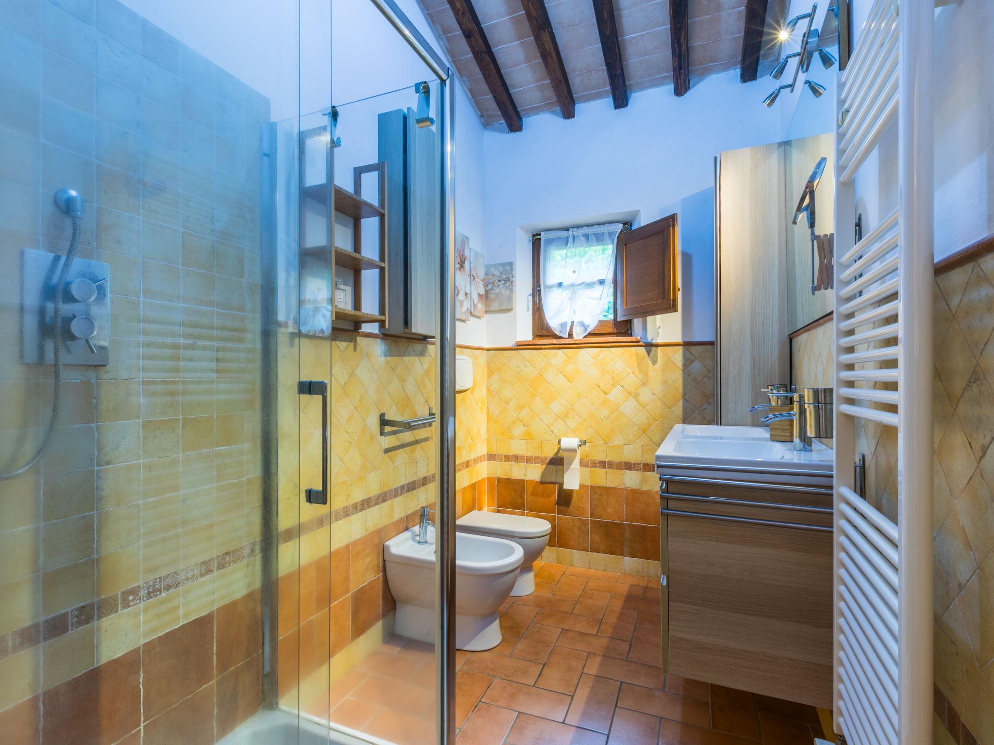 "Caggiolo", 3-Zimmer-Reihenhaus 70 m2, im Erdgeschoss. Objekt geeignet für 2 Erwachsene + 2 Kinder. Hell, komfortabel und geschmackvoll eingerichtet: offenes Wohnzimmer mit TV (Flachbildschirm), Klimaanlage. 1 Doppelzimmer. Ausgang zum Garten. 1 Kinderzimmer mit 2 Betten (80 cm). Kleines Durchgangszimmer 2 m2 mit Klimaanlage. Küche (Backofen, Geschirrspüler, Gasherd, 4 Flammen, Toaster, Wasserkocher, Mikrowelle, elektrische Kaffeemaschine) mit Esstisch. 2 Duschen/Bidet/WC. Heizung, Klimaanlage. Natursteinboden. Terrasse überdacht, Gartensitzplatz, Garten. Terrassenmöbel, Gartengrill, Loggia. Schöne Panoramasicht auf die Landschaft. Zur Verfügung: Waschmaschine, Bügeleisen, Fliegengitter, Kinderhochstuhl, Babybett bis 2 Jahre, Haartrockner. Internet (WLAN, gratis). Parkplatz beim Haus. Bitte beachten: geeignet für Familien. Nichtraucher-Unterkunft. Maximal 1 Haustier/Hund erlaubt. Eigener Eingang, Rauchmelder, Feuerlöscher. IT052017C2AV8OFJ9J
