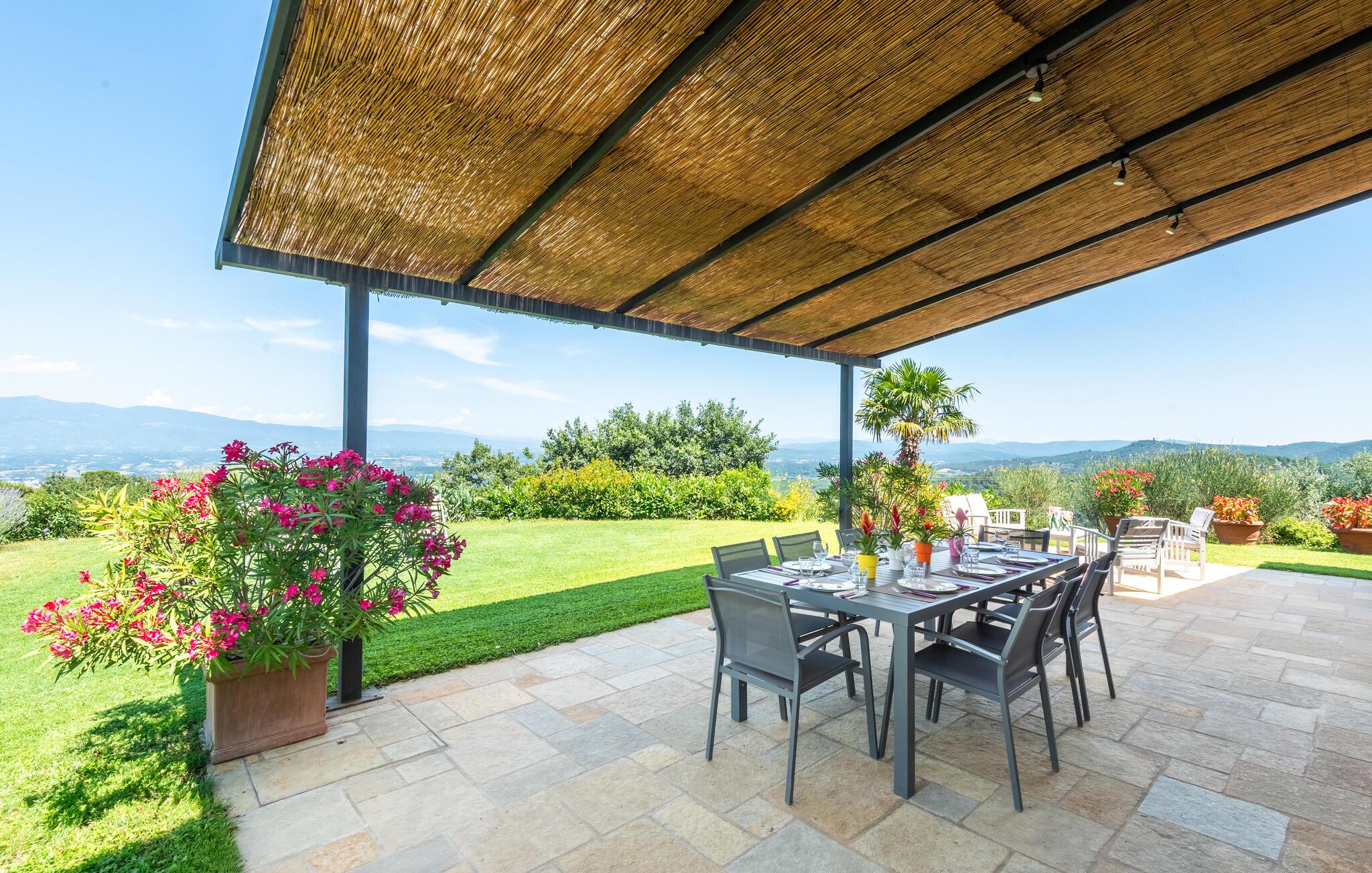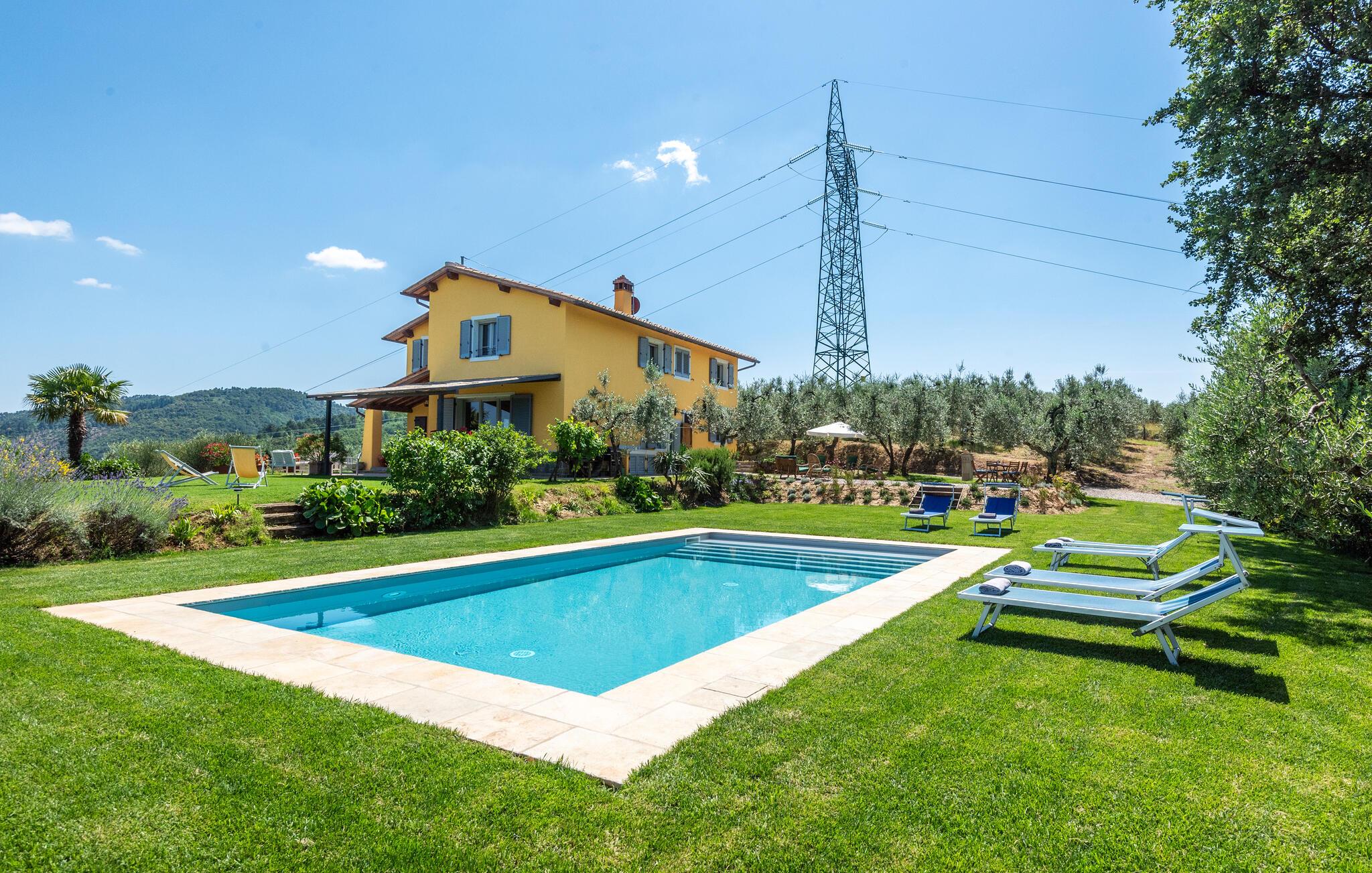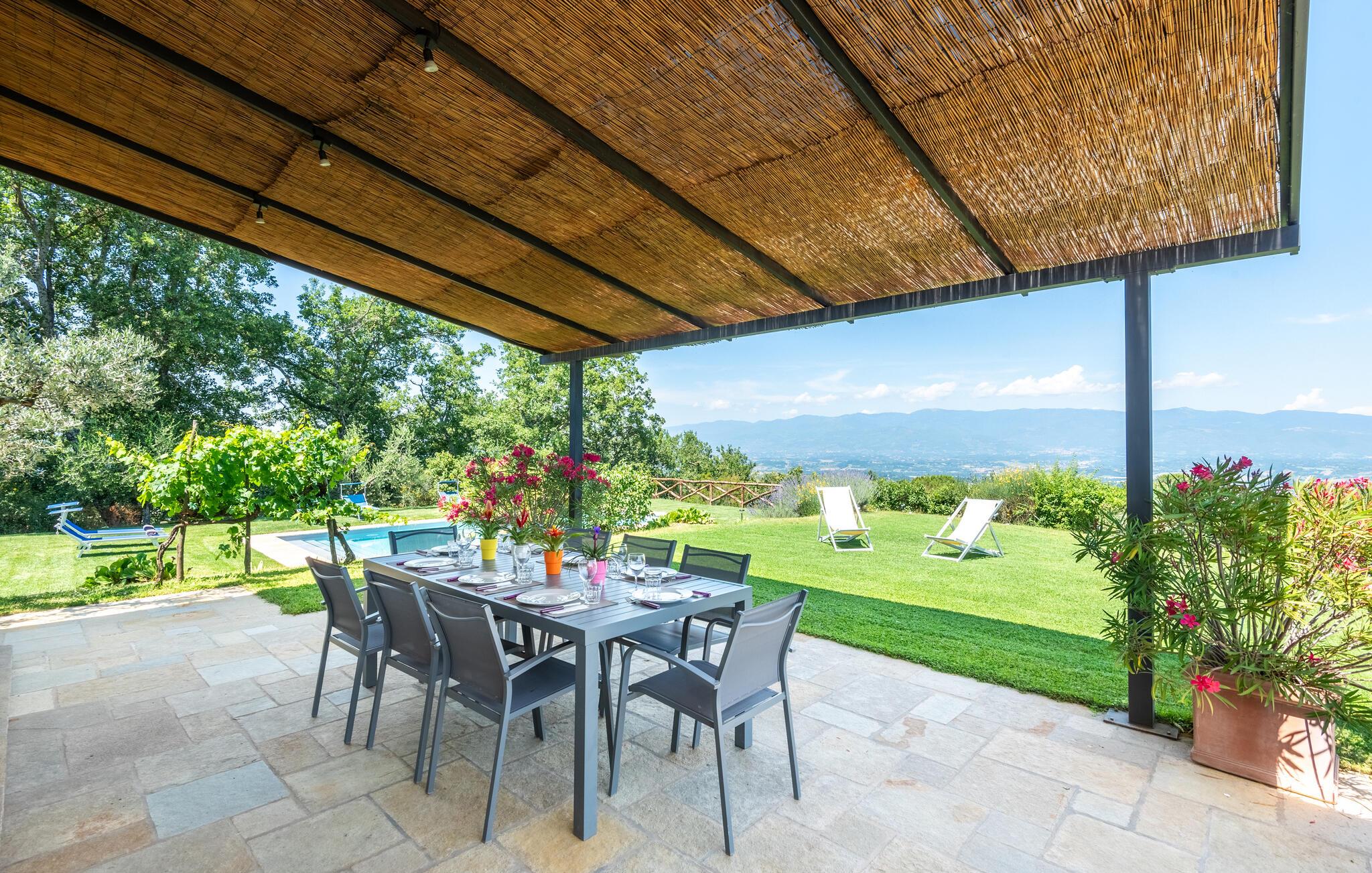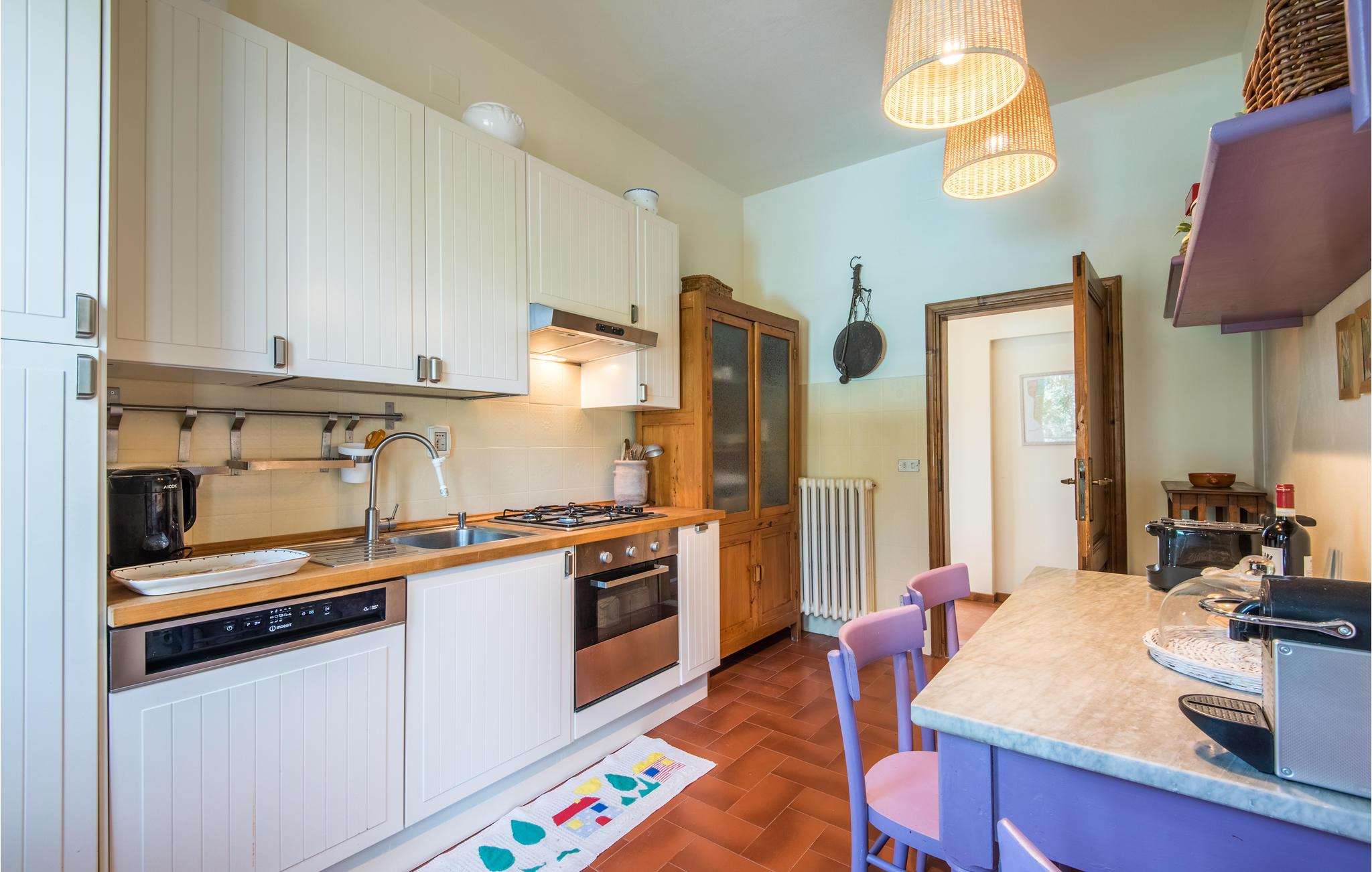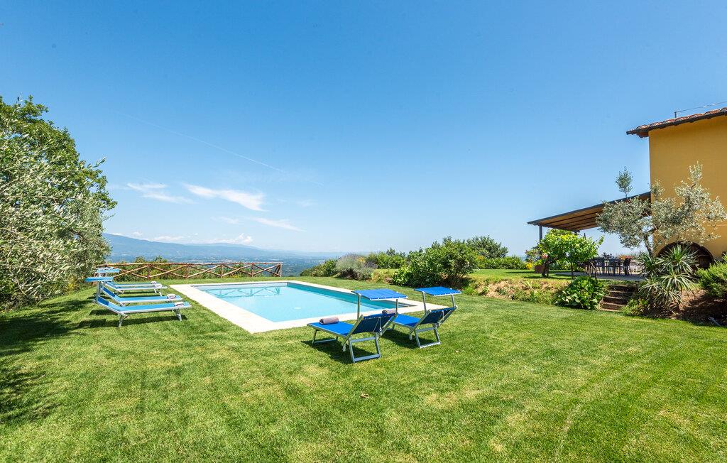 Die einfach, aber ansprechend eingerichteten Räume haben alle Fenstern mit Moskitonetzen. Genießen Sie am Morgen, neben der Küche, Ihr Frühstück auf der Terrasse, wo Sie es sich unter dem Sonnenschirm am Frühstückstisch bequem machen und auf den Pool blicken können.Vom Wohnraum mit großem Kamin haben Sie Zugang zu einer überdachten Terrasse mit weitem Blick über das Arnotal, wo Sie sich entspannen und beim Abendessen im Freien den Tag ausklingen lassen können. Auf dem großen Naturgrundstück mit Rasen, Olivenhain und Wald befindet sich auch der Poolbereich mit Sonnenterrasse. Alle Fenster haben Fliegengitter. Entfernungen: das kleine Dorf Moncione (Laden, Restaurant) 1,5 km; Florenz und Siena 50 km entfernt, Arezzo und der Chianti ca. 35 km. Reitbahn 2 km, ein Golfplatz 10 km.